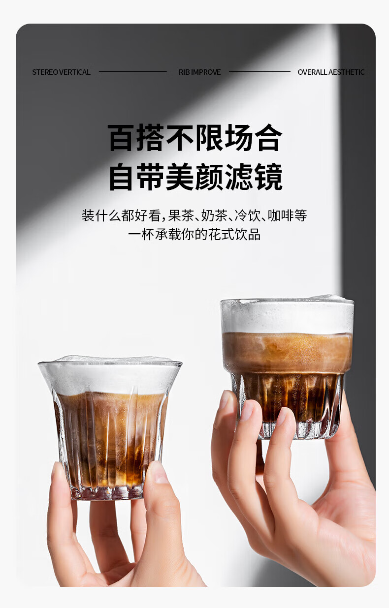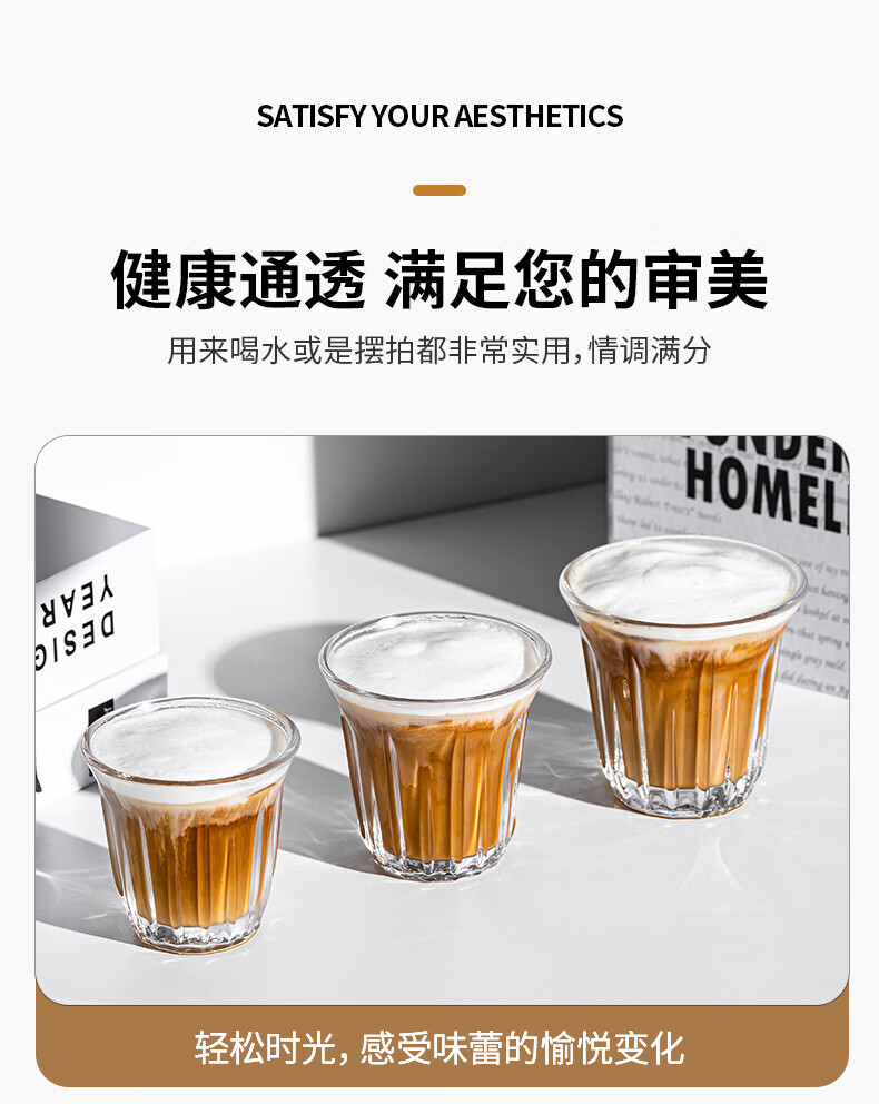 DKO coffee cup household glass cup iced American espresso latte cup retro dirty Australian white cup water cup white wine cup 200ml tempered coffee cup (transparent)