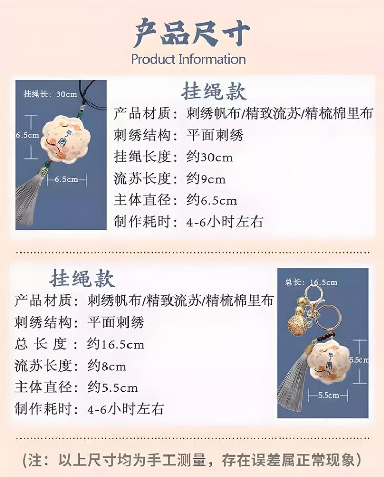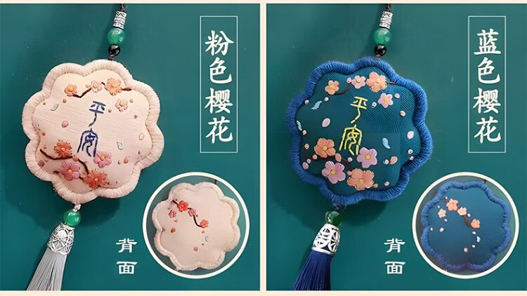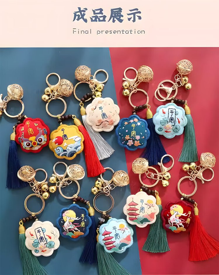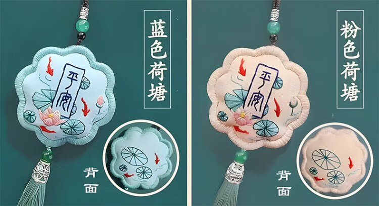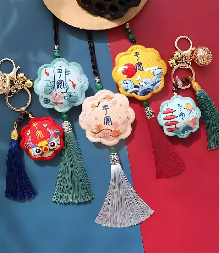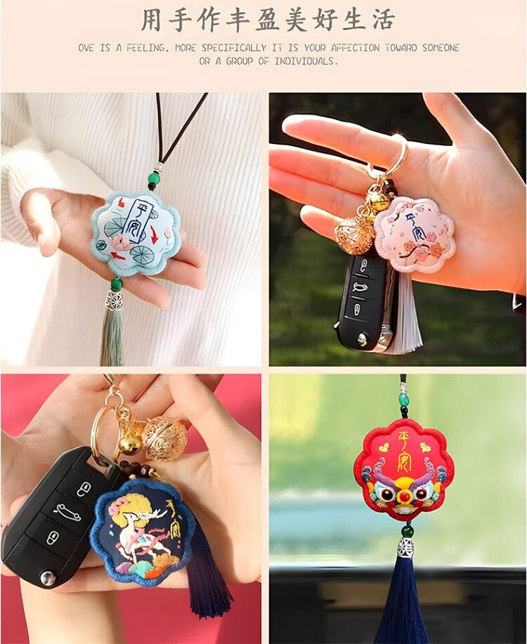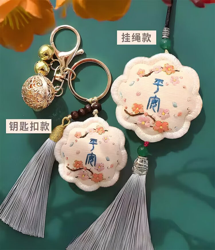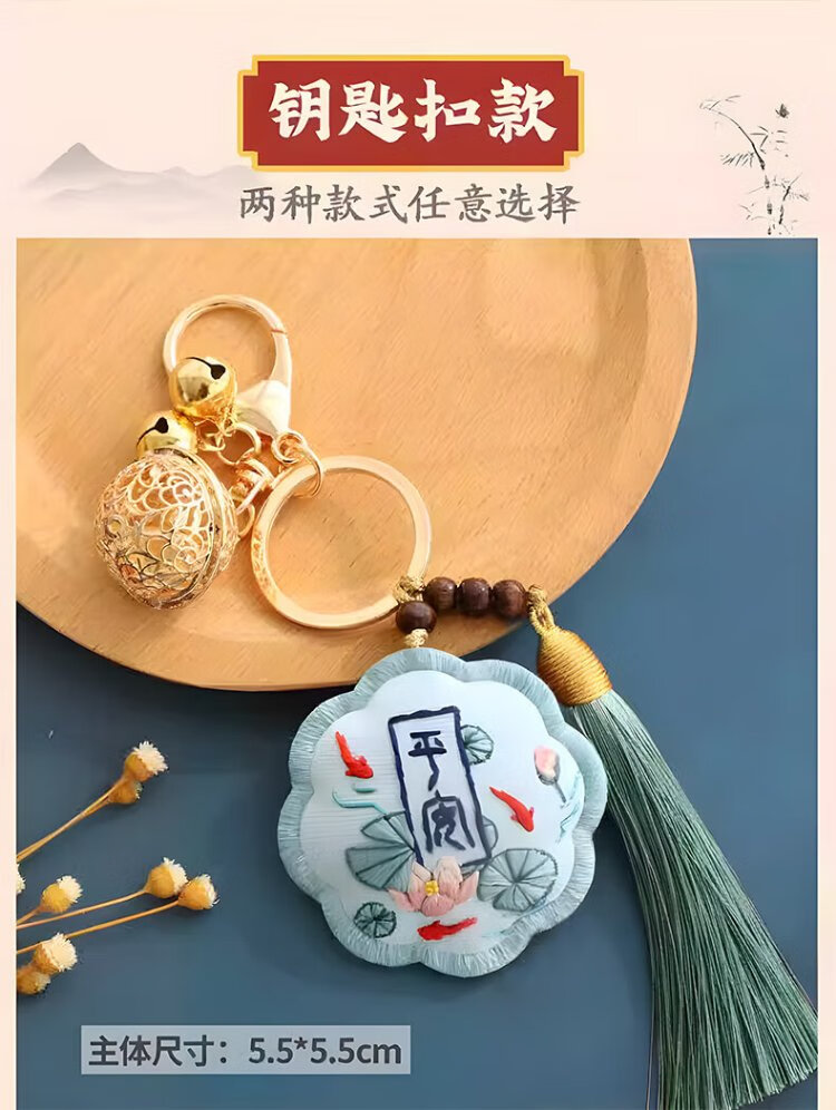 Inkstone Seal Peace Talisman Embroidery DIY Handmade Sachet Sachet Blessing Bag Material Pack Amulet Pendant Peace Gift for Best Friend Peace Embroidery Sachet Key Style (Embroidered Stretch) Material Pack