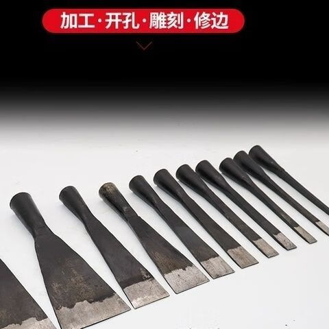 Special chisel for woodworking, flat chisel, woodworking chisel, hand-forged old-fashioned steel chisel, 4-point, 3-point flat chisel, 8-point chisel (blade width 27 mm) + free wooden handle