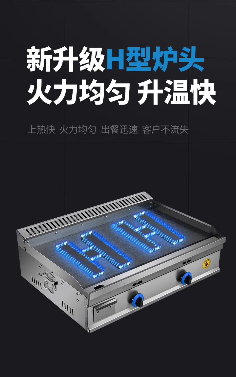 GUYN commercial large gas griddle stall hand cake machine egg cake filling stove iron plate squid cold noodle machine gas electric heating 100*40 blackboard thickness 0.8cm