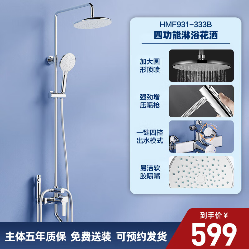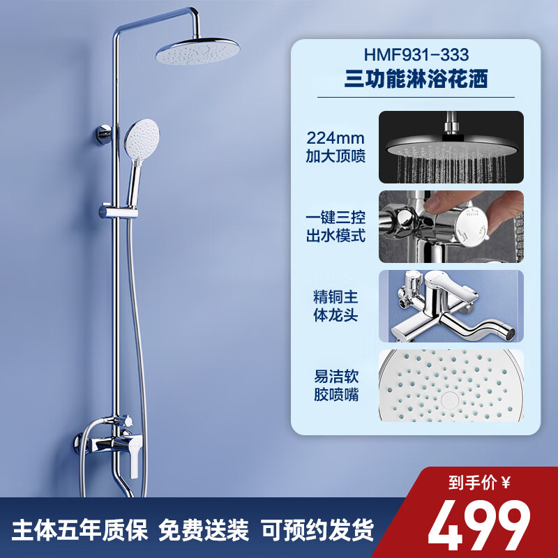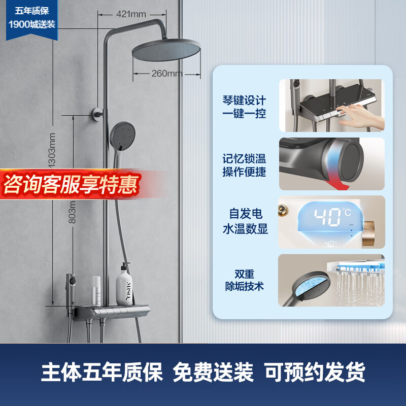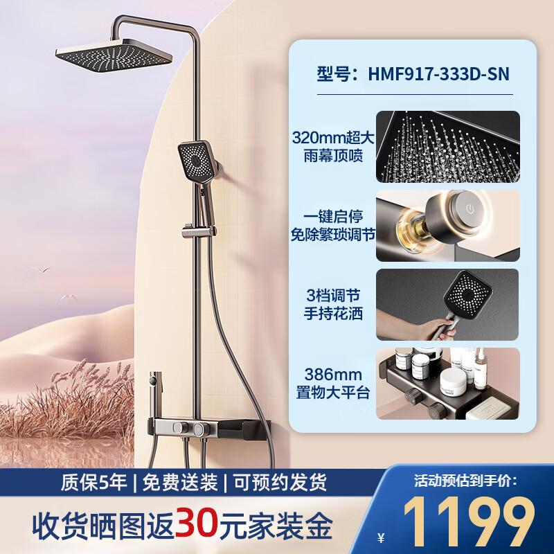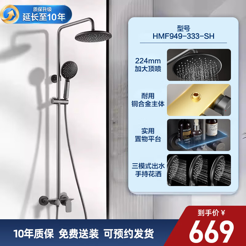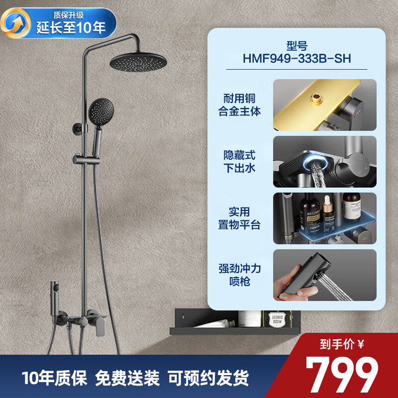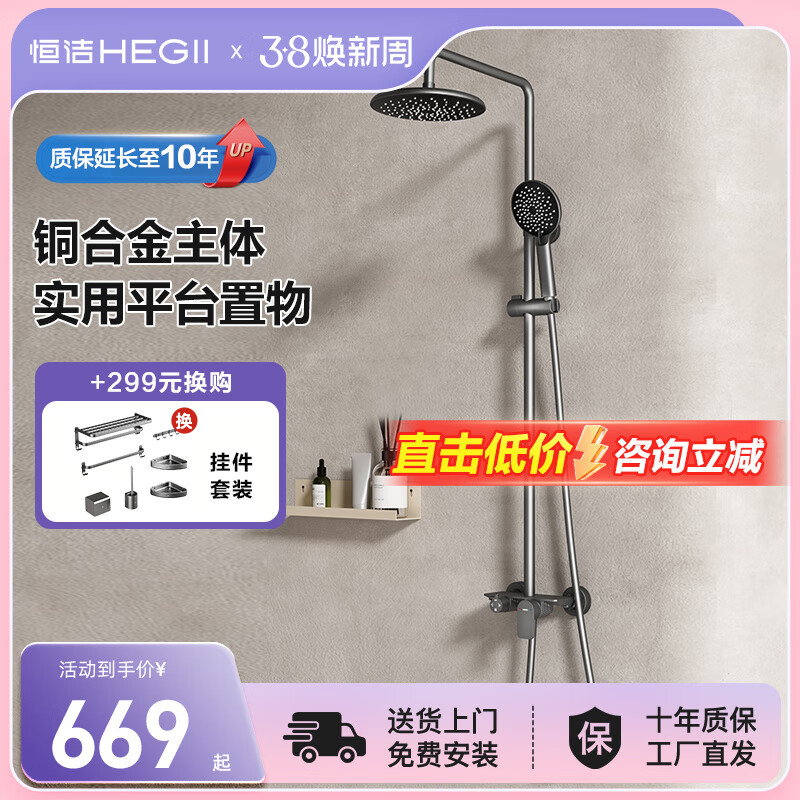 Hengjie (HEGII) Gun Gray Shower Set Home Bathroom Fine Copper Bathroom Sprinkler Rain Shower 949 Moon Shadow Gray* Descaling Shower 930-333-SH