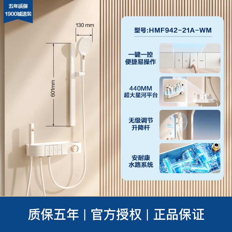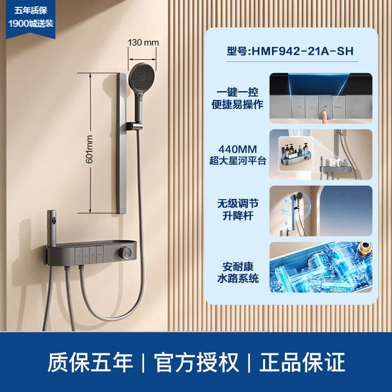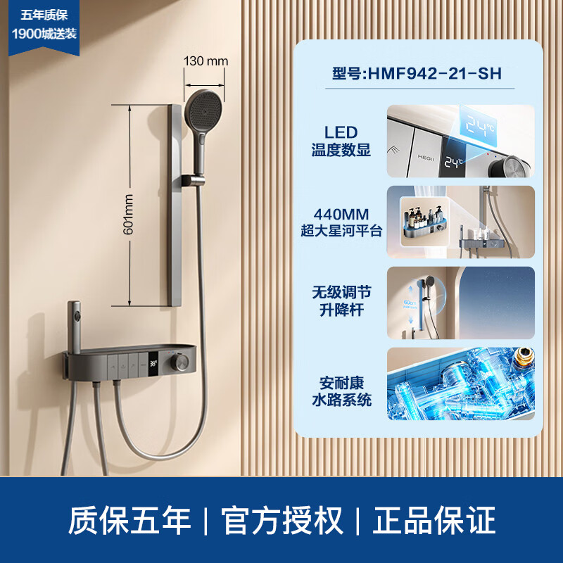 Hengjie (HEGII) smart constant temperature shower head set household digital display button 0 cold water storage platform Y68Y66 constant temperature digital display large platform model Y66 moon shadow gray