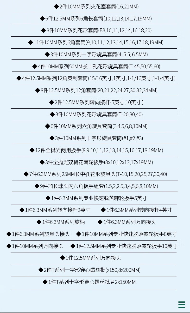 Shida series comprehensive set machine repair and auto repair tools socket wrench metric small medium large flying set 09014 heavy duty 124 pieces 6.3x10x12.5MM set 09014