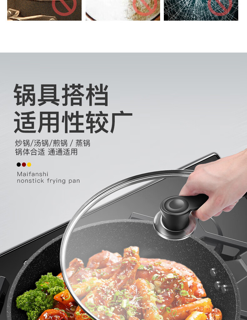 LZJV pot lid tempered glass lid stainless steel garden wok lid pan lid universal wok lid non-stick lid thickened vertical lid 30cm