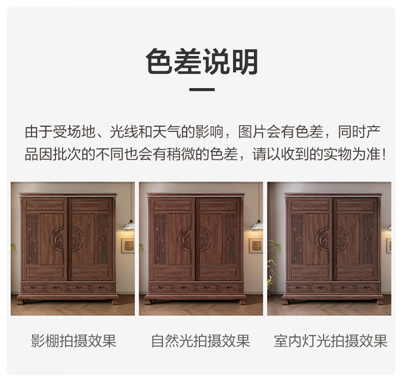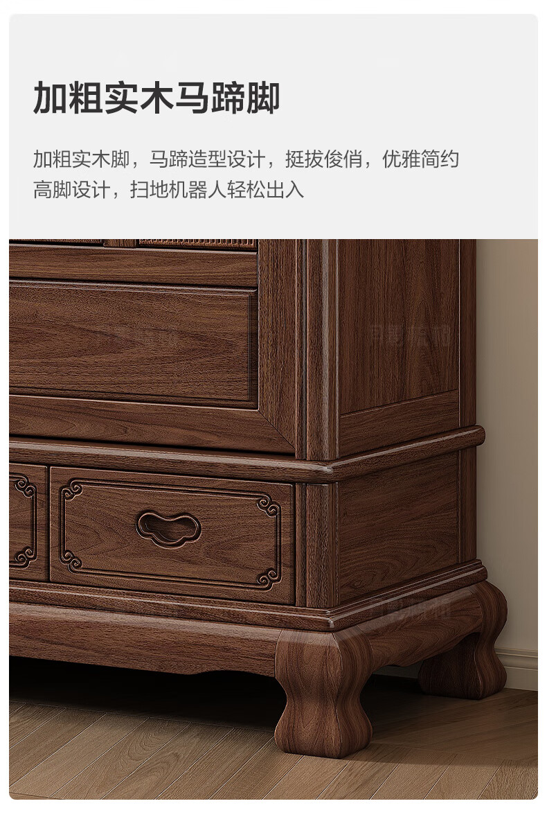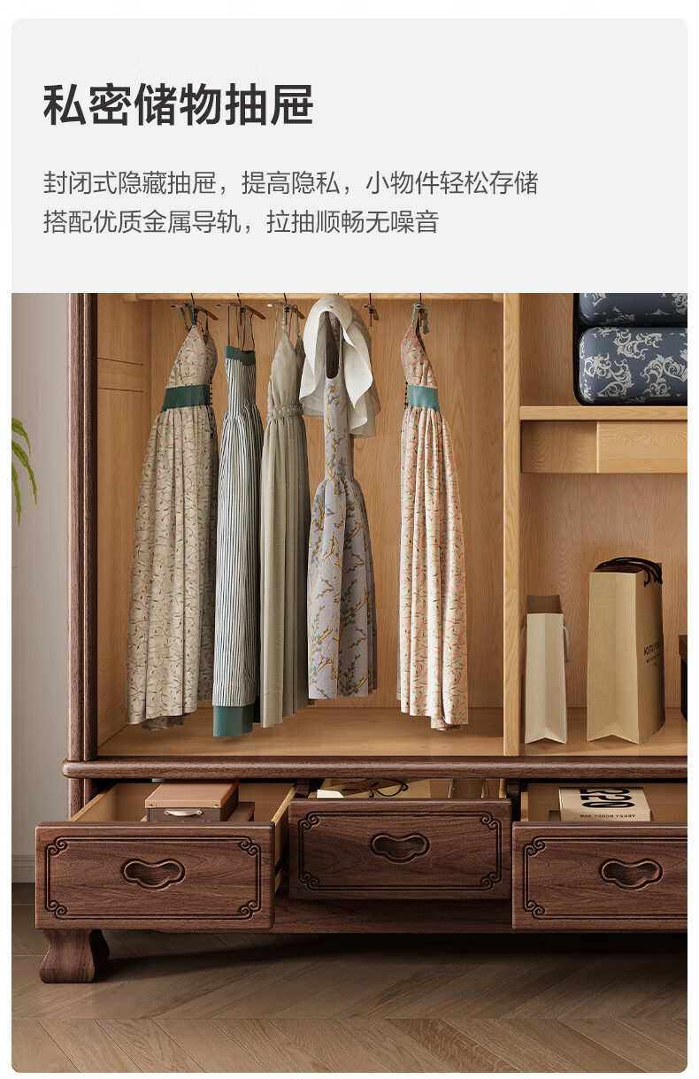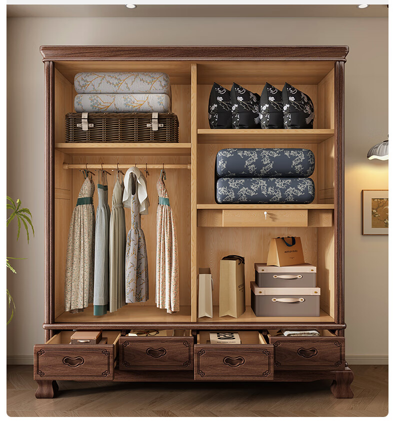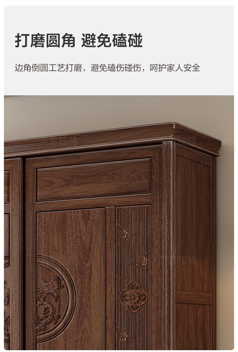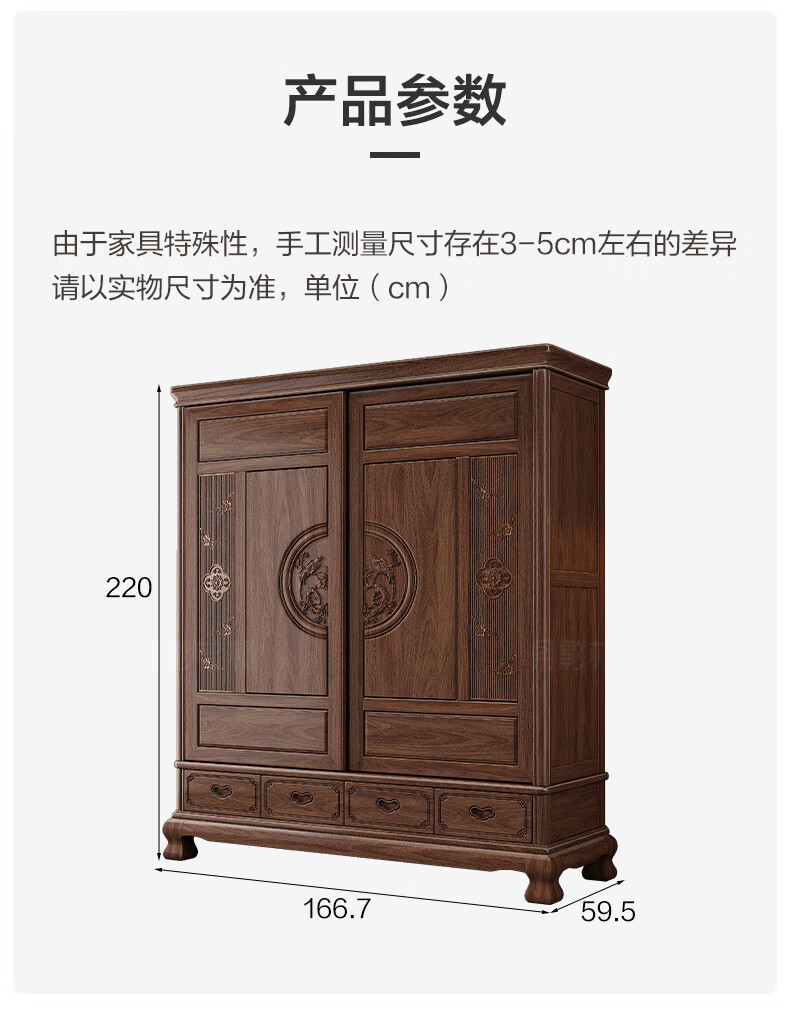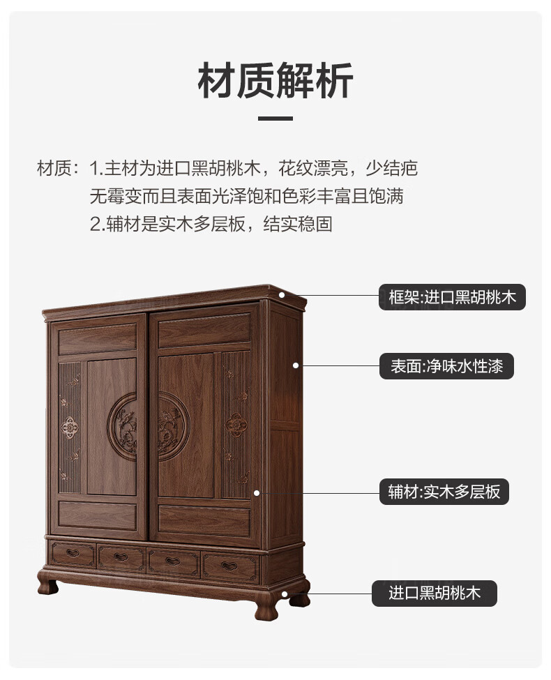 Yueying tung mid-antique style black walnut sliding wardrobe classical carved large capacity storage home bedroom wooden sliding door wardrobe sliding wardrobe