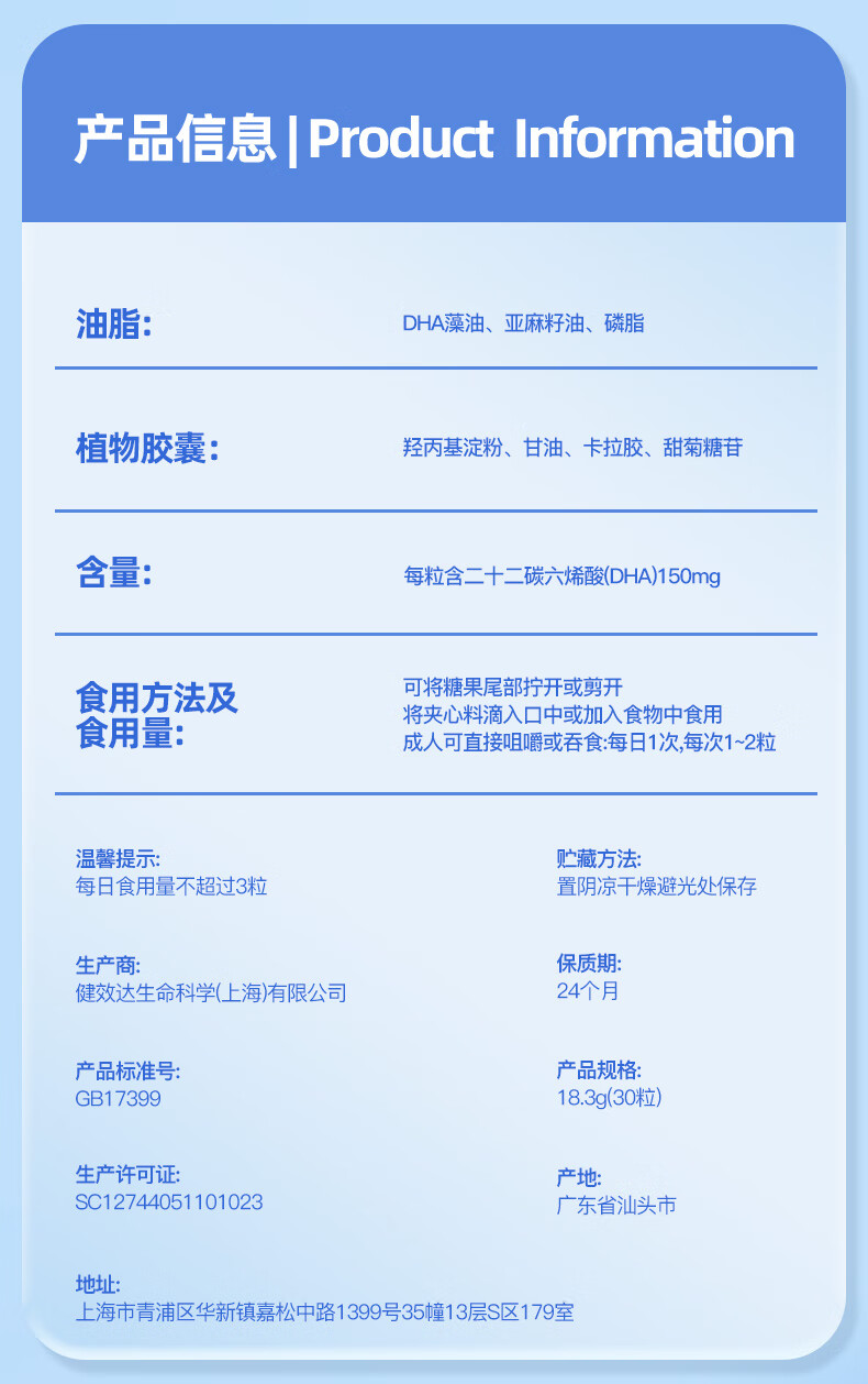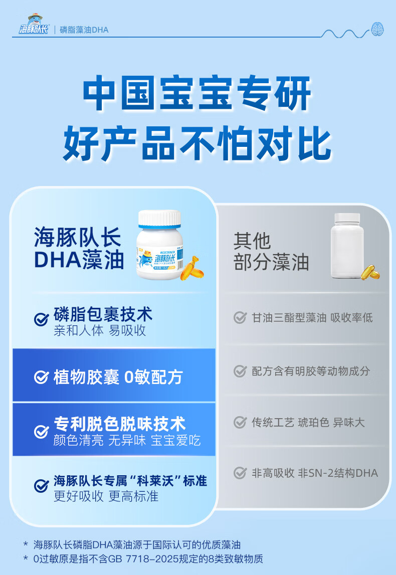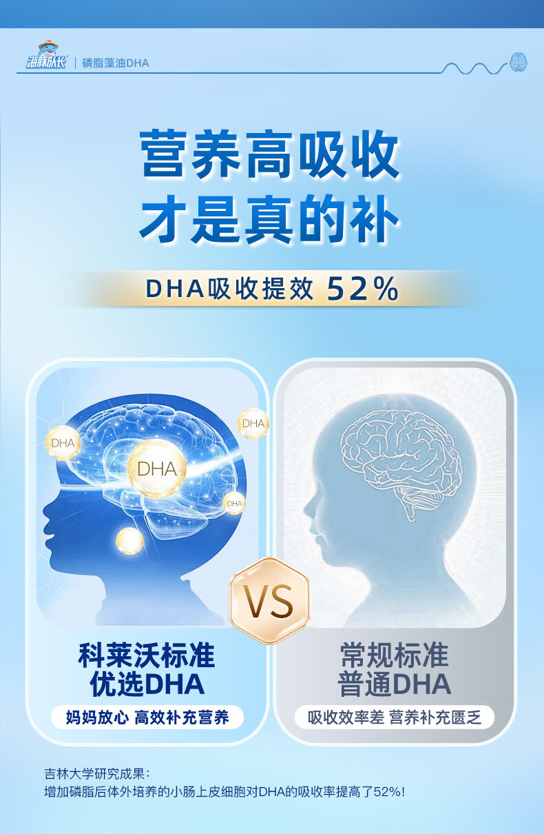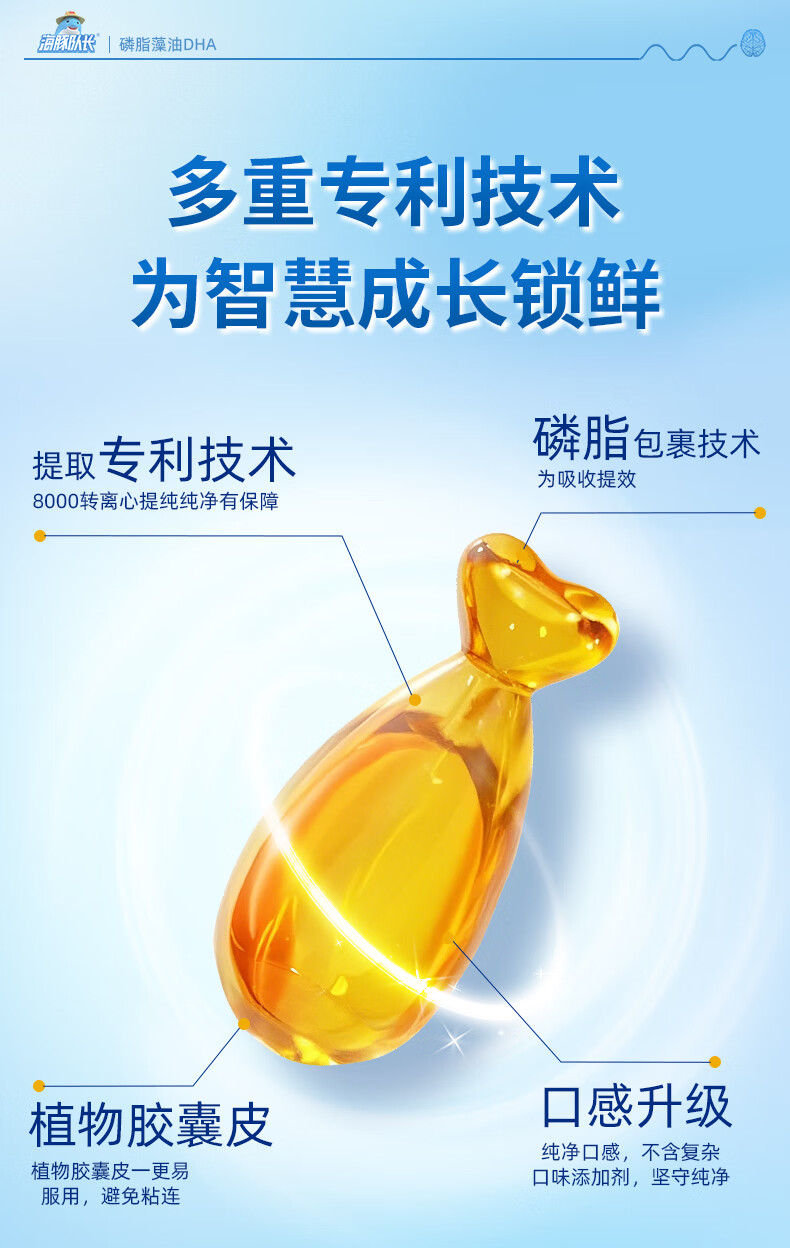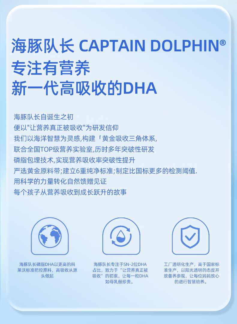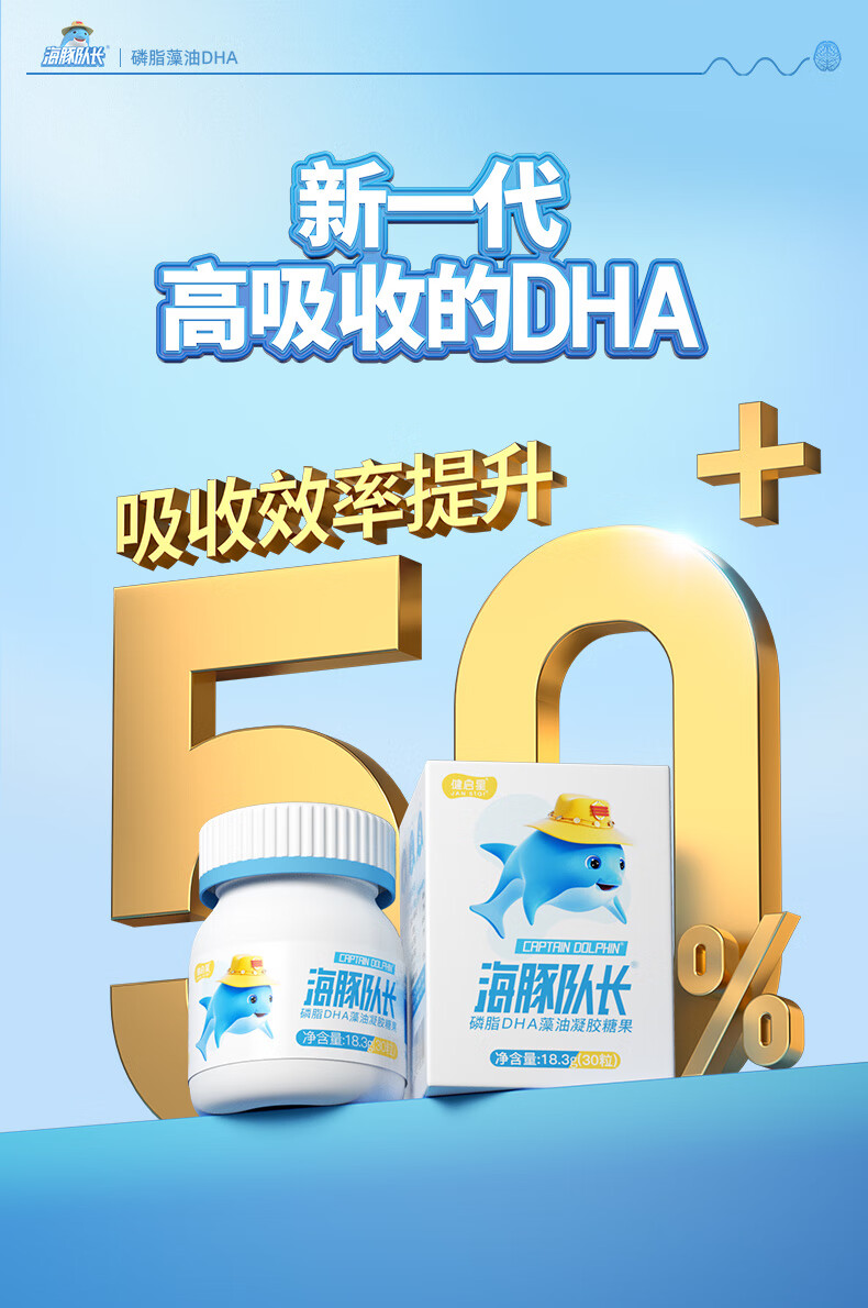 Dolphin captain phospholipid DHA seaweed oil dha150mg gel candy natural non-cod liver oil for babies, pregnant women and children 30 capsules * 3 bottles, free thermos cup + trial pack