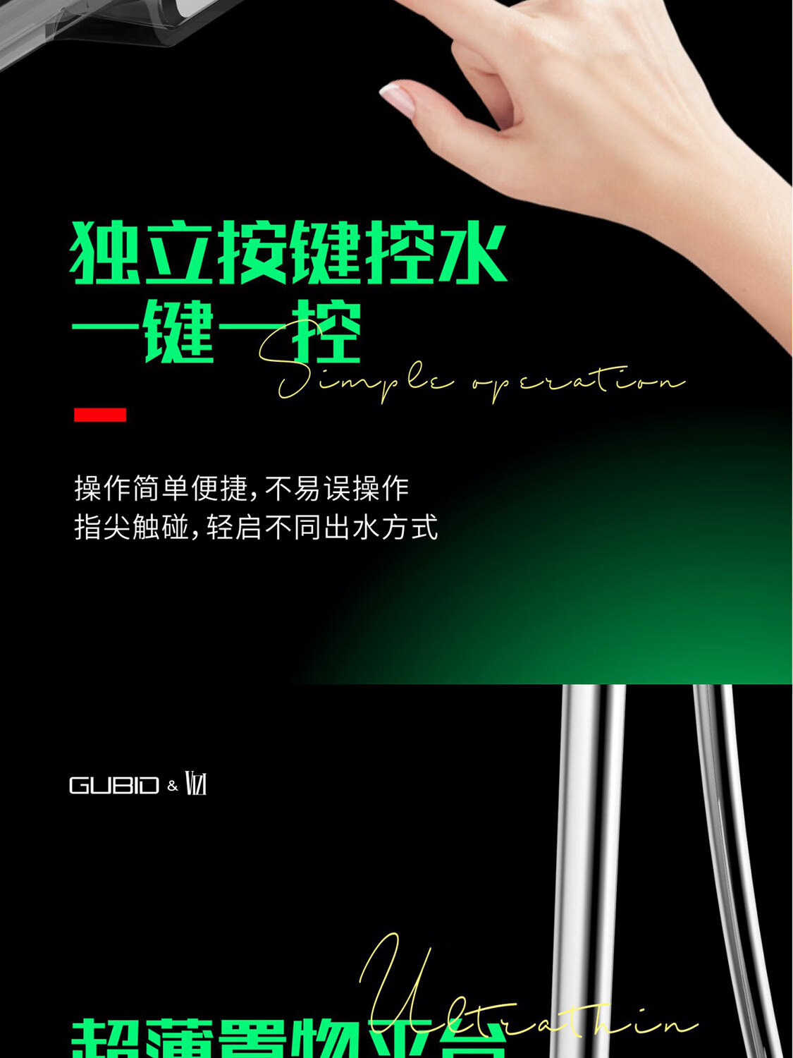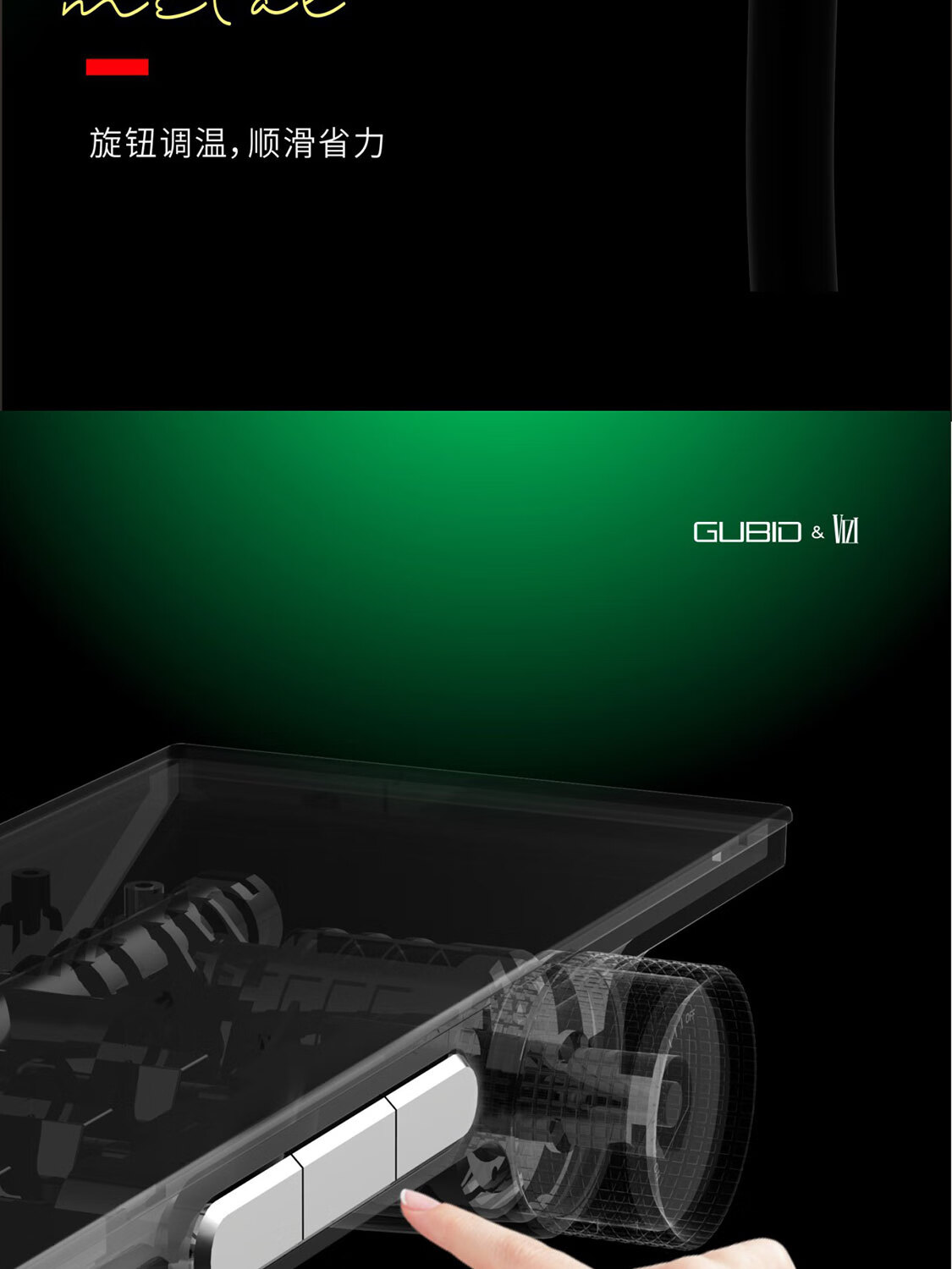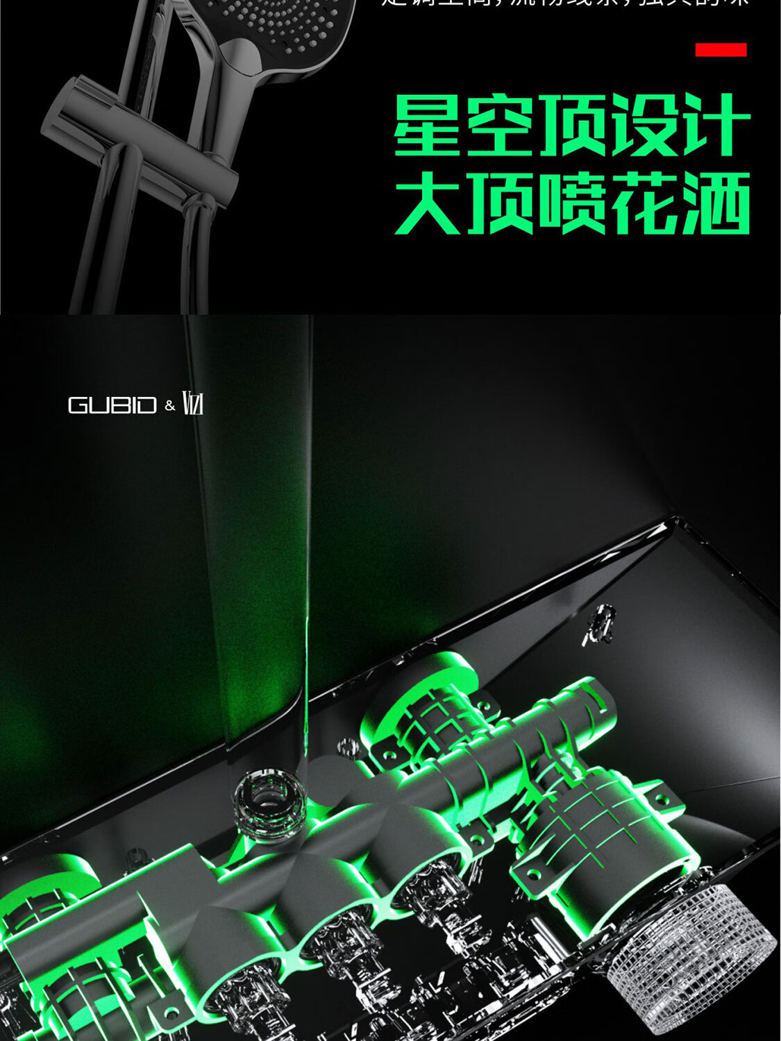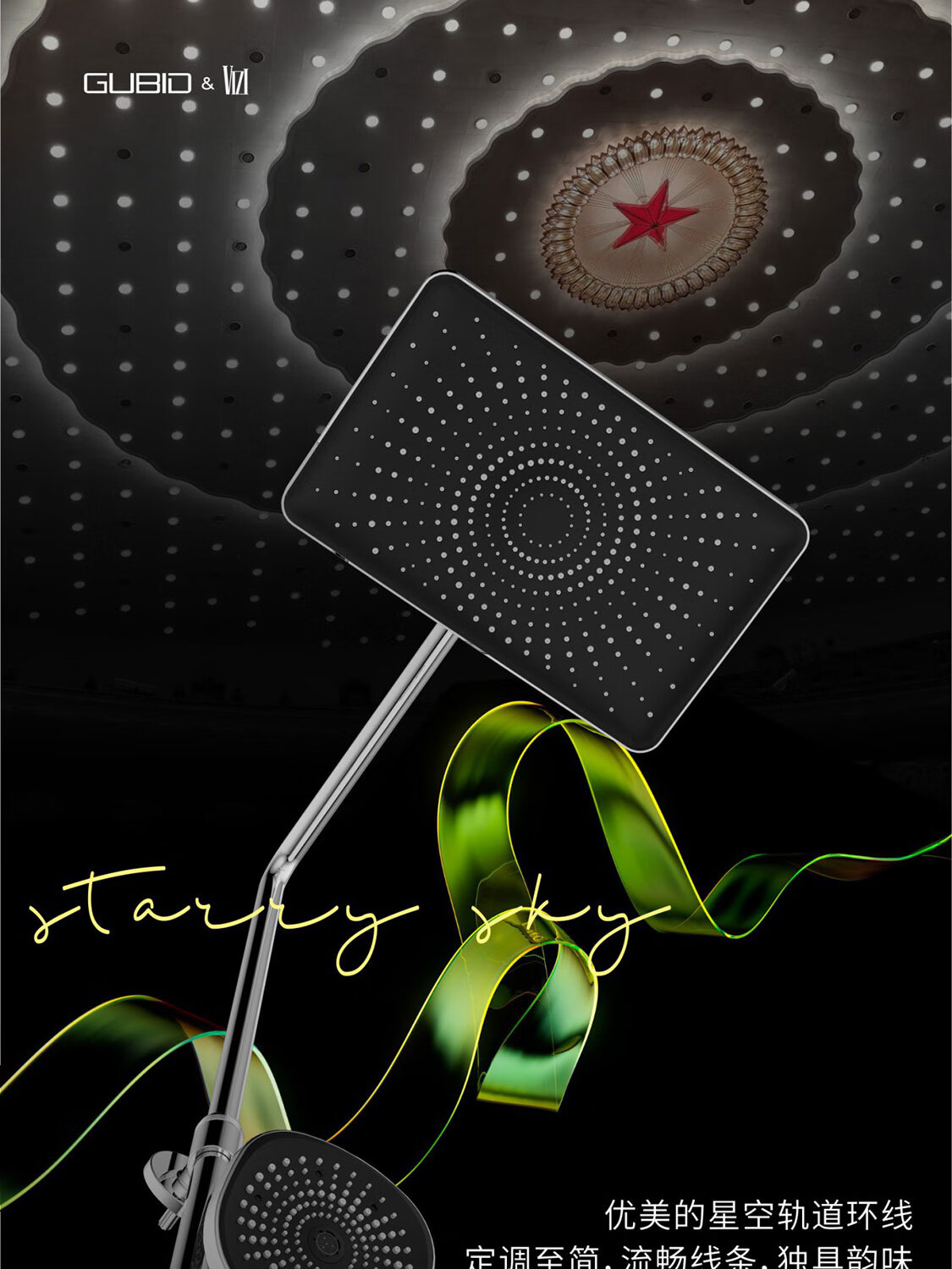 GUBID three-function ultra-thin storage platform hidden waterfall shower head set GD9383Q-Star Gray