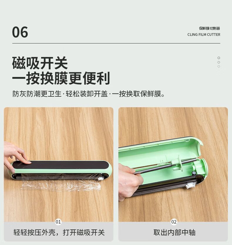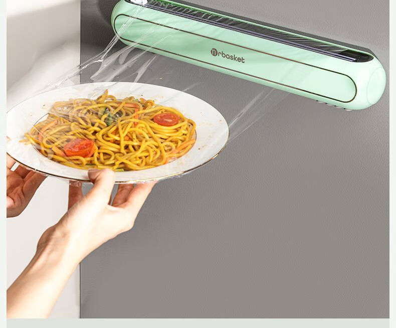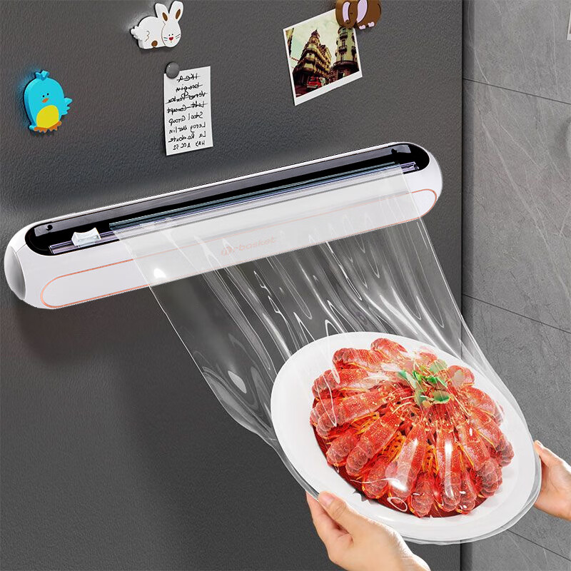 LZJV household cling film cutter kitchen disposable food grade cutting box magnetic refrigerator wall-mounted multi-function artifact Snow Mountain White No universal cutter 80 meters second generation nano cling film