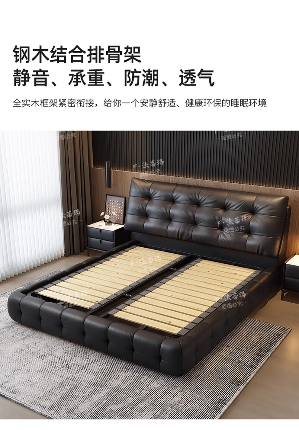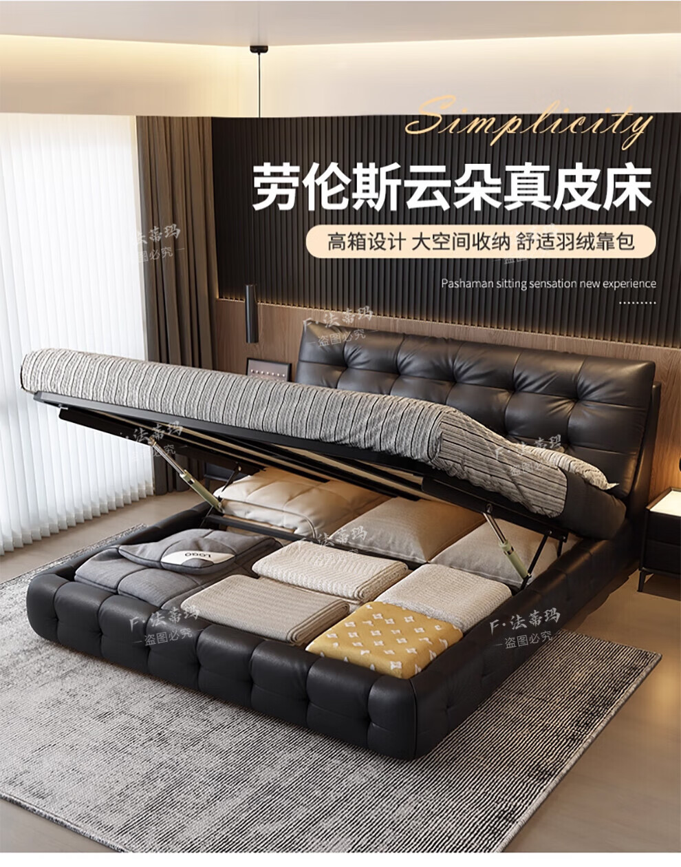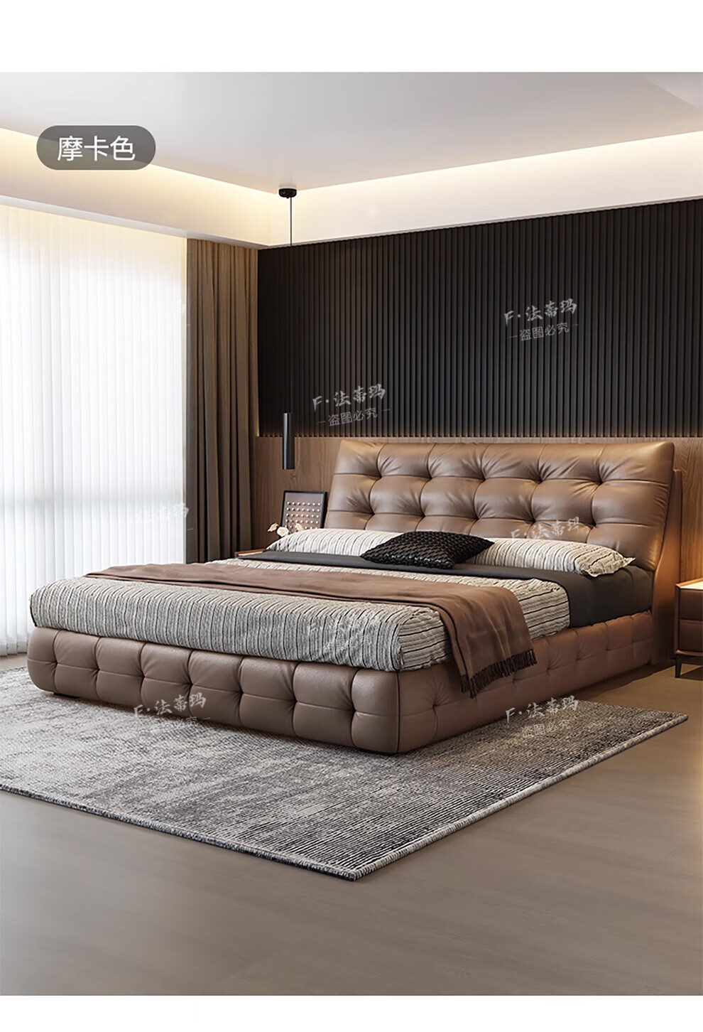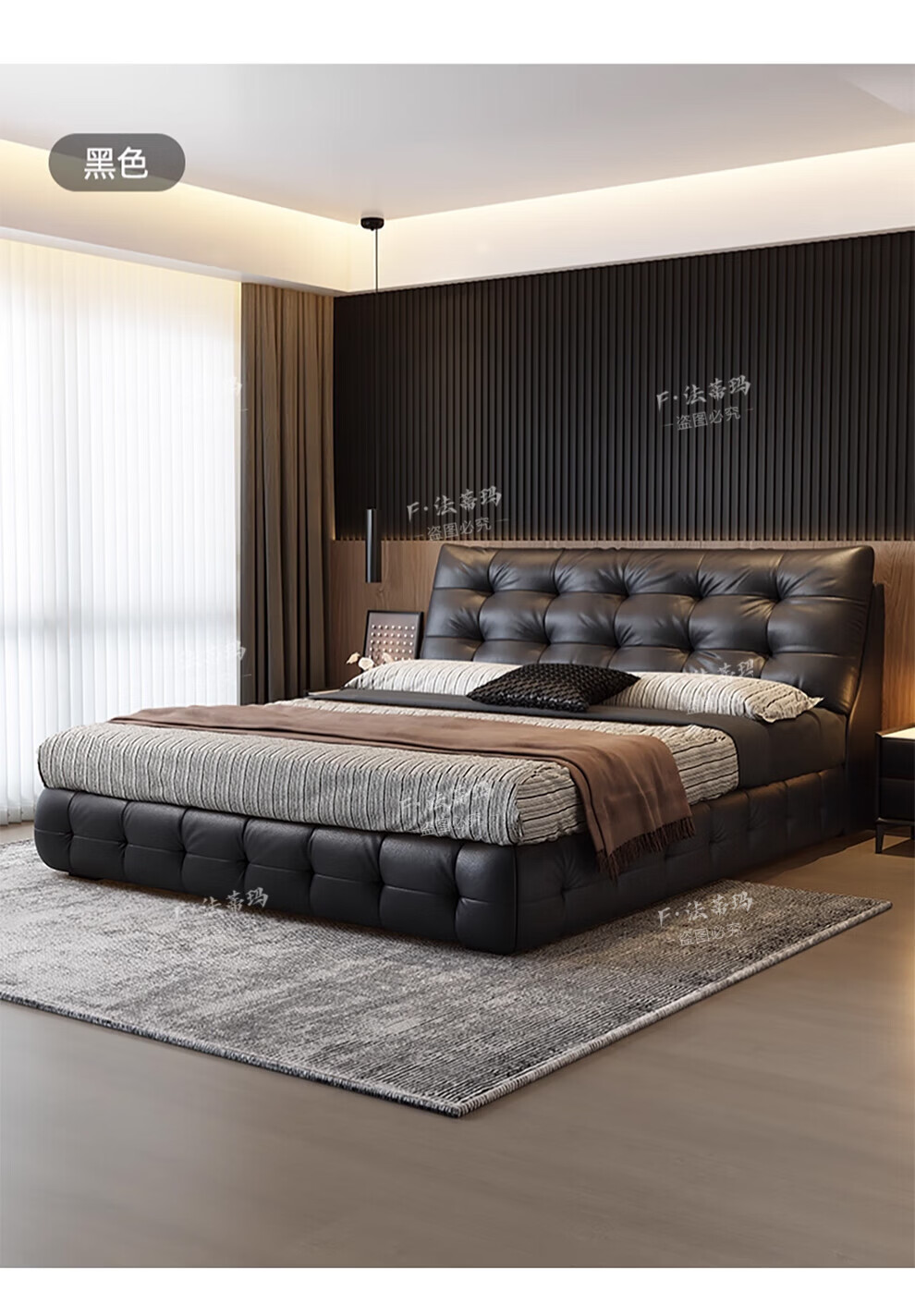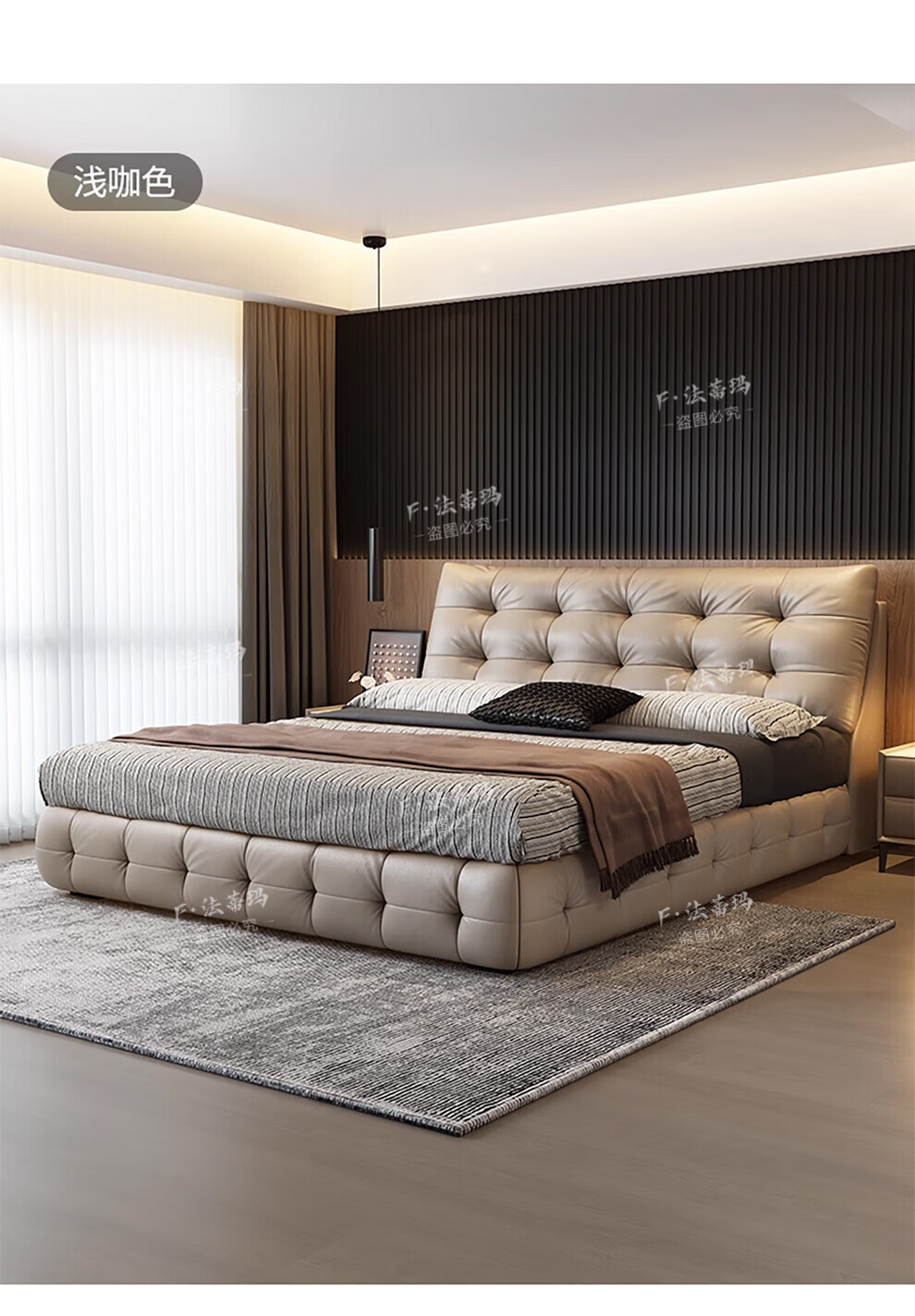 Fatima Lawrence Cloud Leather Bed Master Bedroom Large Bed Soft Covered Wedding Bed Italian Minimalist Double High Box Bed Single Bed 1.8*2 Meter Frame Bed Stable and Not Shaking