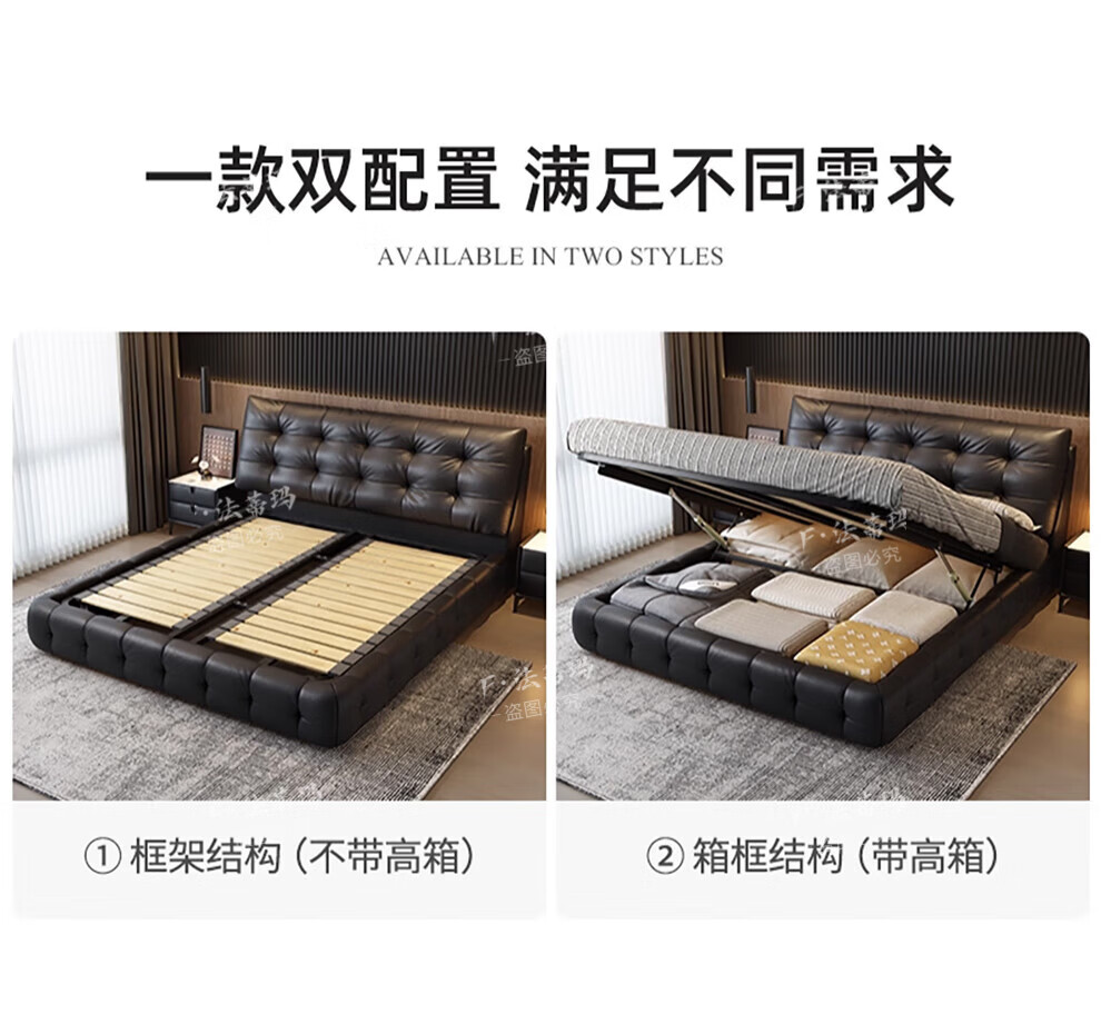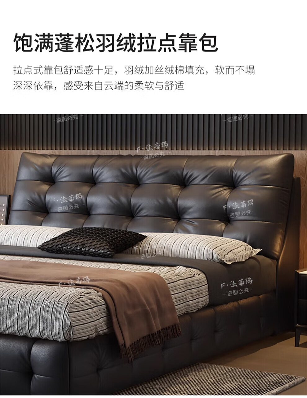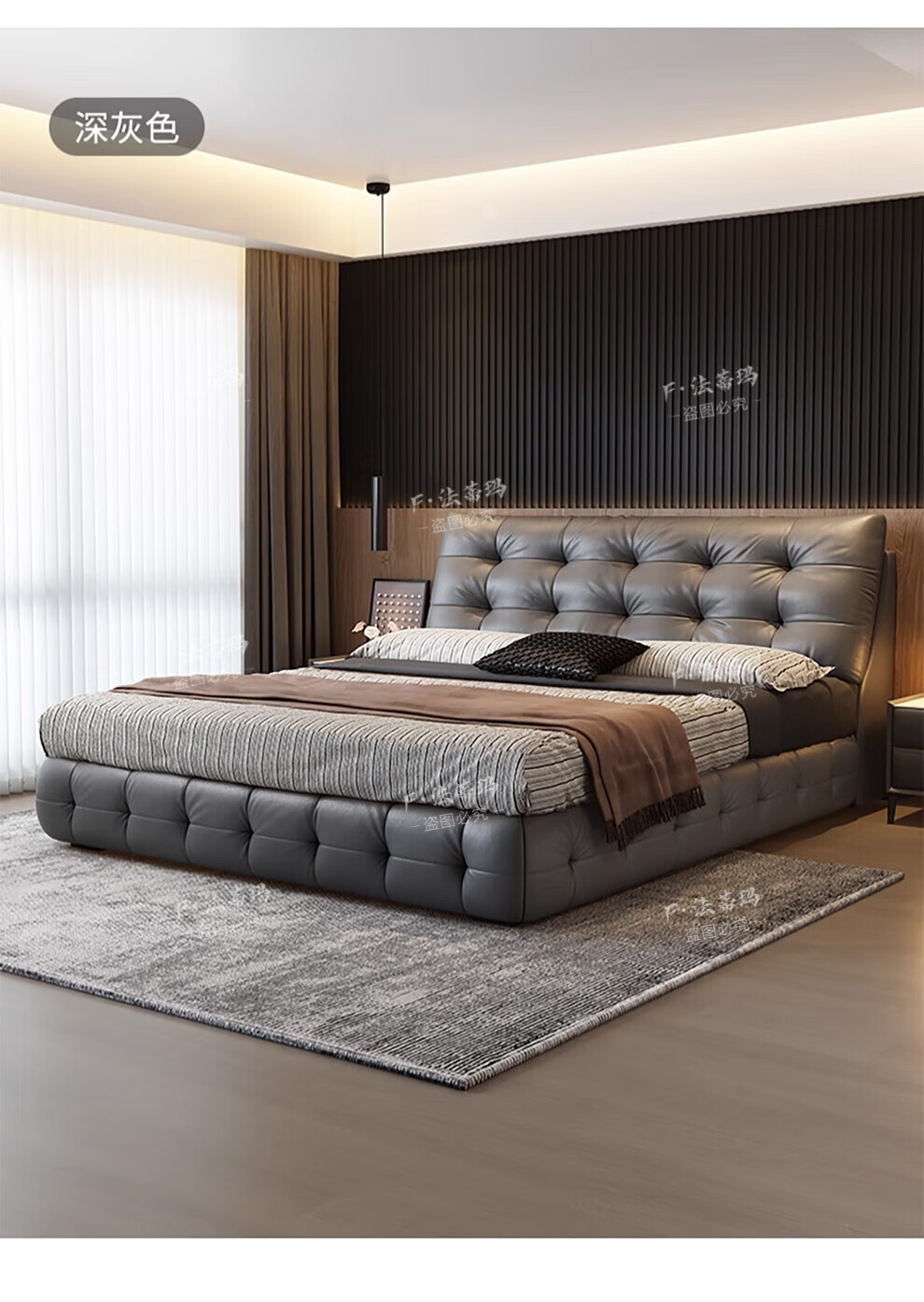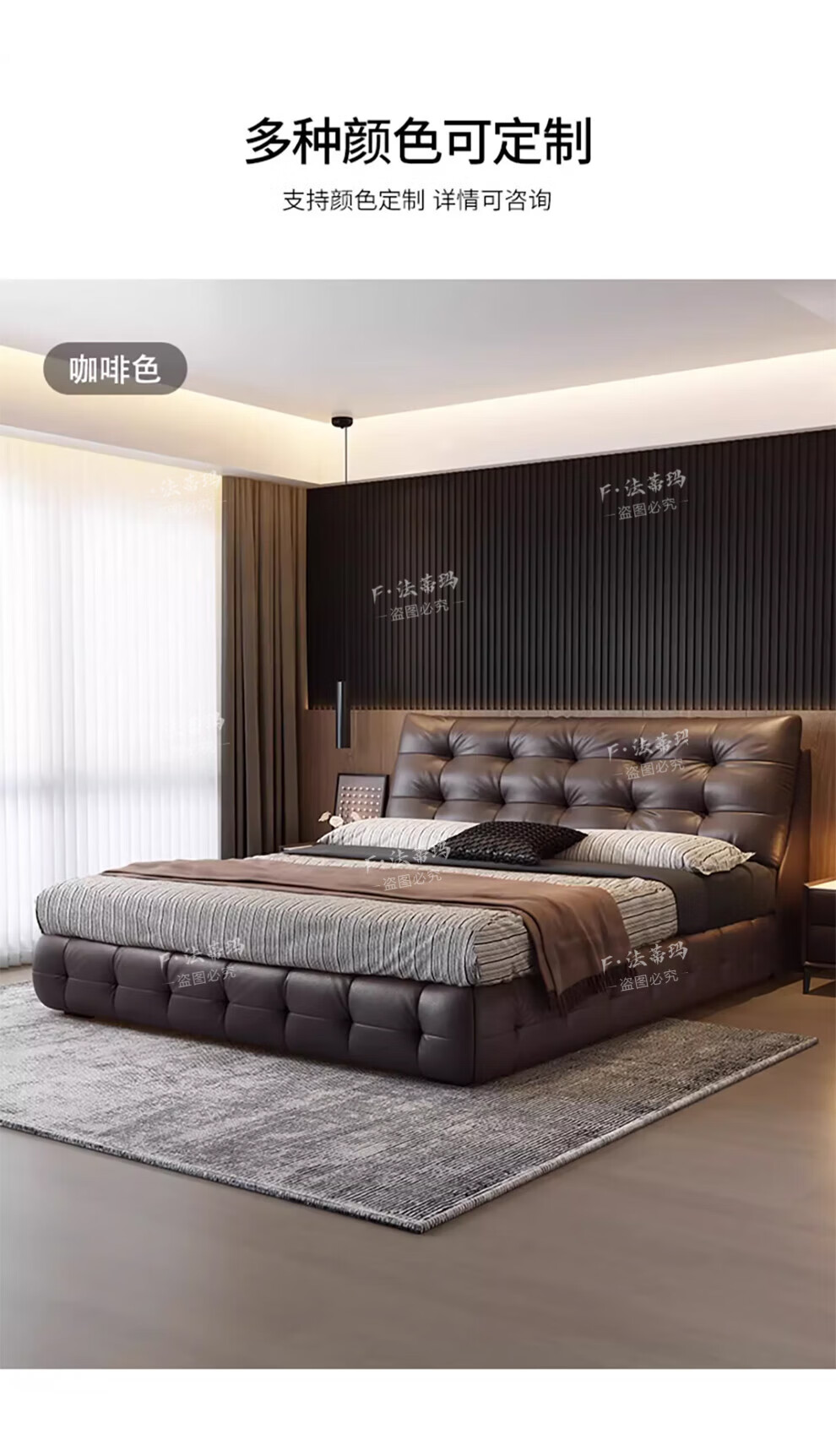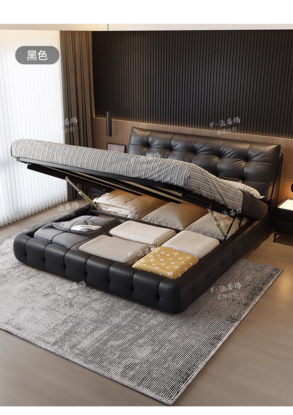 Fatima Lawrence Cloud Leather Bed Master Bedroom Large Bed Soft Covered Wedding Bed Italian Minimalist Double High Box Bed Single Bed 1.8*2 Meter Frame Bed Stable and Not Shaking