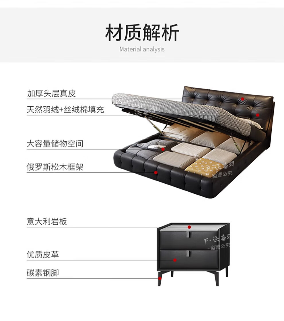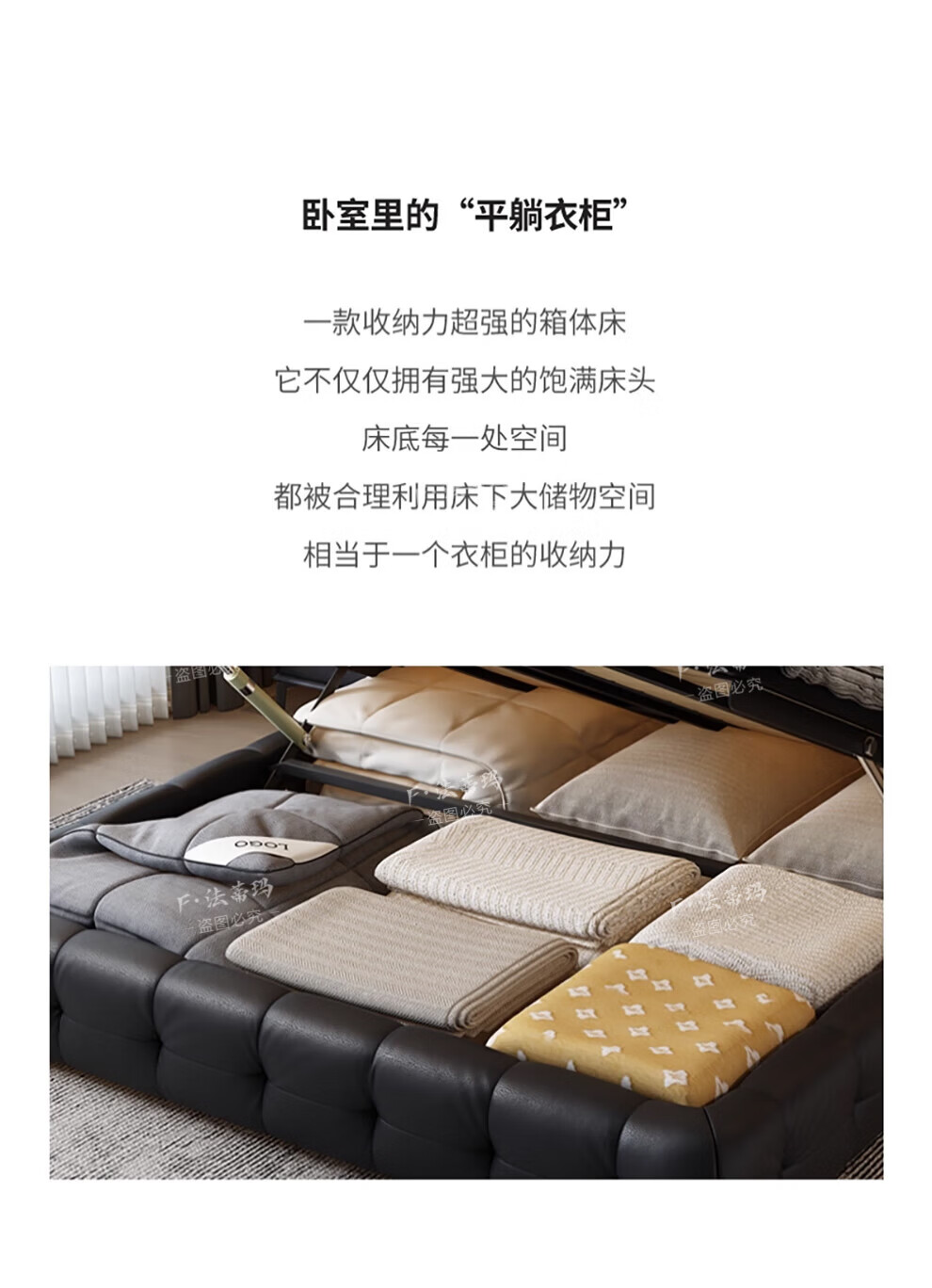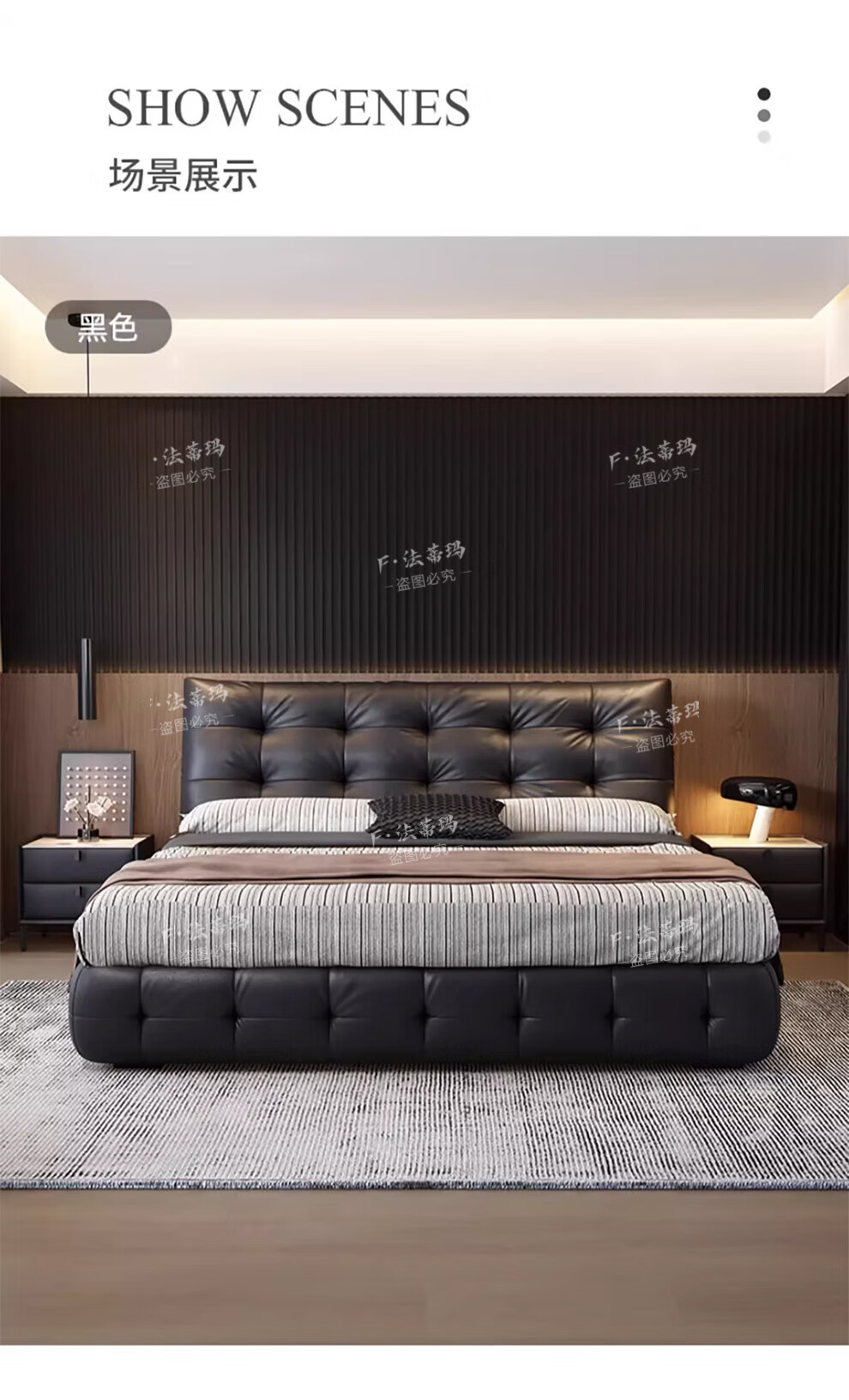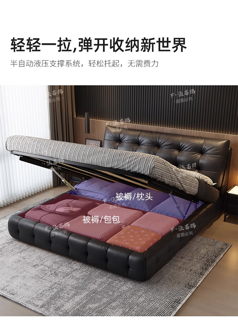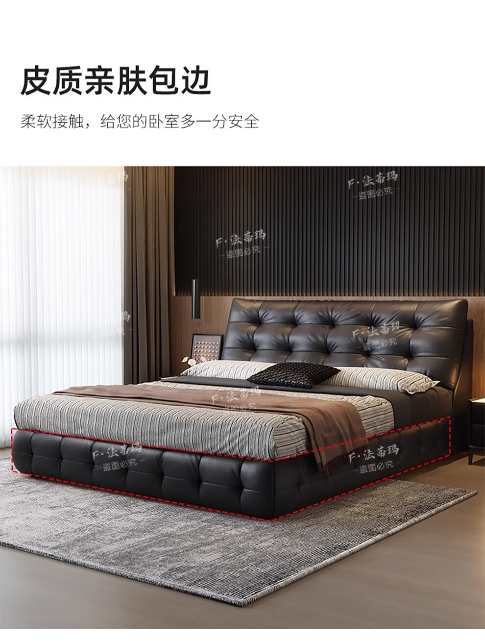 Fatima Lawrence Cloud Leather Bed Master Bedroom Large Bed Soft Covered Wedding Bed Italian Minimalist Double High Box Bed Single Bed 1.8*2 Meter Frame Bed Stable and Not Shaking