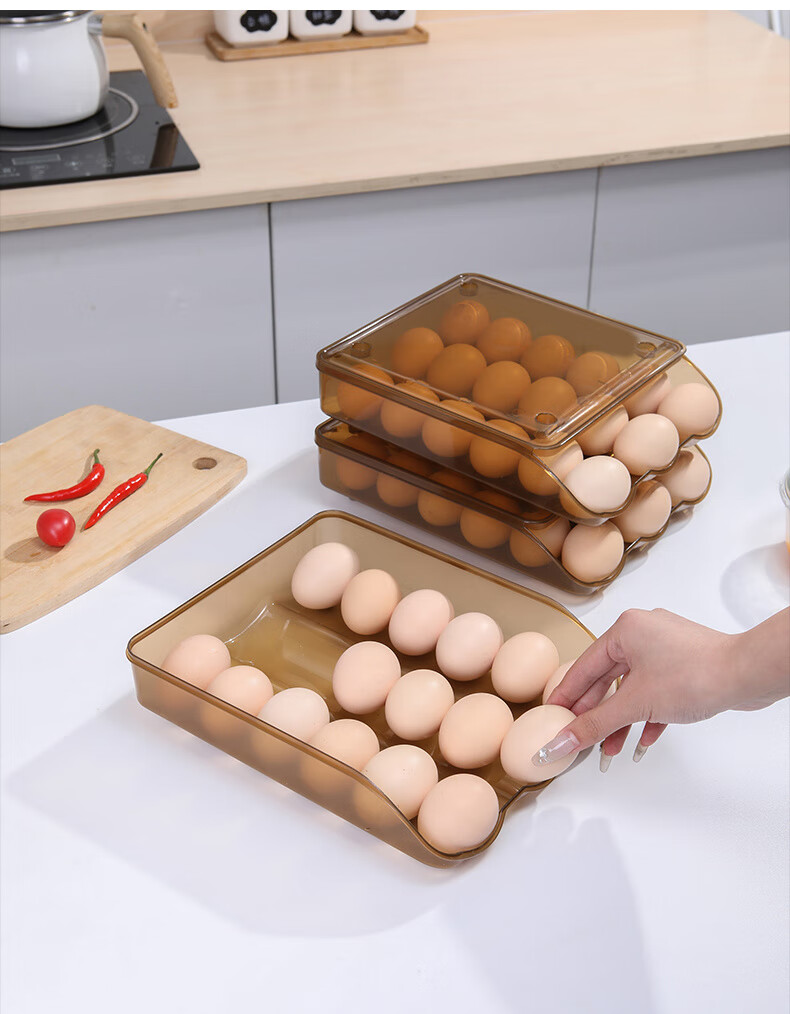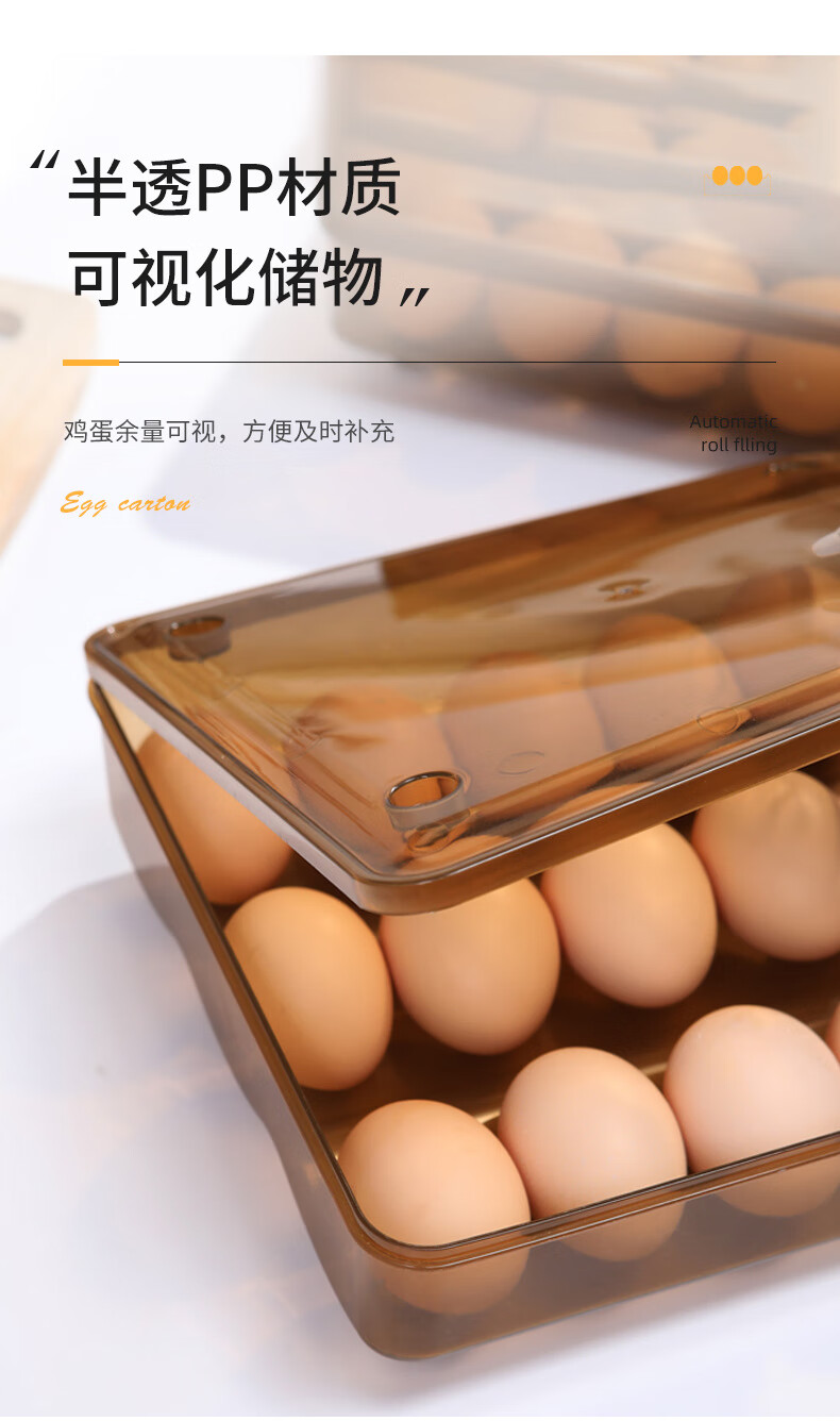FANCYCHIC egg storage automatic egg rolling slide design refrigerator storage box egg carton anti-fall large multi-layer storage artifact main picture automatic egg rolling two sets can hold 30 pieces