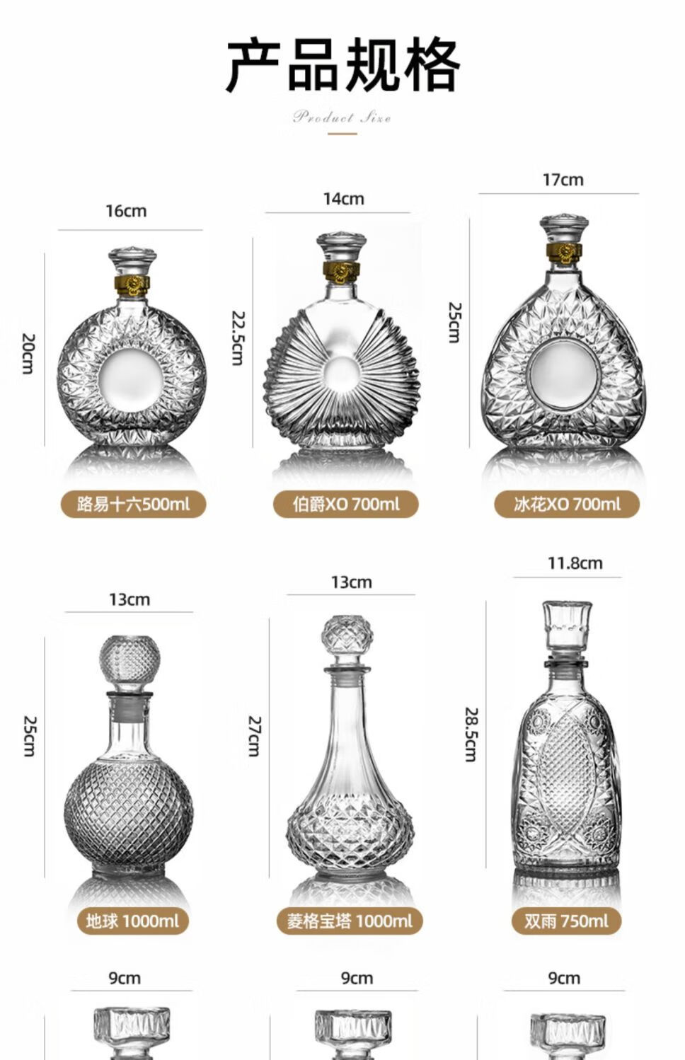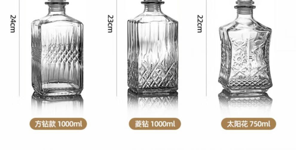 Baichao glass wine bottle, empty bottle, sealed soaking wine bottle, red wine bottle, foreign wine bottle, decanter, repackaged wine bottle, wine cabinet decoration, gift diamond model 1000ML with single wine bottle