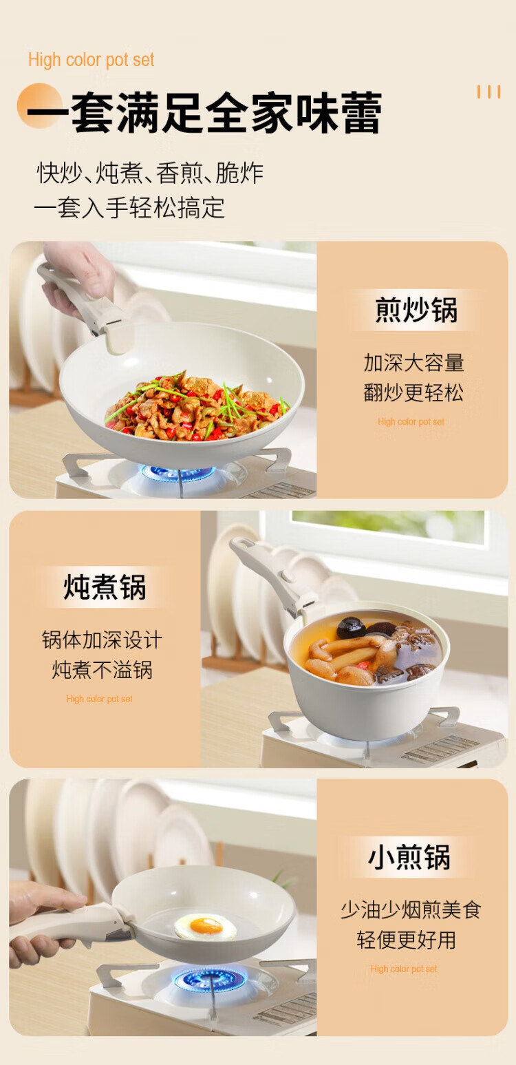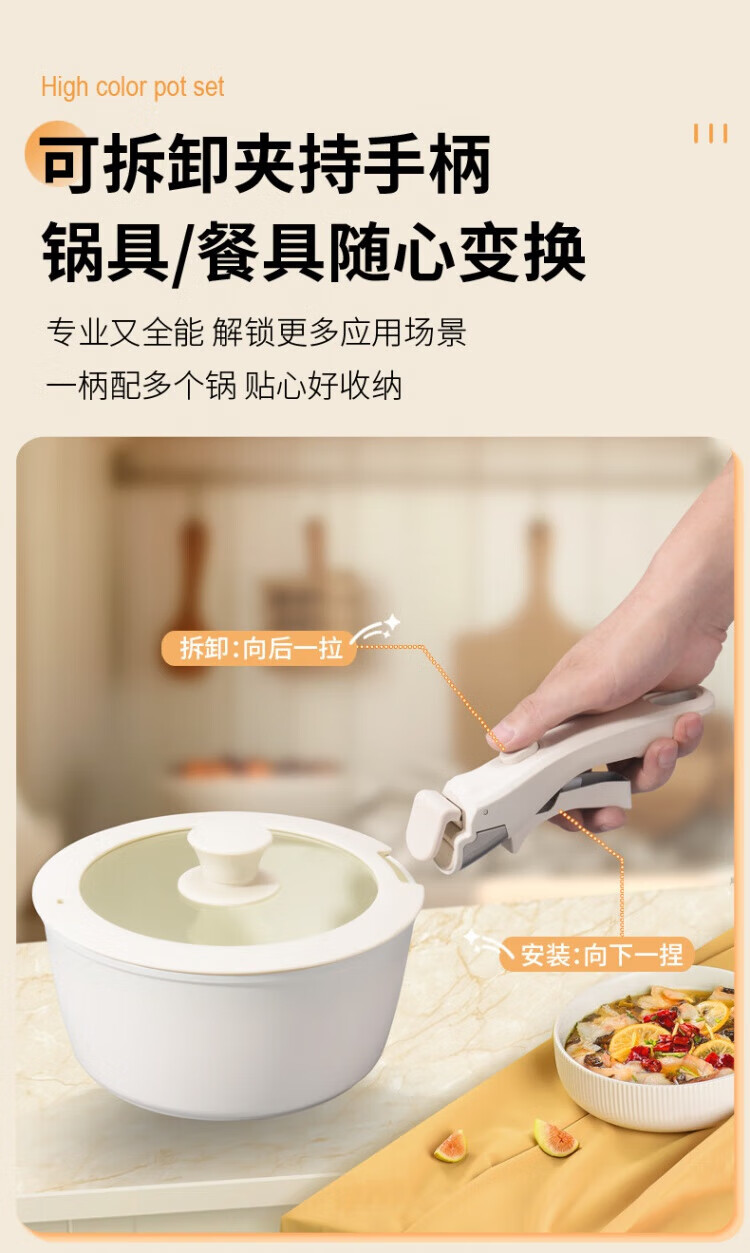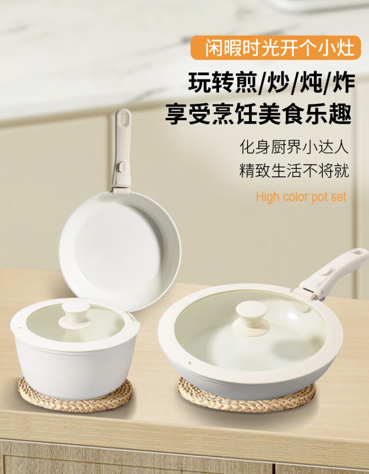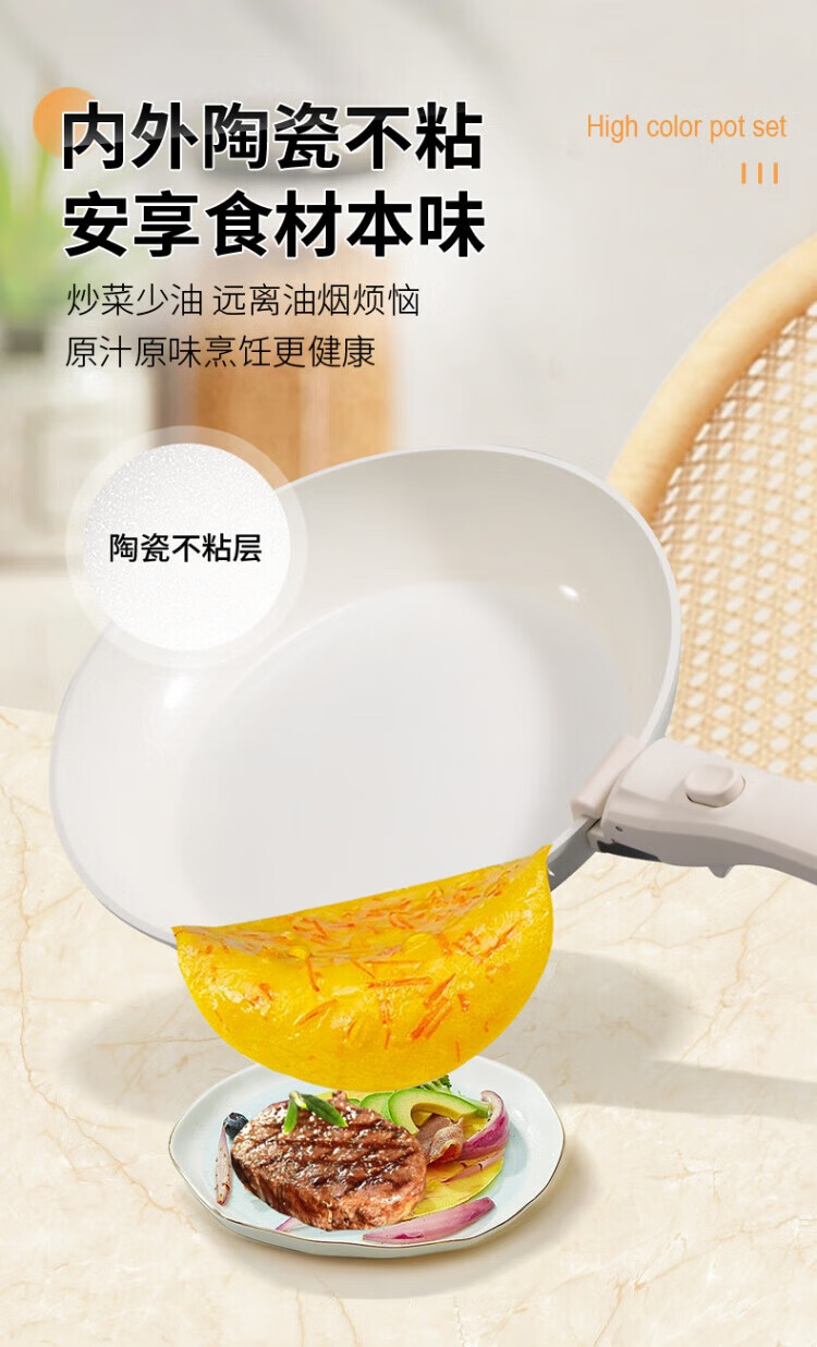 SSIIXX Japanese brand ceramic non-stick pot removable handle pot set portable outdoor frying pan flat bottom cooking pot white 6-piece set ceramic set