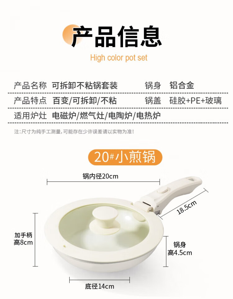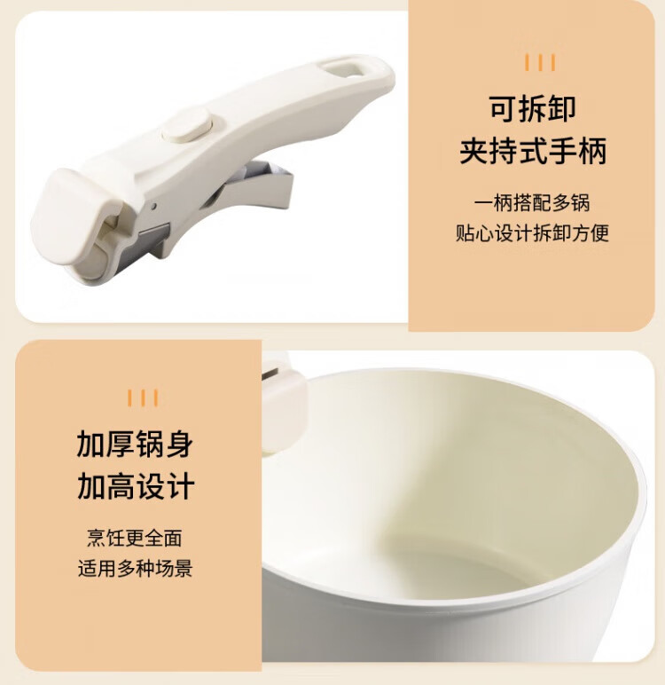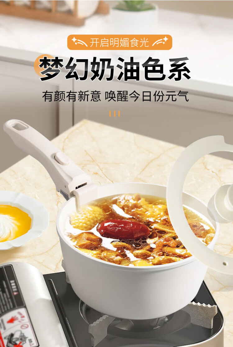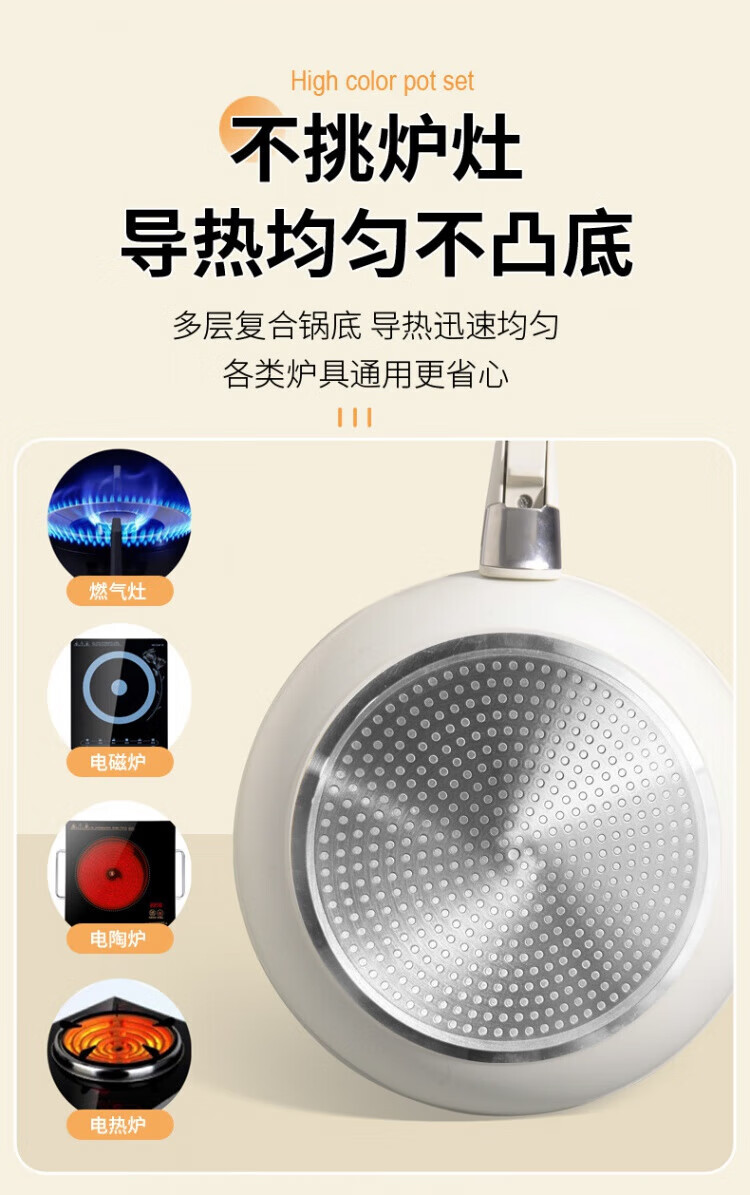 SSIIXX Japanese brand ceramic non-stick pot removable handle pot set portable outdoor frying pan flat bottom cooking pot white 6-piece set ceramic set