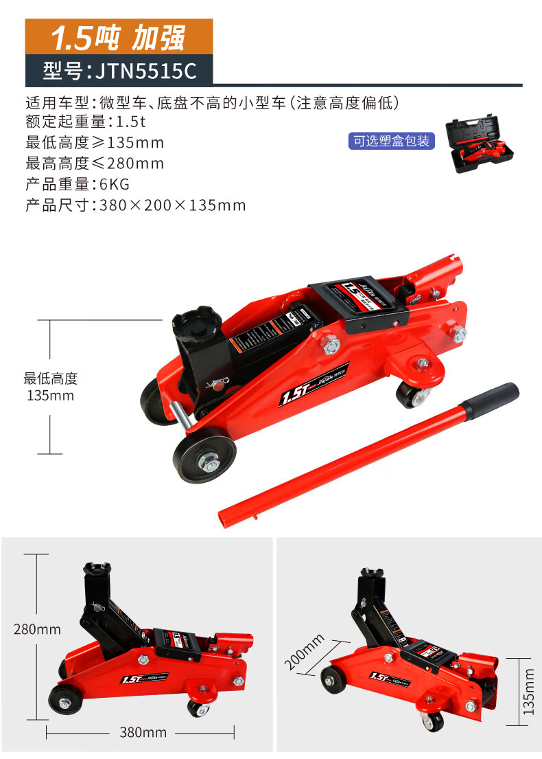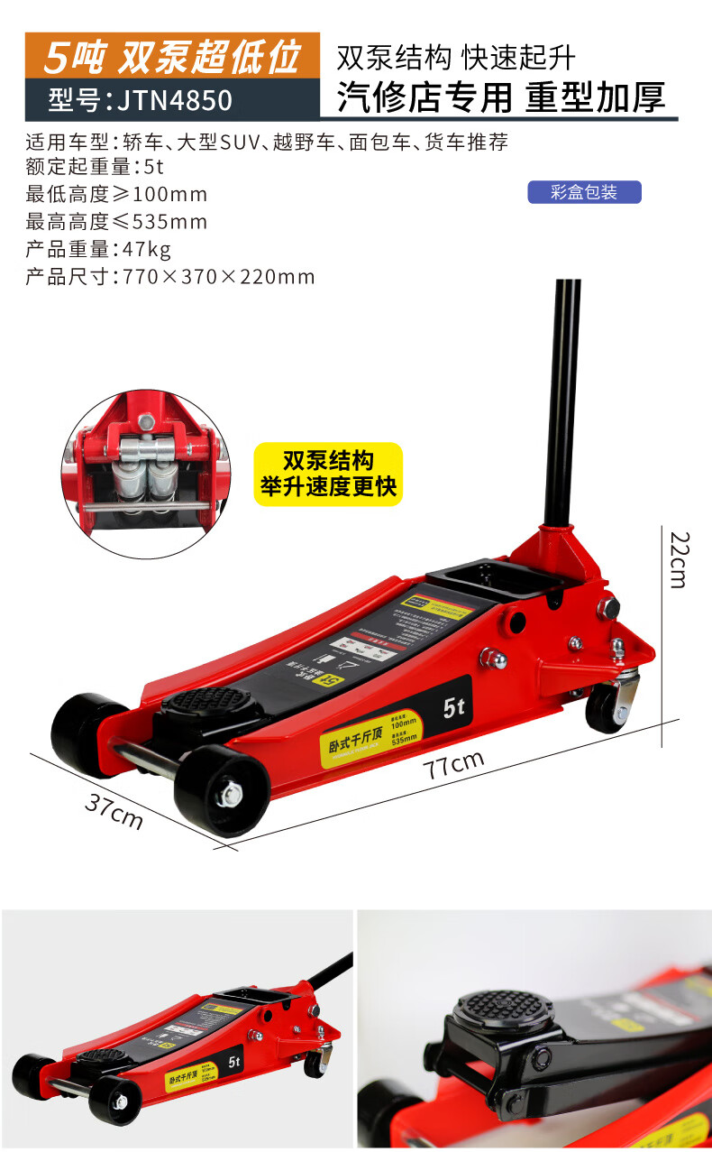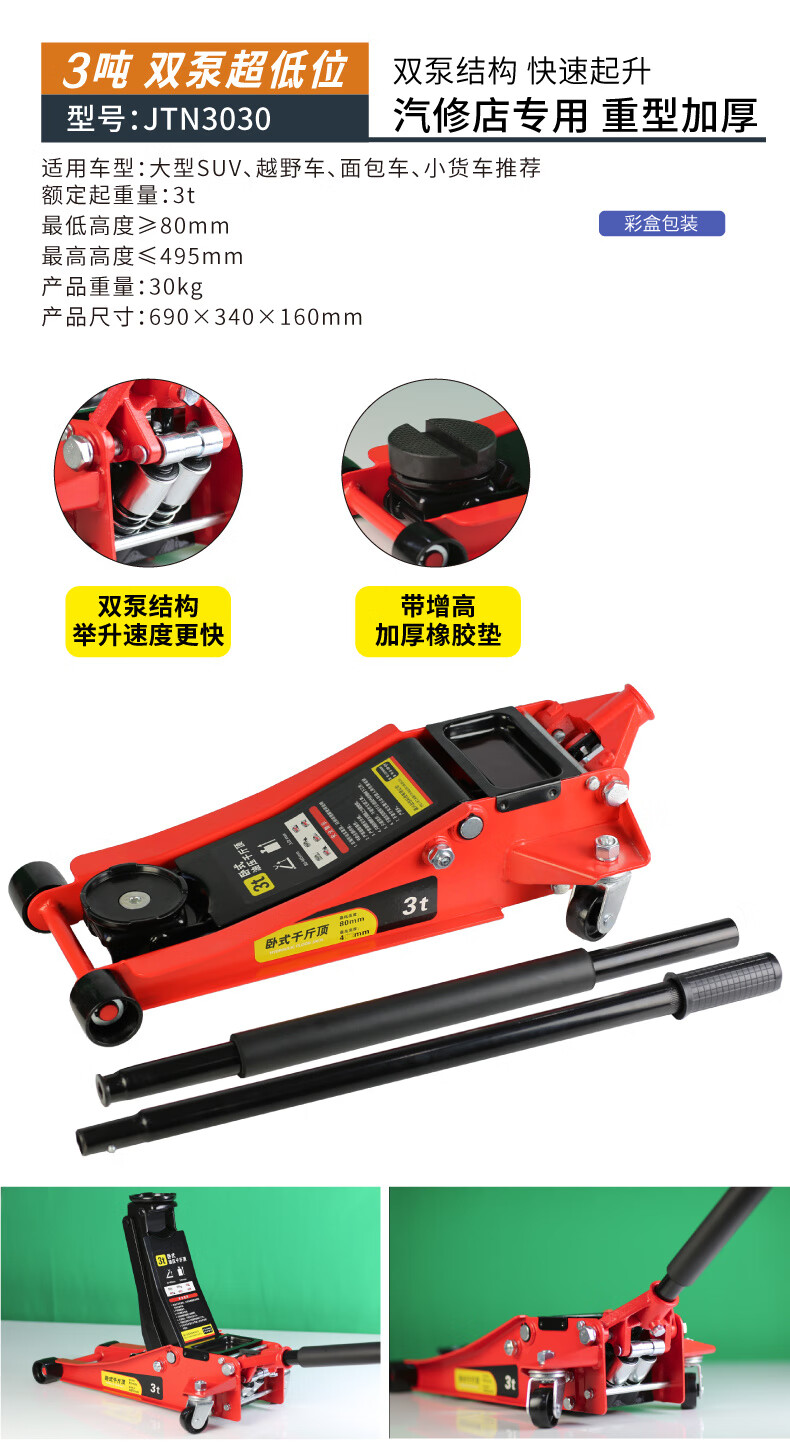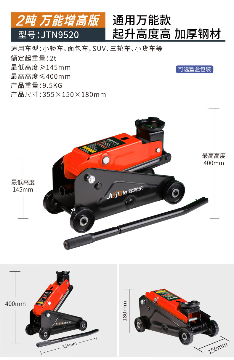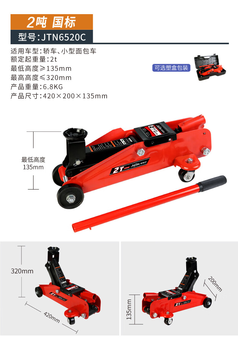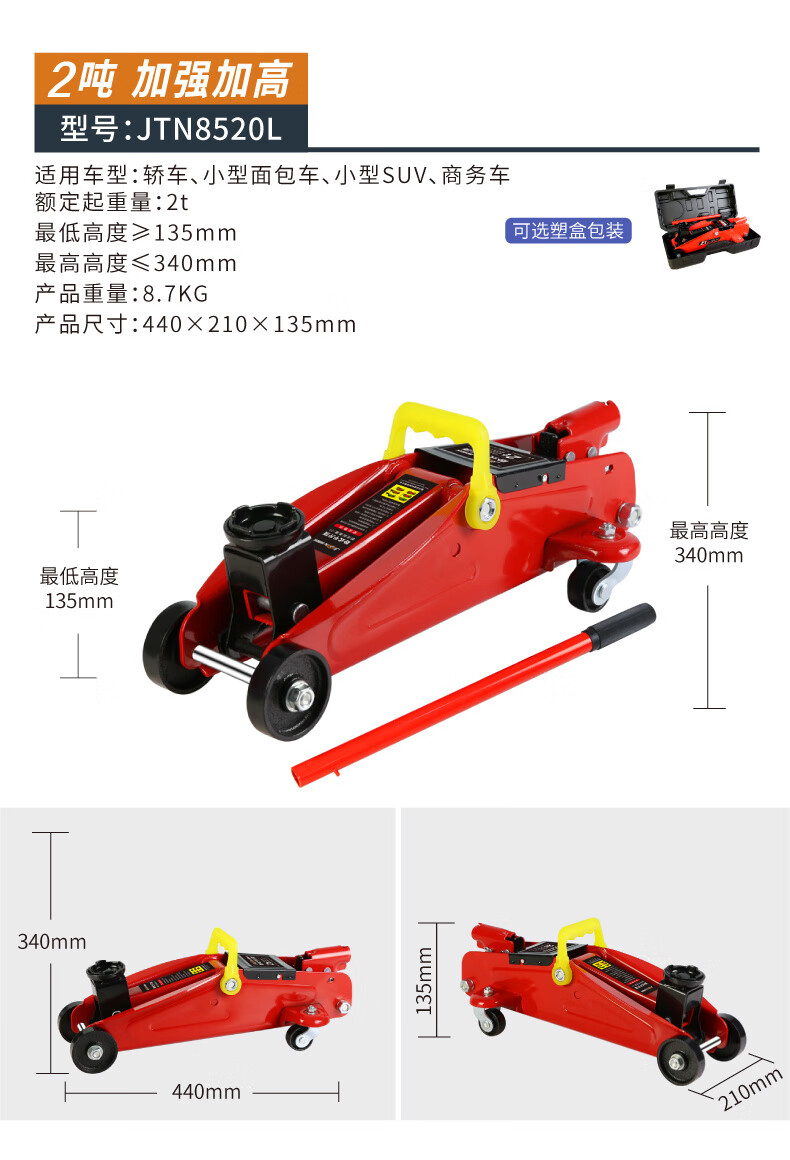 Qinkai 2 tons 3 tons horizontal hydraulic jack car hydraulic sleeper car SUV van tire changing tool Qianjinding 2 tons national standard carton