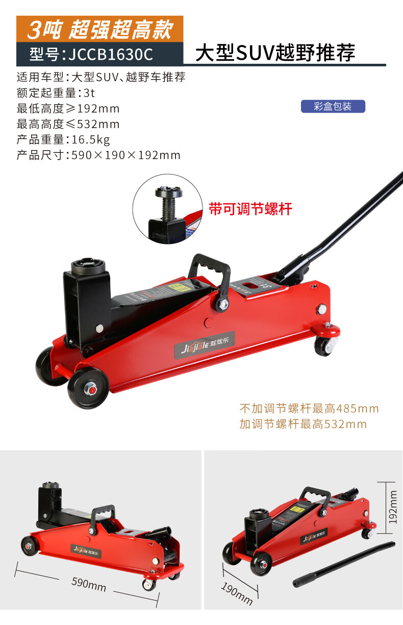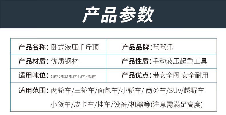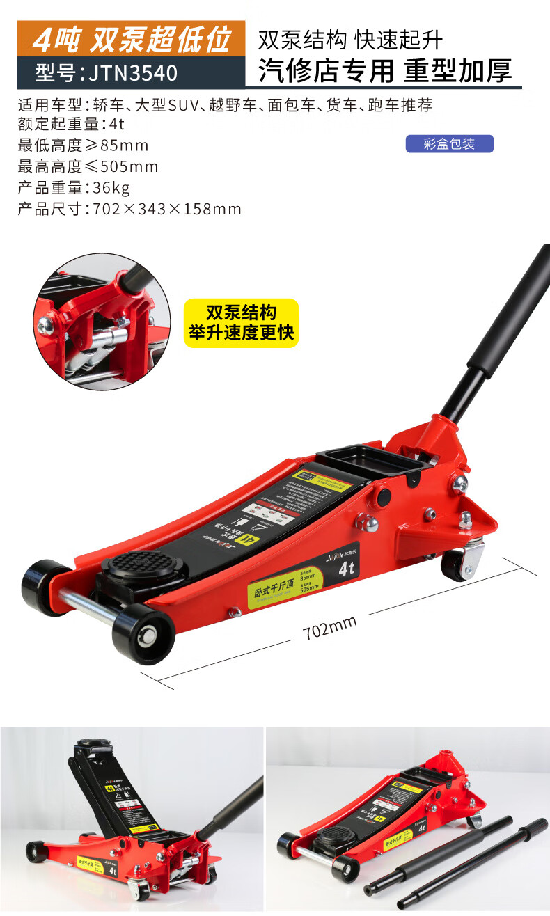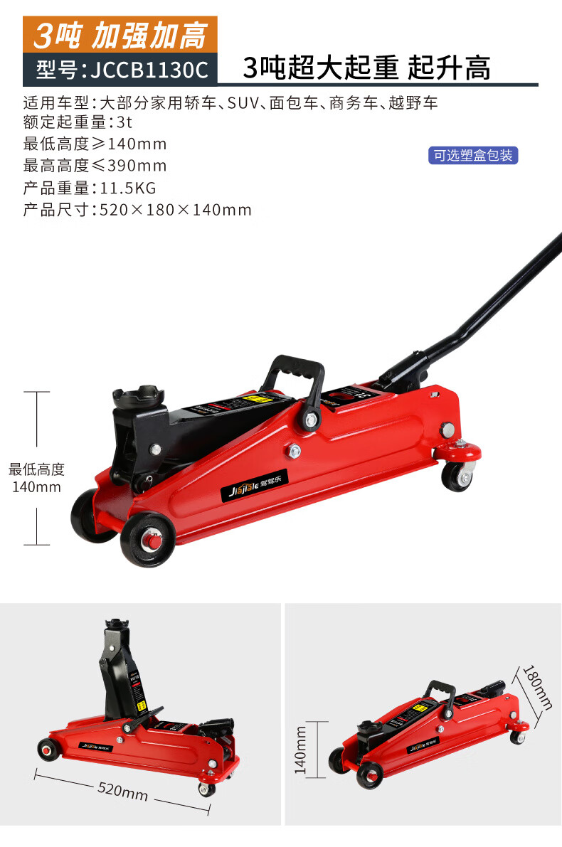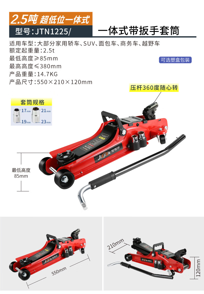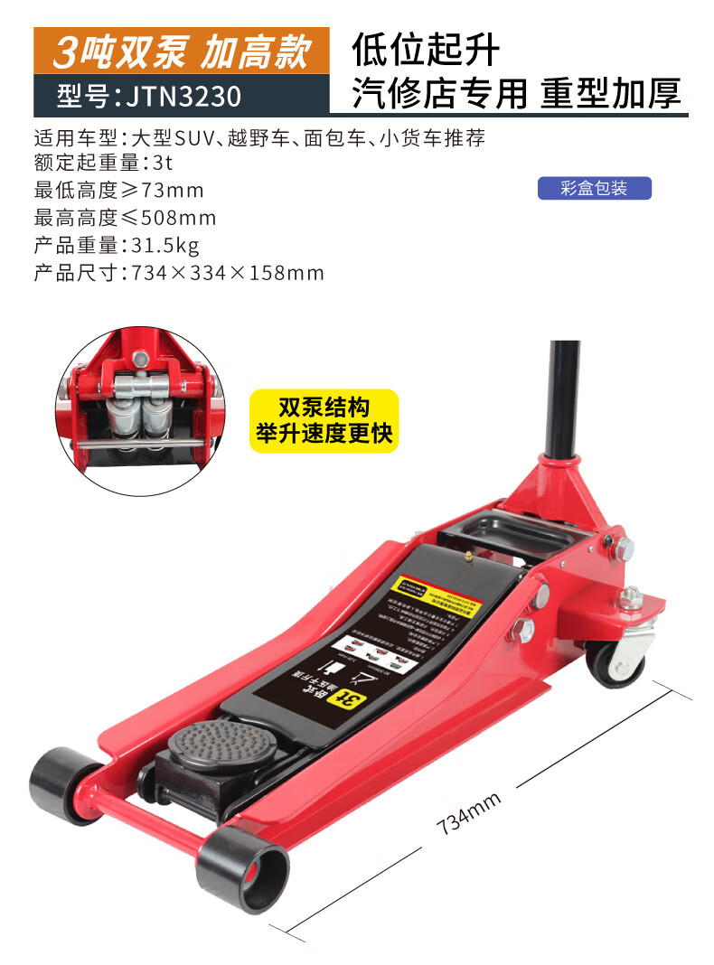 Qinkai 2 tons 3 tons horizontal hydraulic jack car hydraulic sleeper car SUV van tire changing tool Qianjinding 2 tons national standard carton