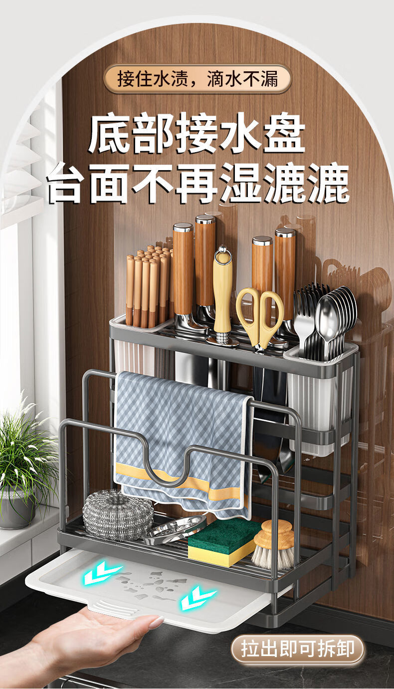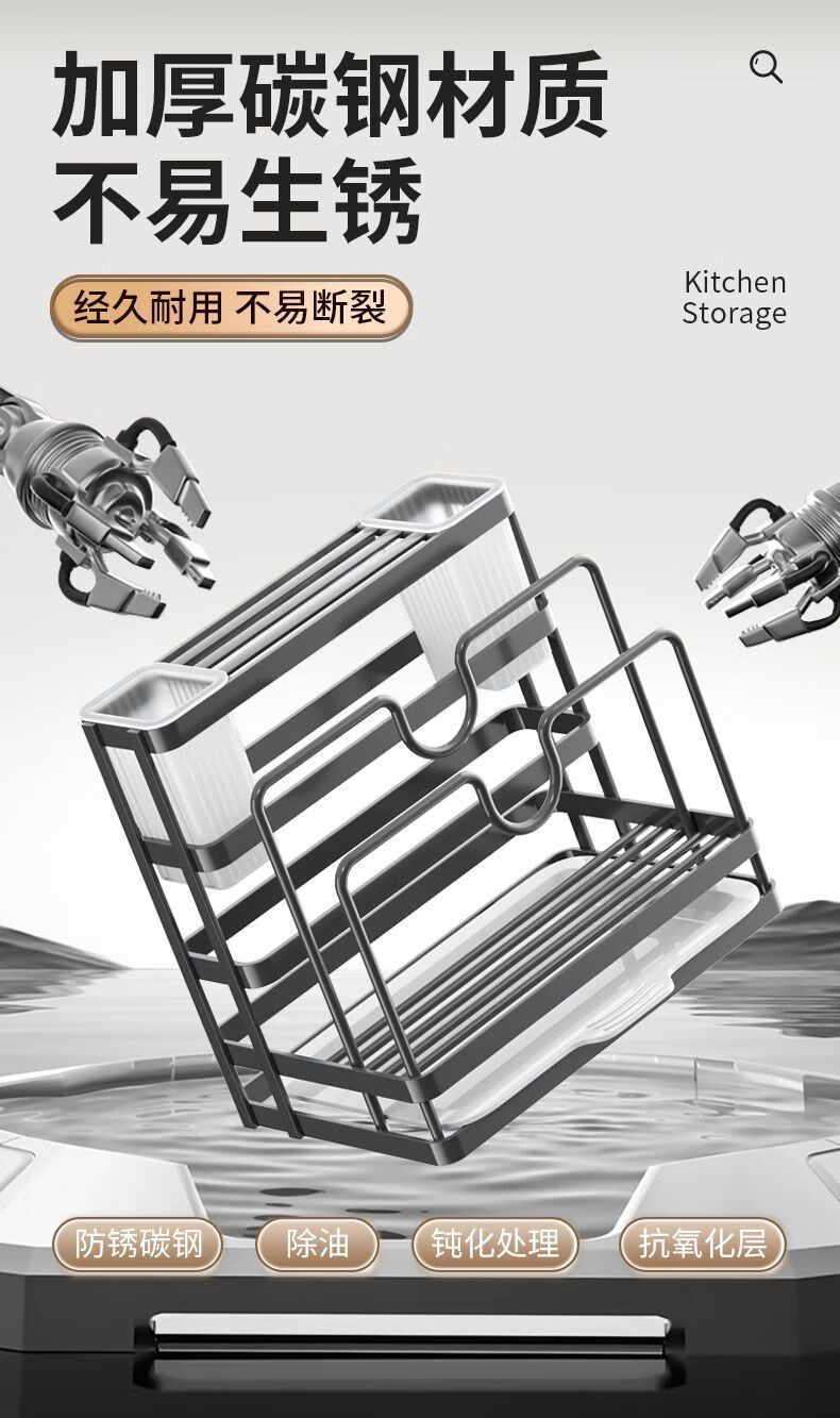 FANCYCHIC Kitchen Knife Rack Storage Rack Stainless Steel Countertop Chopping Board Rack Kitchen Knife and Chopstick Cage Integrated Knife and Chopping Board Wall-mounted Storage Rack Main Picture Model A Kitchen Storage Integrated Rack Knife Rack + Pot Lid Rack +