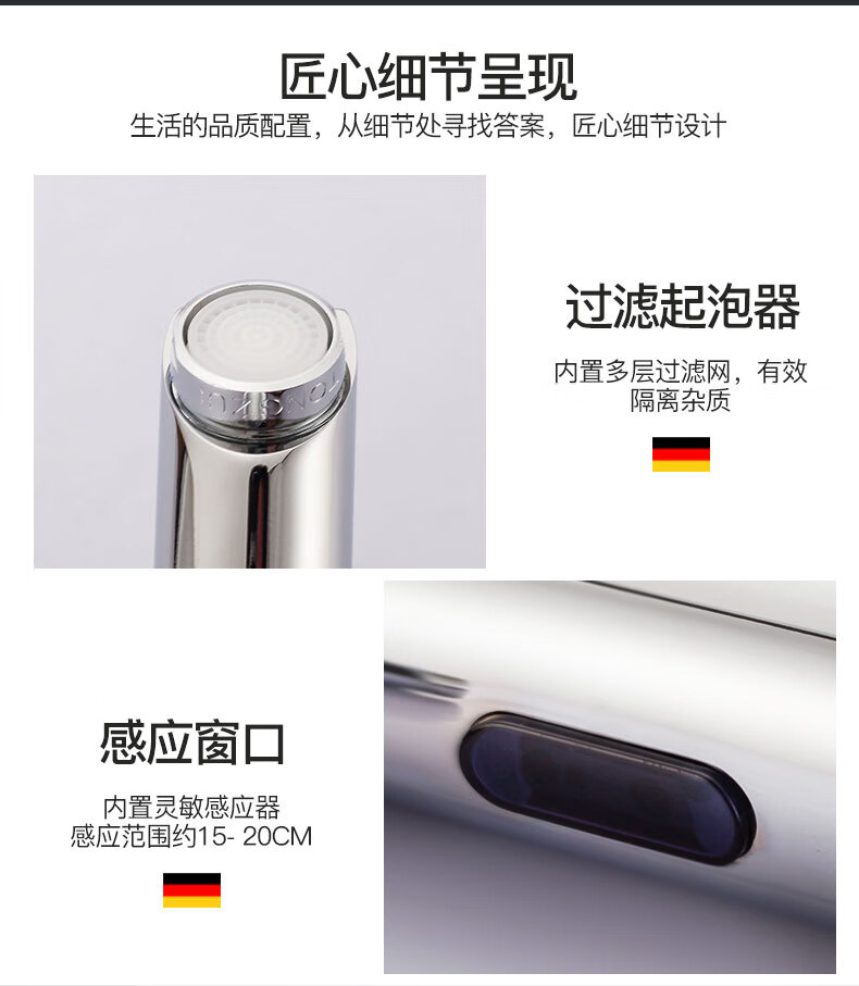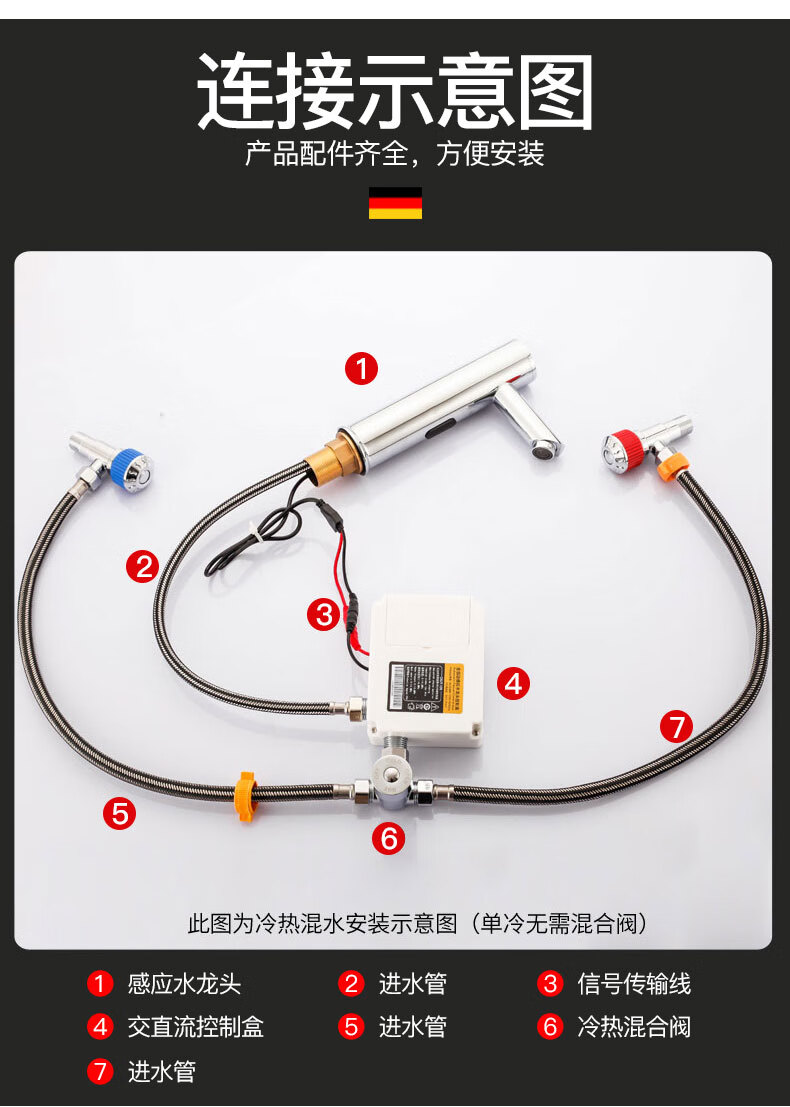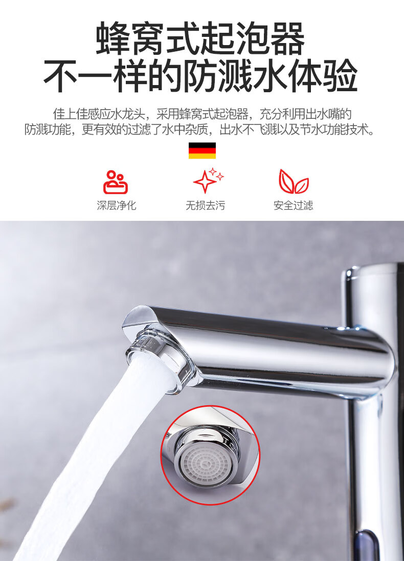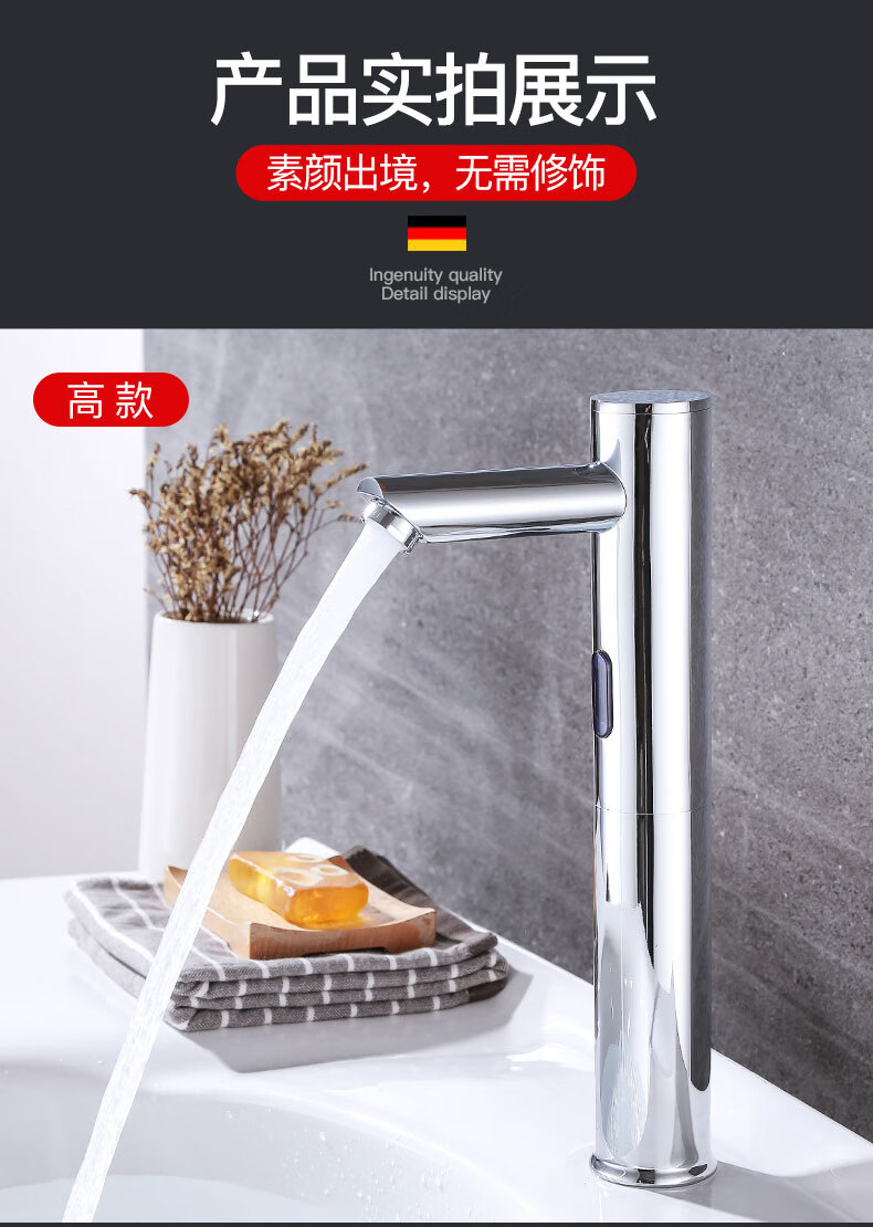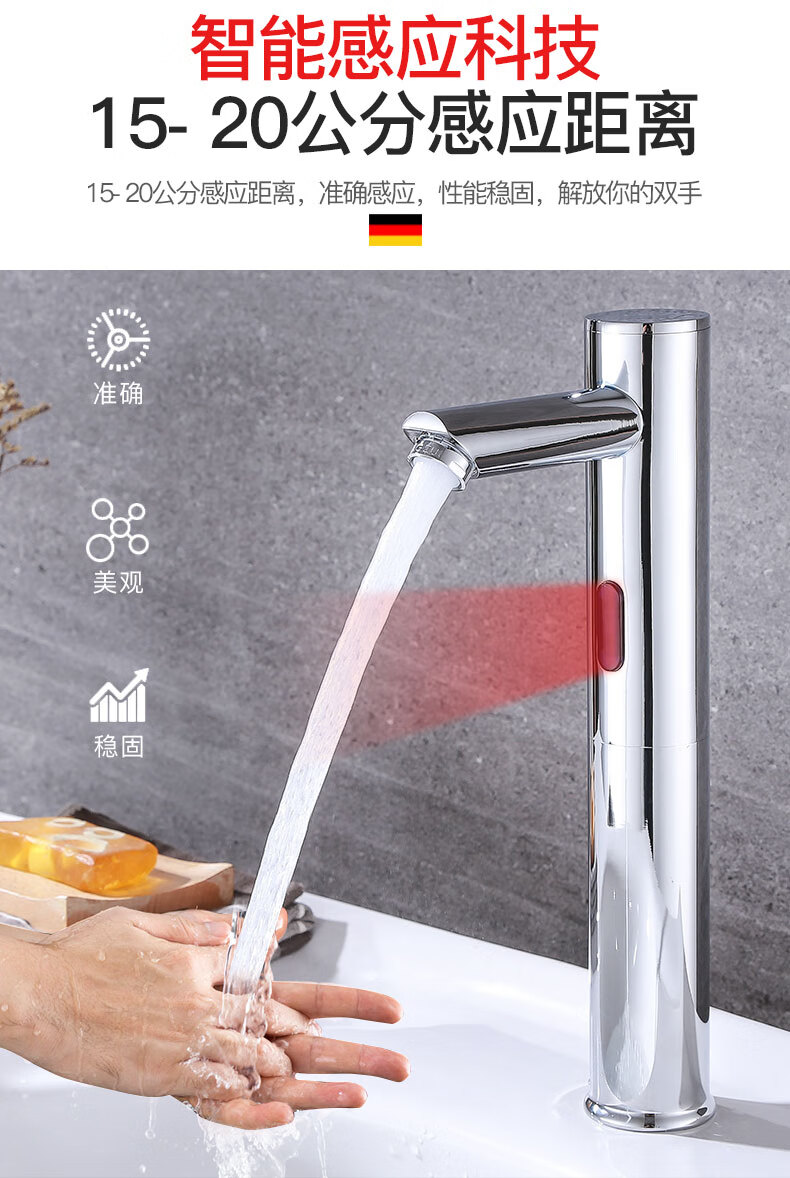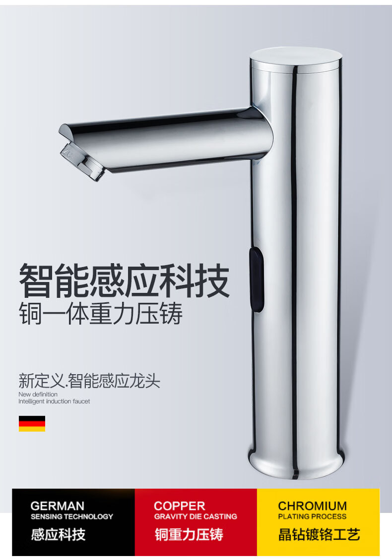 Jingyu all-copper induction faucet automatic induction faucet single hot and cold intelligent induction infrared household handwasher high-end hot and cold AC and DC + hose + regulating valve