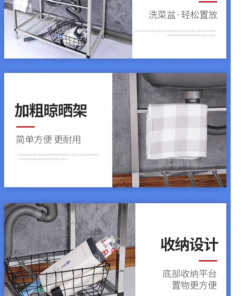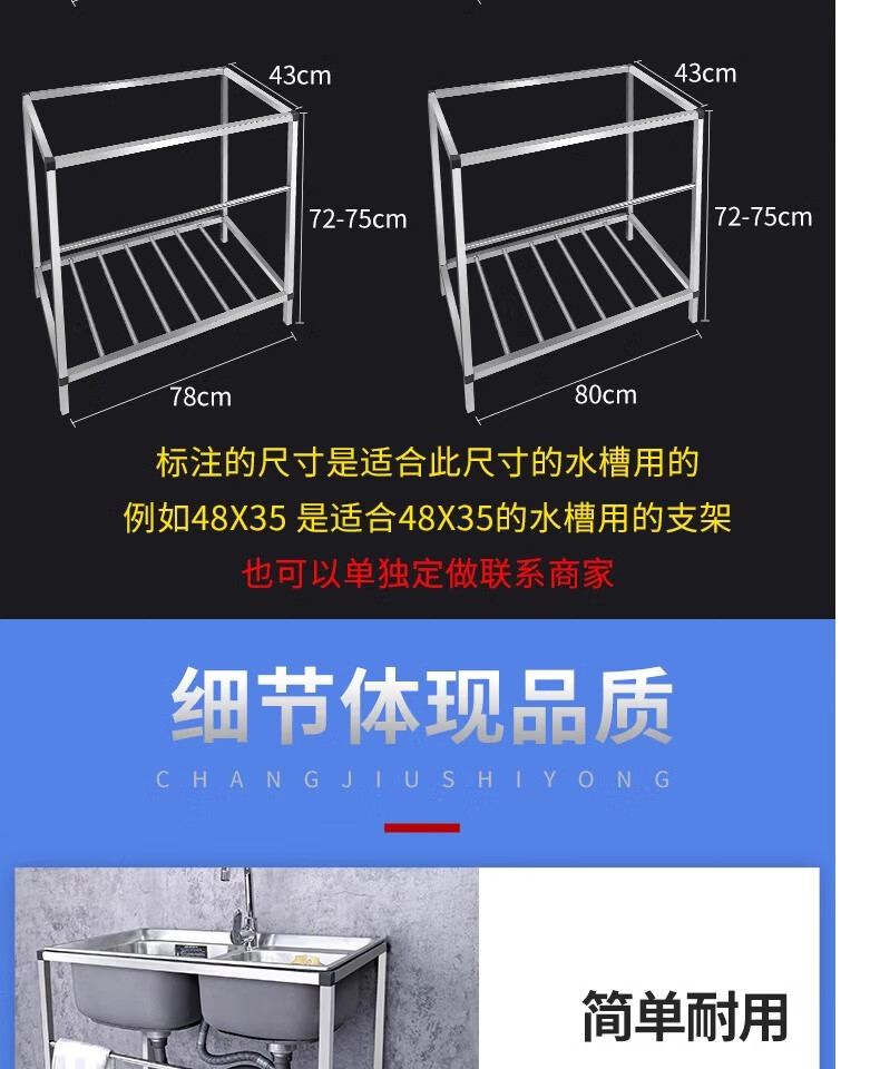 Pufan stainless steel sink bracket kitchen double-slot single-slot floor-standing custom-made thickened wash basin household integrated vegetable washing bracket suitable for sink 80 43 bracket