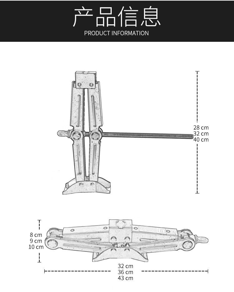 Qinkai car jack car hand crank horizontal tire change special hand crank car with car 0.8 ton jack (small electric car)
