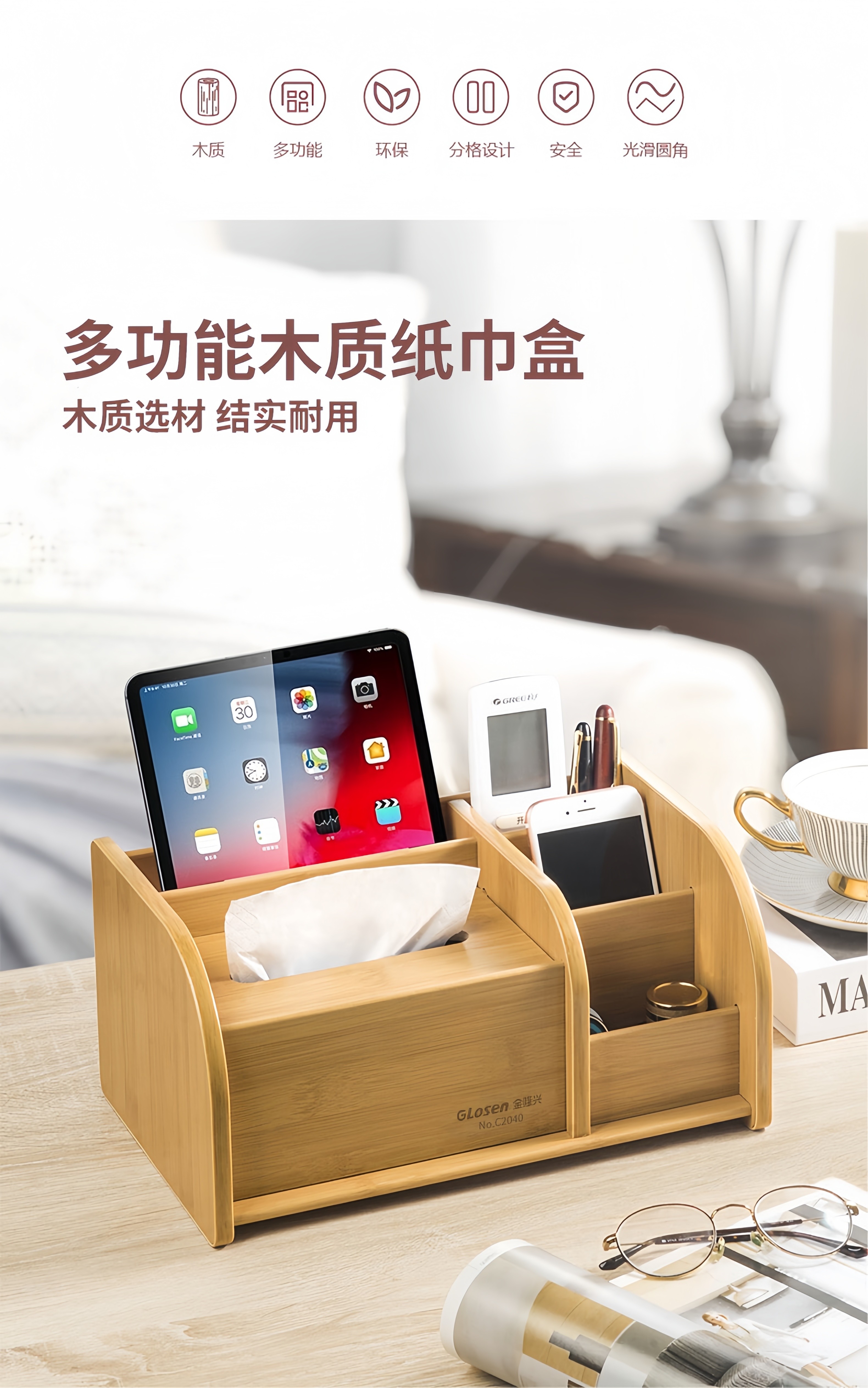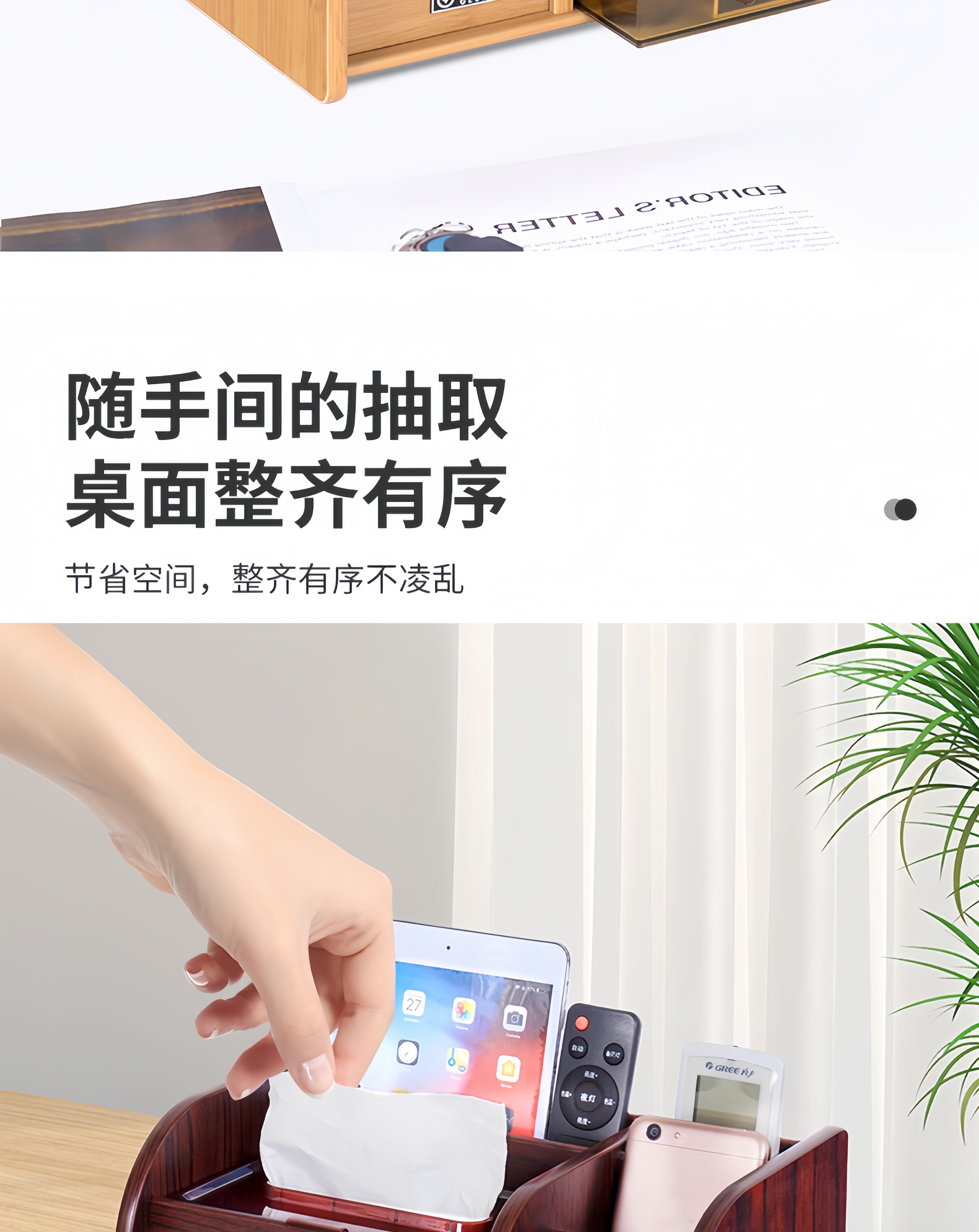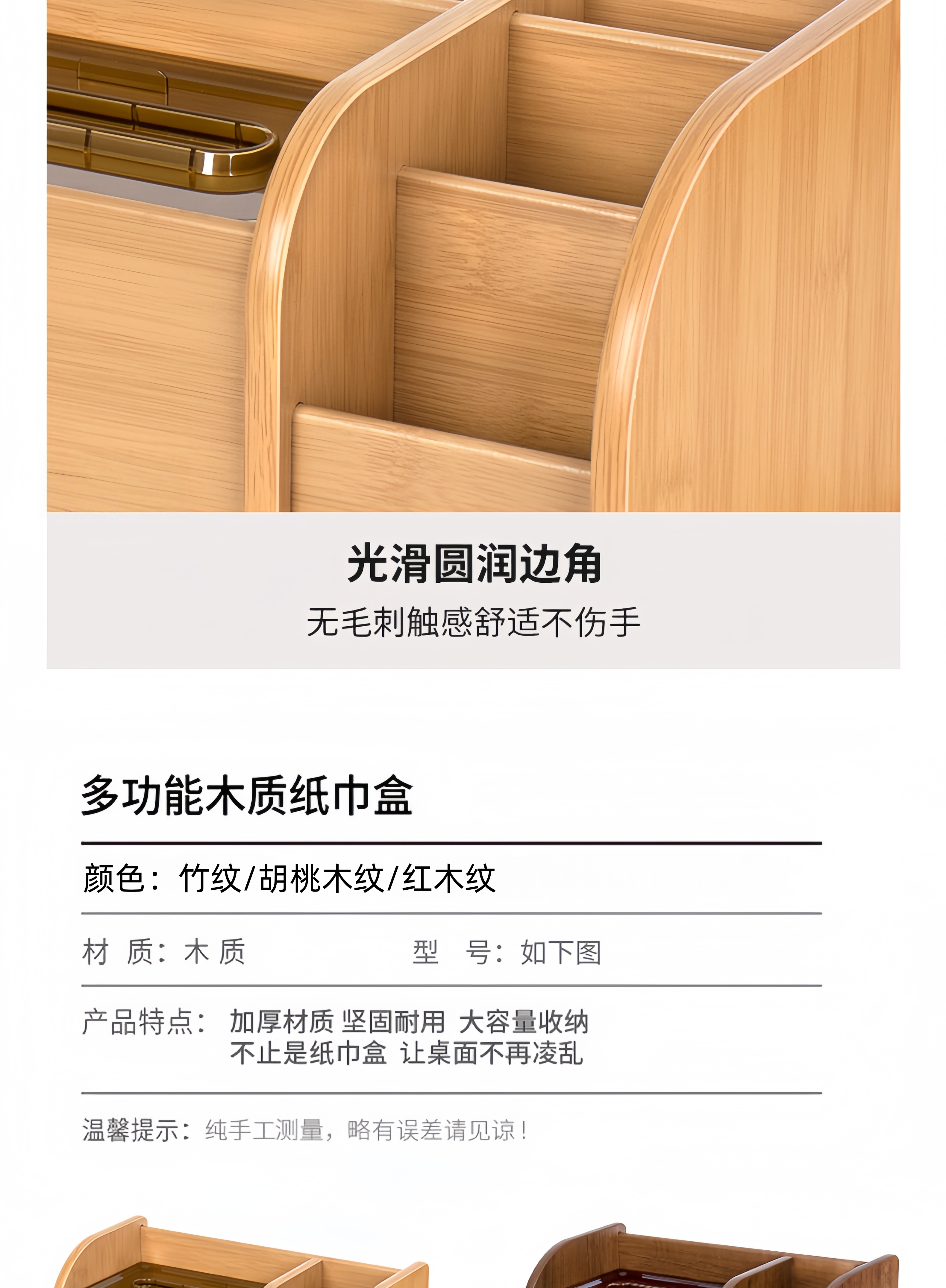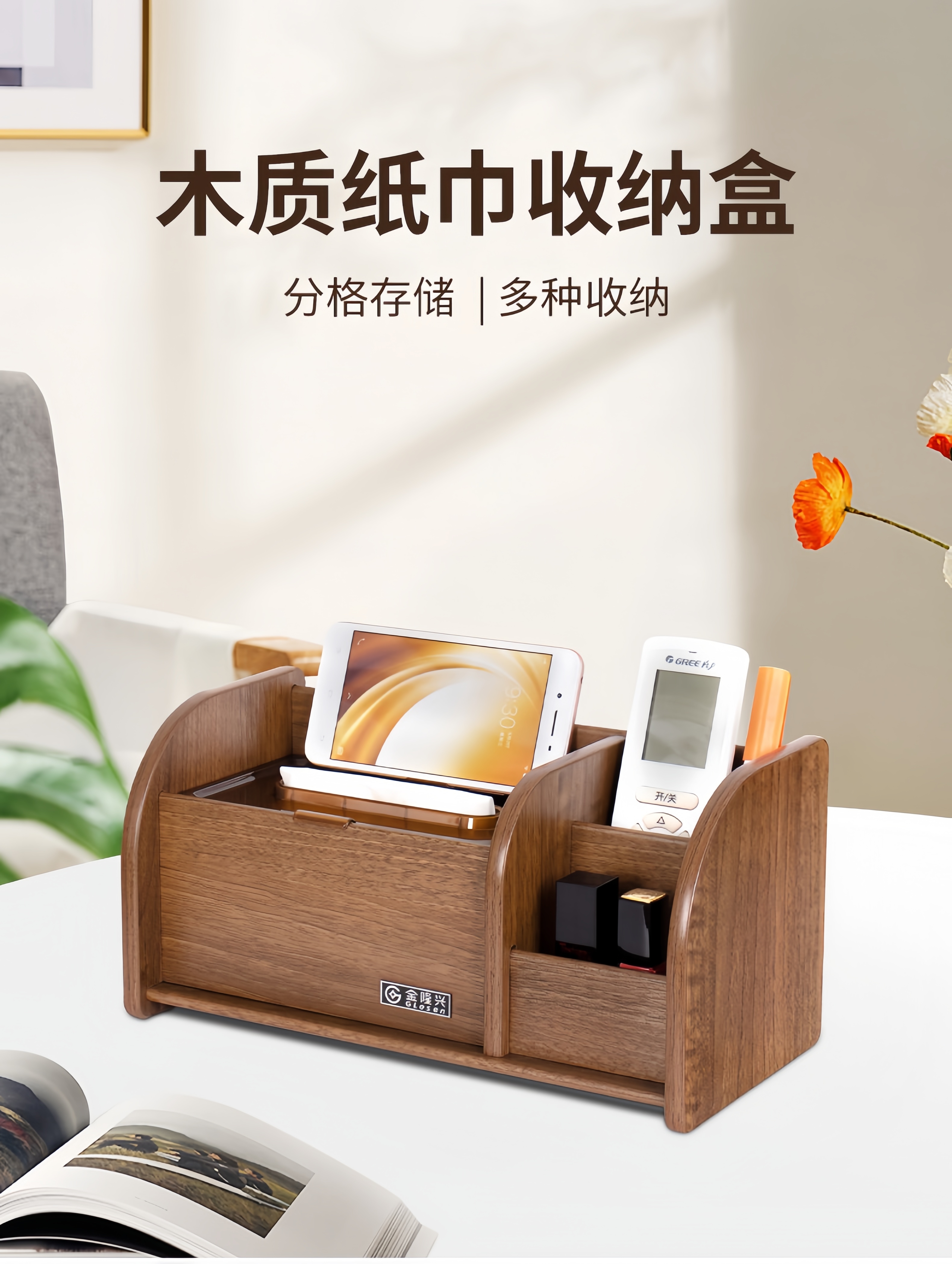 Tissue box remote control storage box desktop creative storage wooden paper box multifunctional tissue box C2039 walnut wood grain