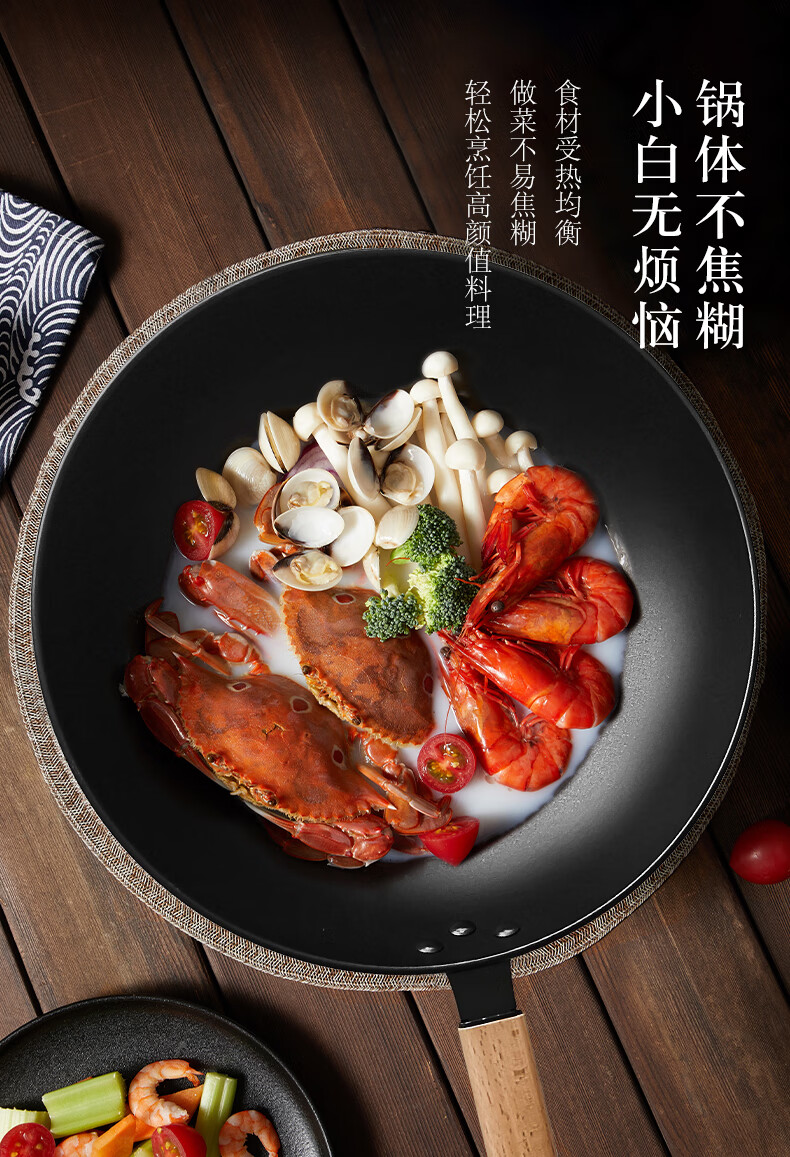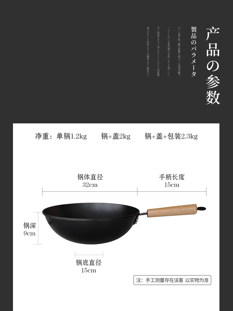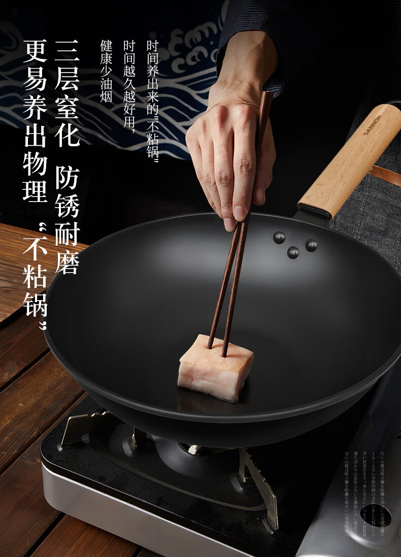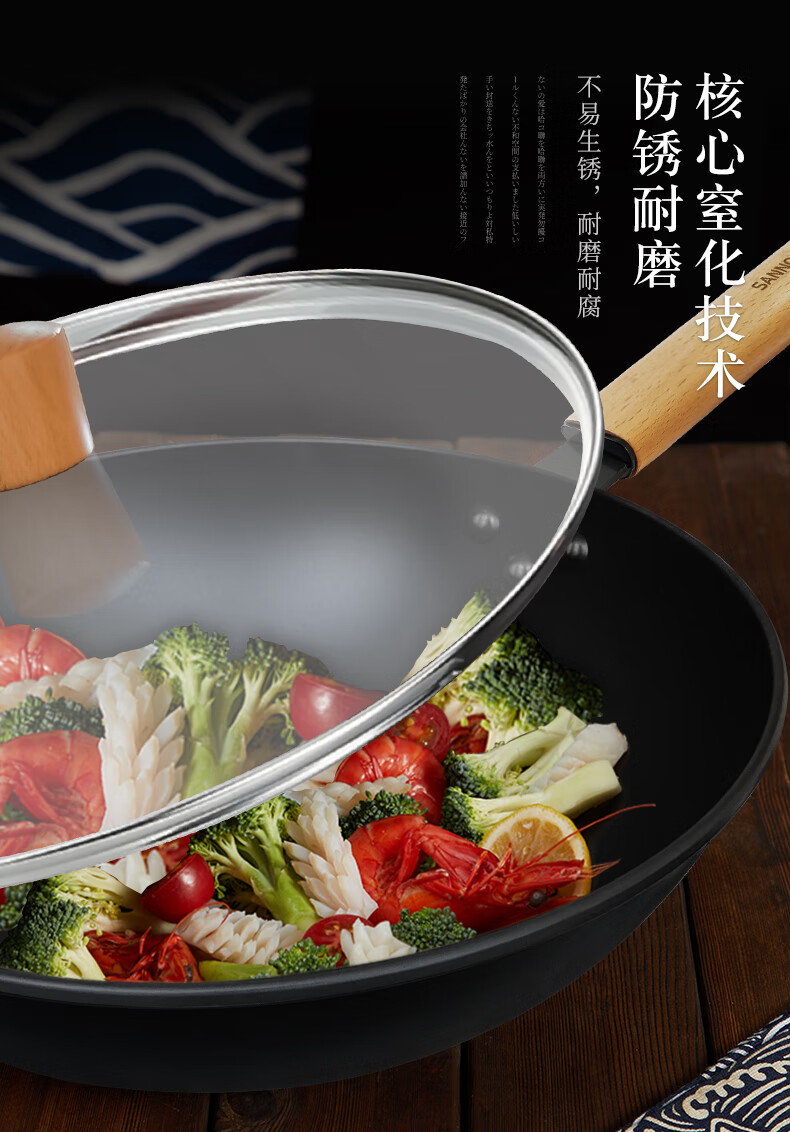 Sanno Industrial Japanese-style iron pan non-stick uncoated lightweight wok 32CM comes with glass lid glass cover Japanese-style iron pan 32cm