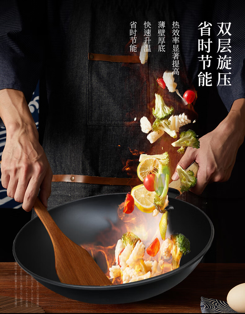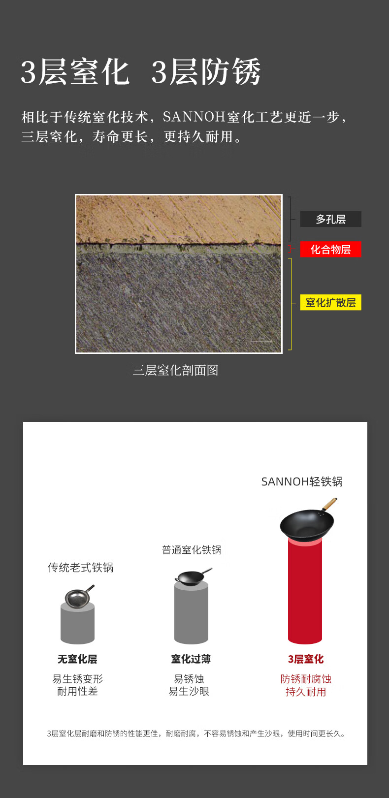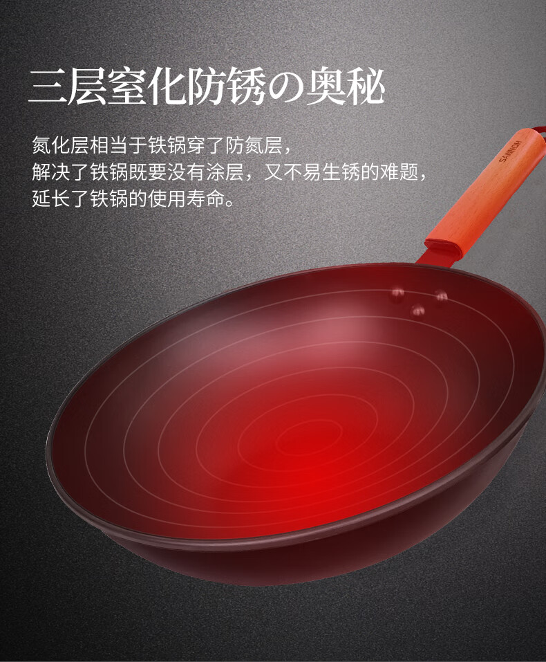 Sanno Industrial Japanese-style iron pan non-stick uncoated lightweight wok 32CM comes with glass lid glass cover Japanese-style iron pan 32cm