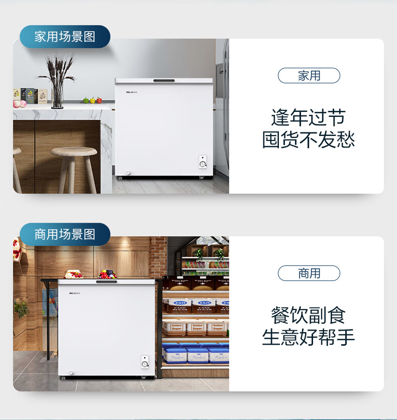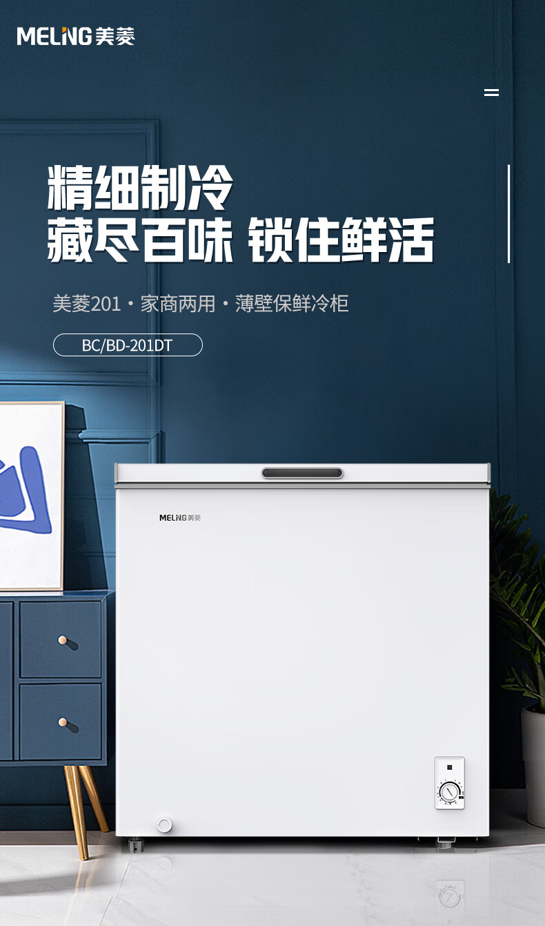 Meiling (MEILNG) 201L small freezer refrigerated and frozen household energy-saving deep cooling quick freezing base strong freezing large capacity stocking freezer white 1L