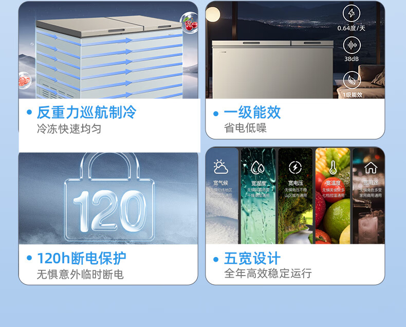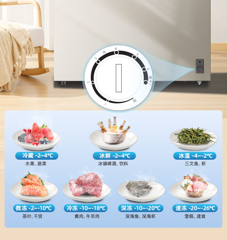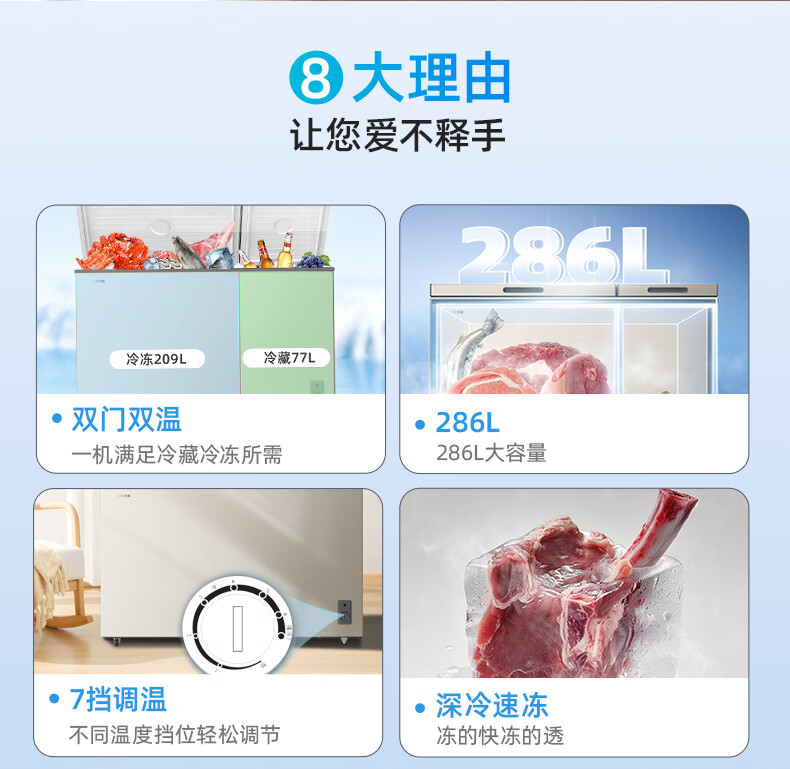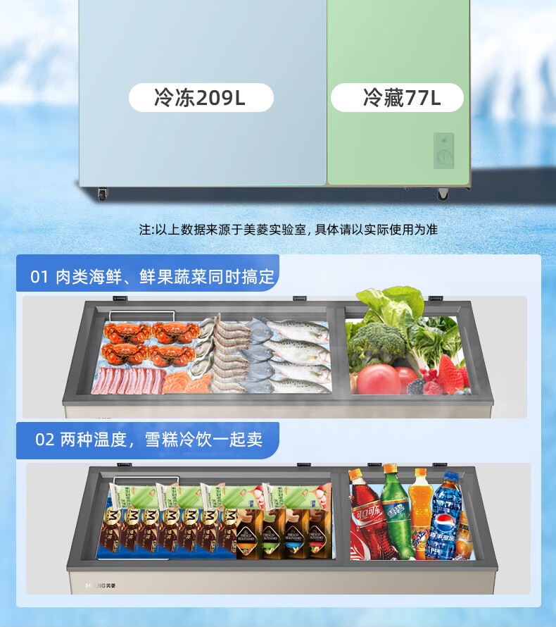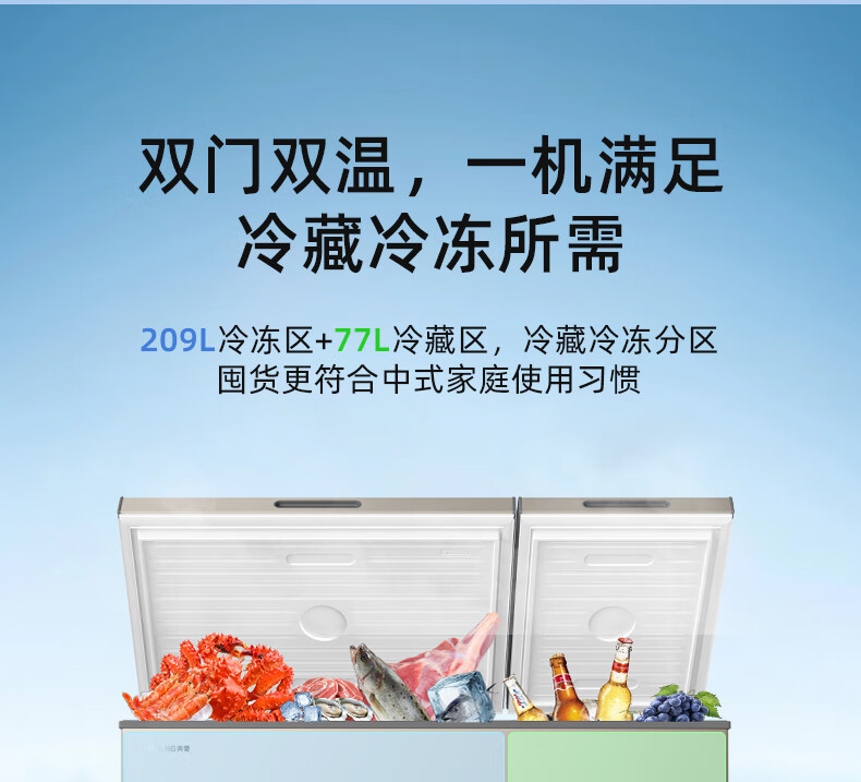 Meiling (MEILNG) 286L horizontal refrigeration and refrigeration dual-temperature deep-cooling large capacity first-class energy-efficiency and energy-saving household commercial freezer BCD-286DTX Xuanjin 286L