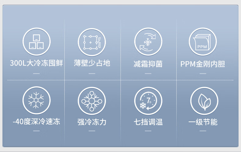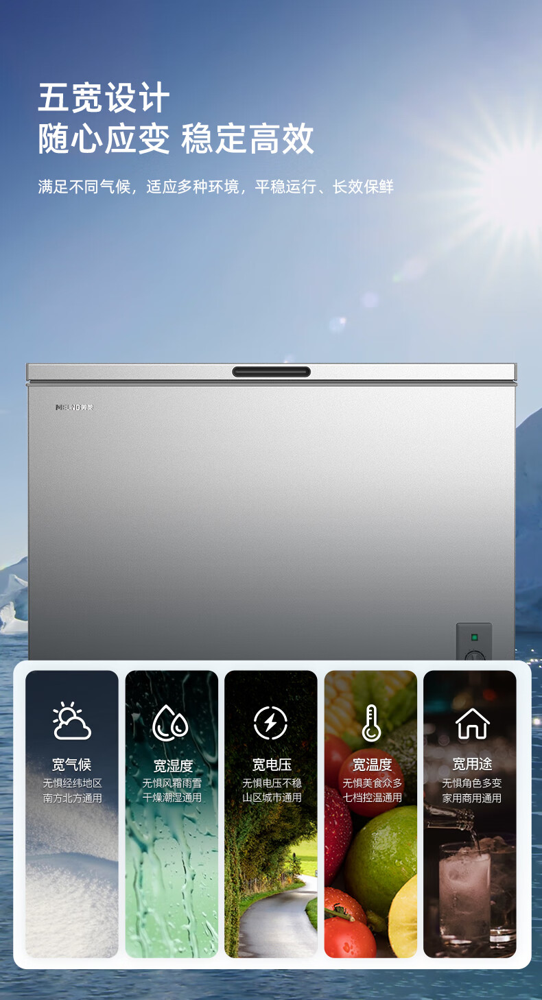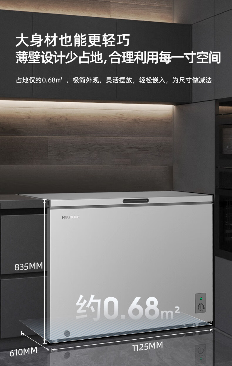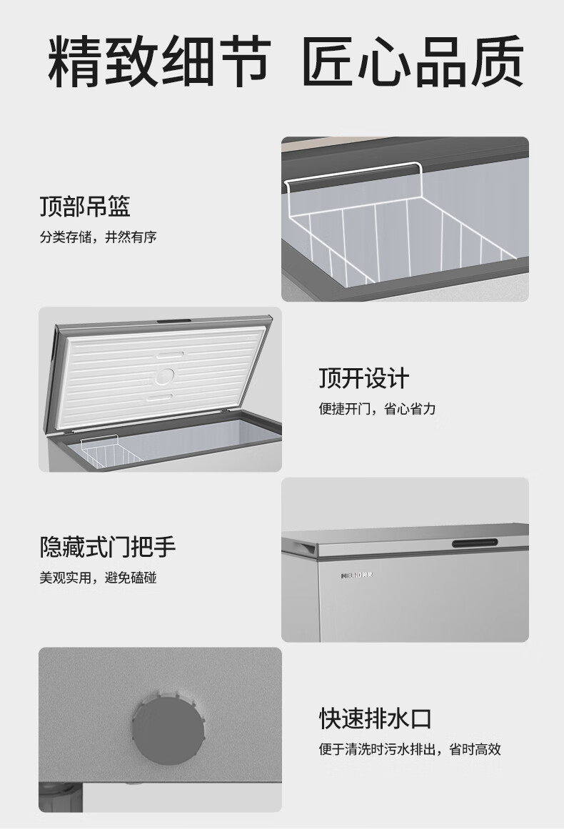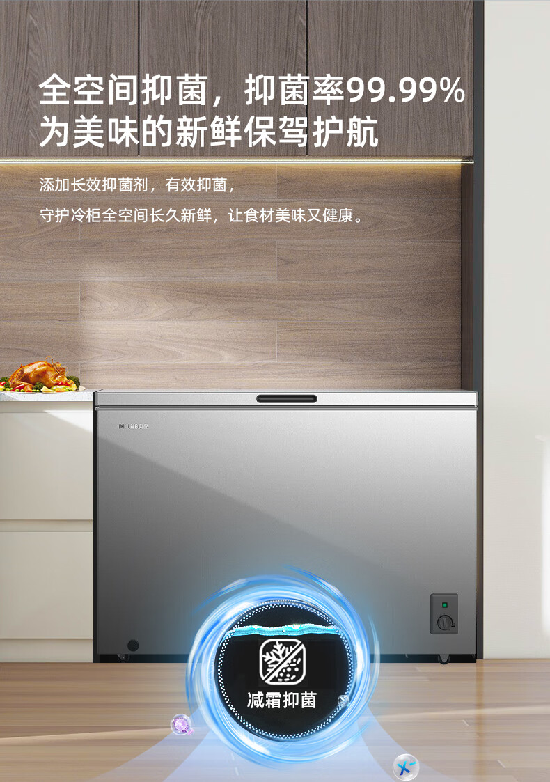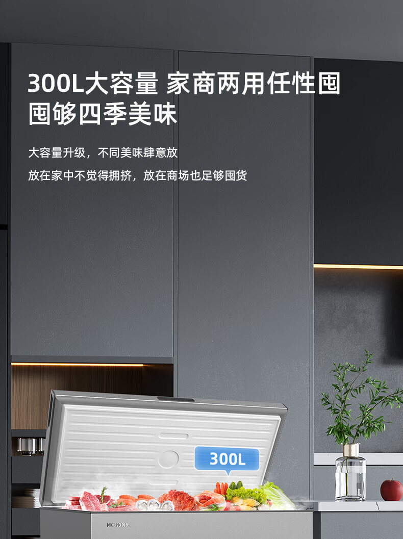Meiling (MEILNG) 300 liters of star sand silver PPM stainless steel inner tank cryogenic quick freezing thin wall frost reduction and antibacterial freezer BC/BD-300DTCLA star sand silver 1L