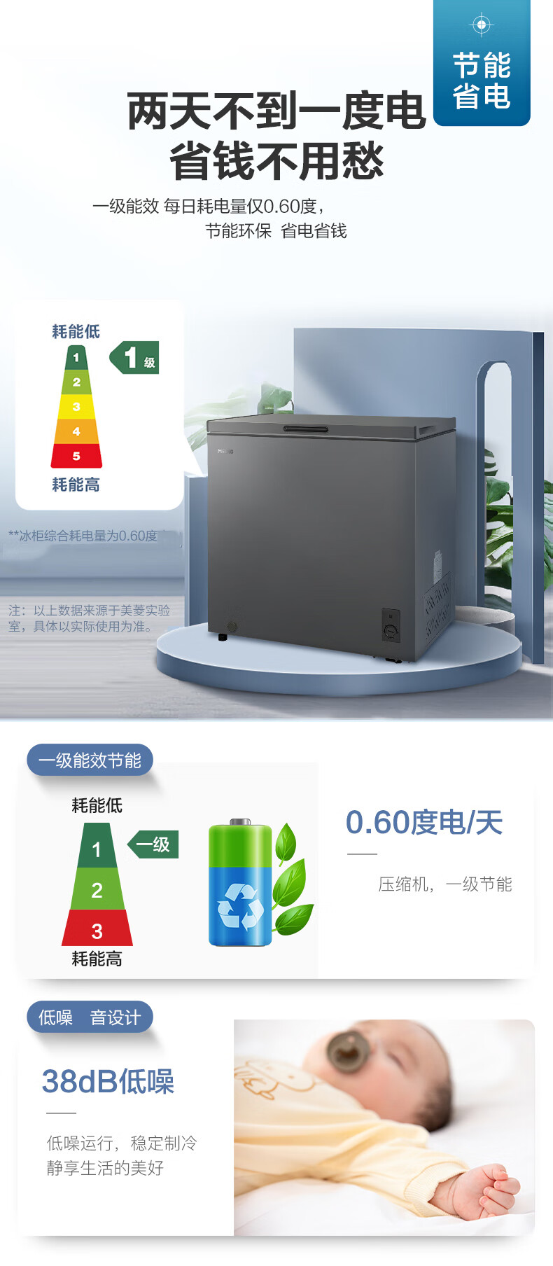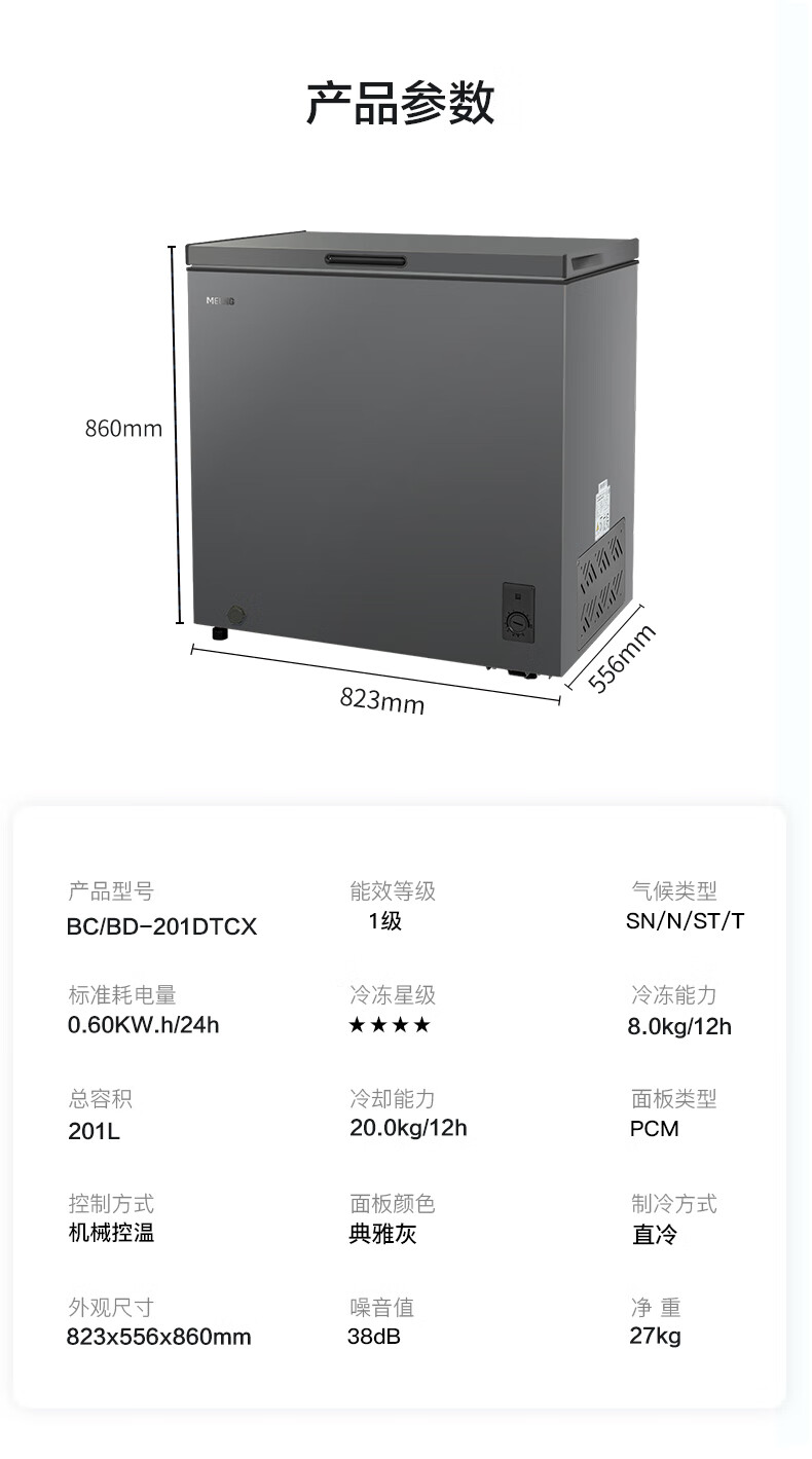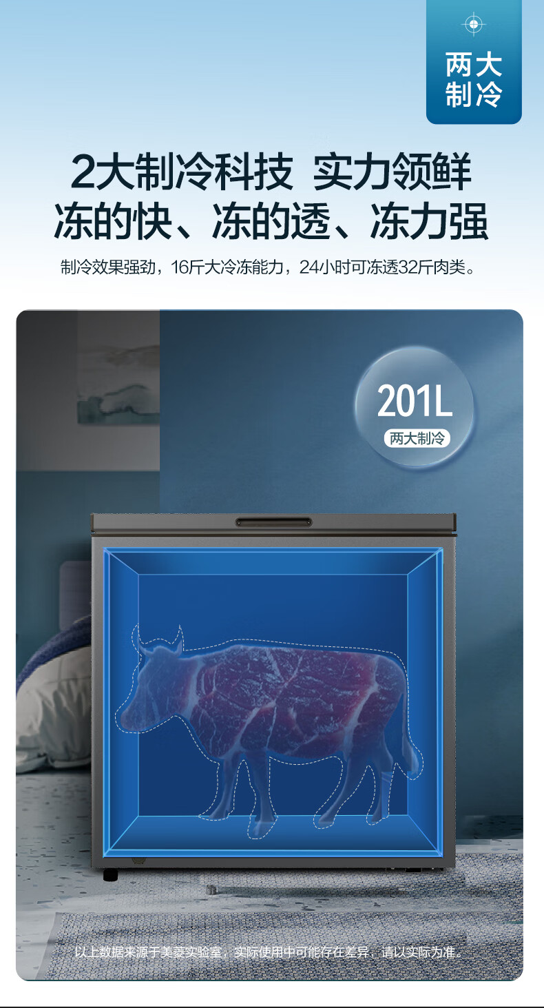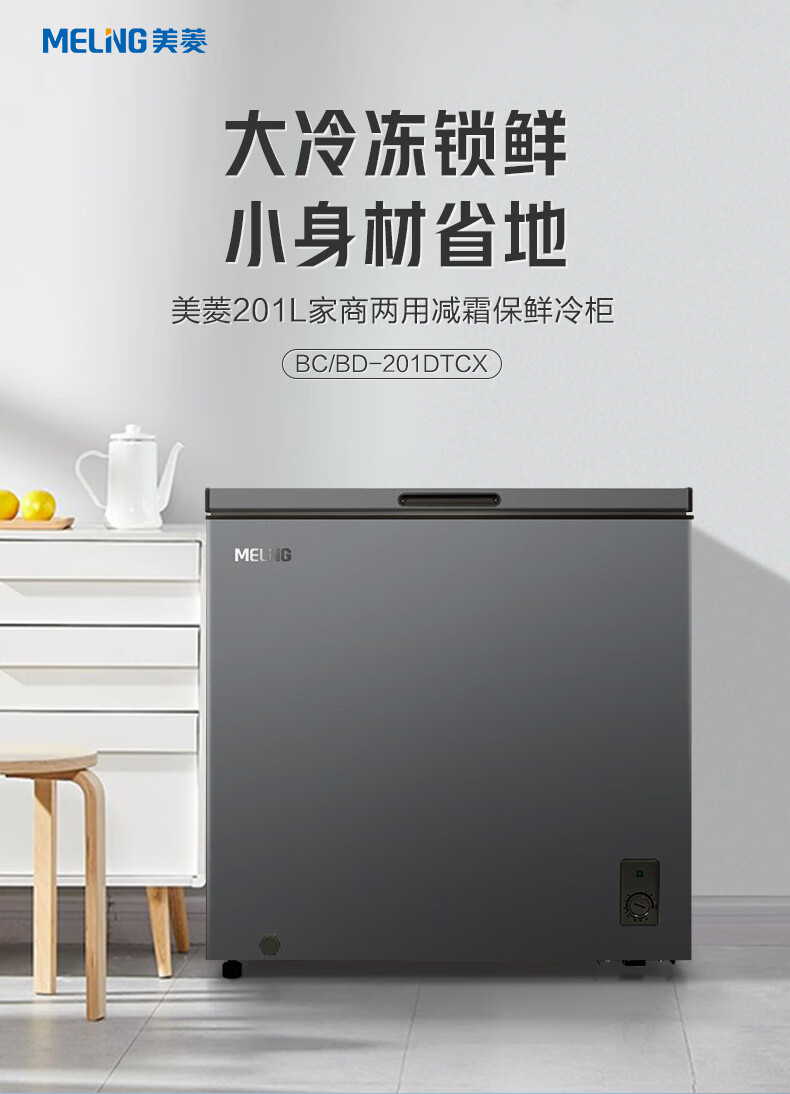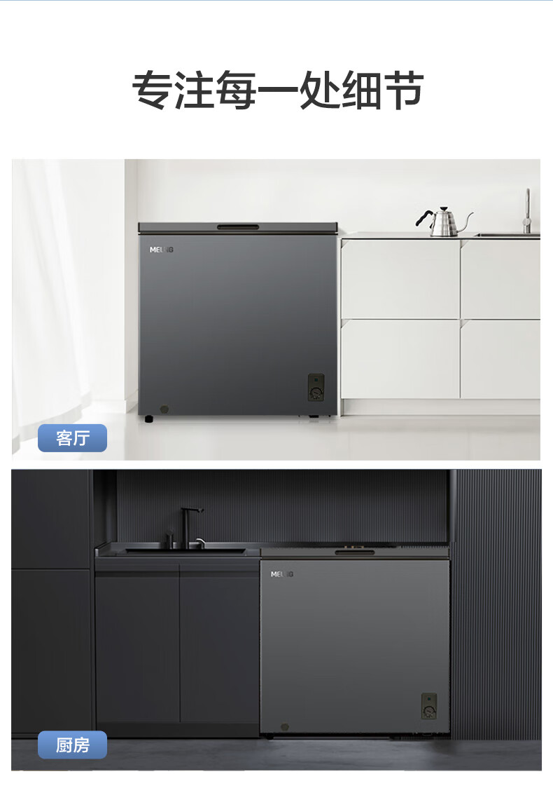 Meiling (MEILNG) freezer household small micro-frost freezer and deep-freeze dual-purpose commercial large-capacity frost-reducing horizontal small freezer refrigerator micro-frost golden single temperature 142 liters/full frozen or full 1L