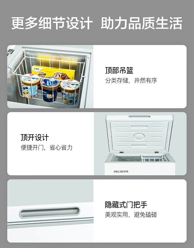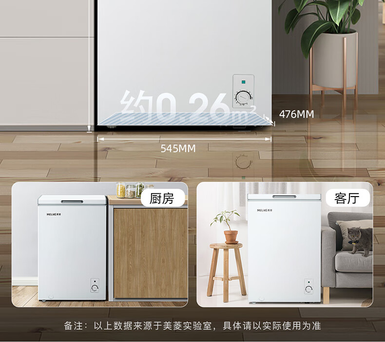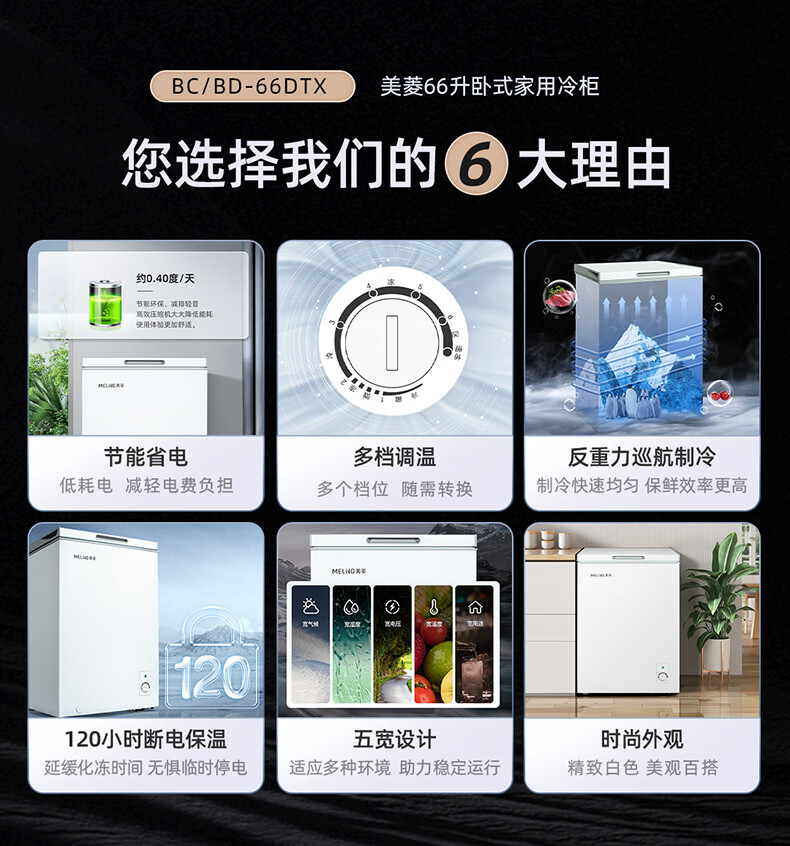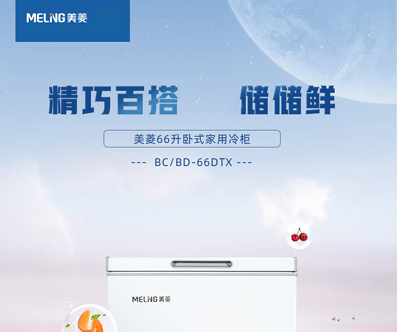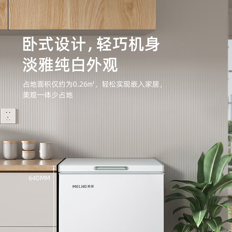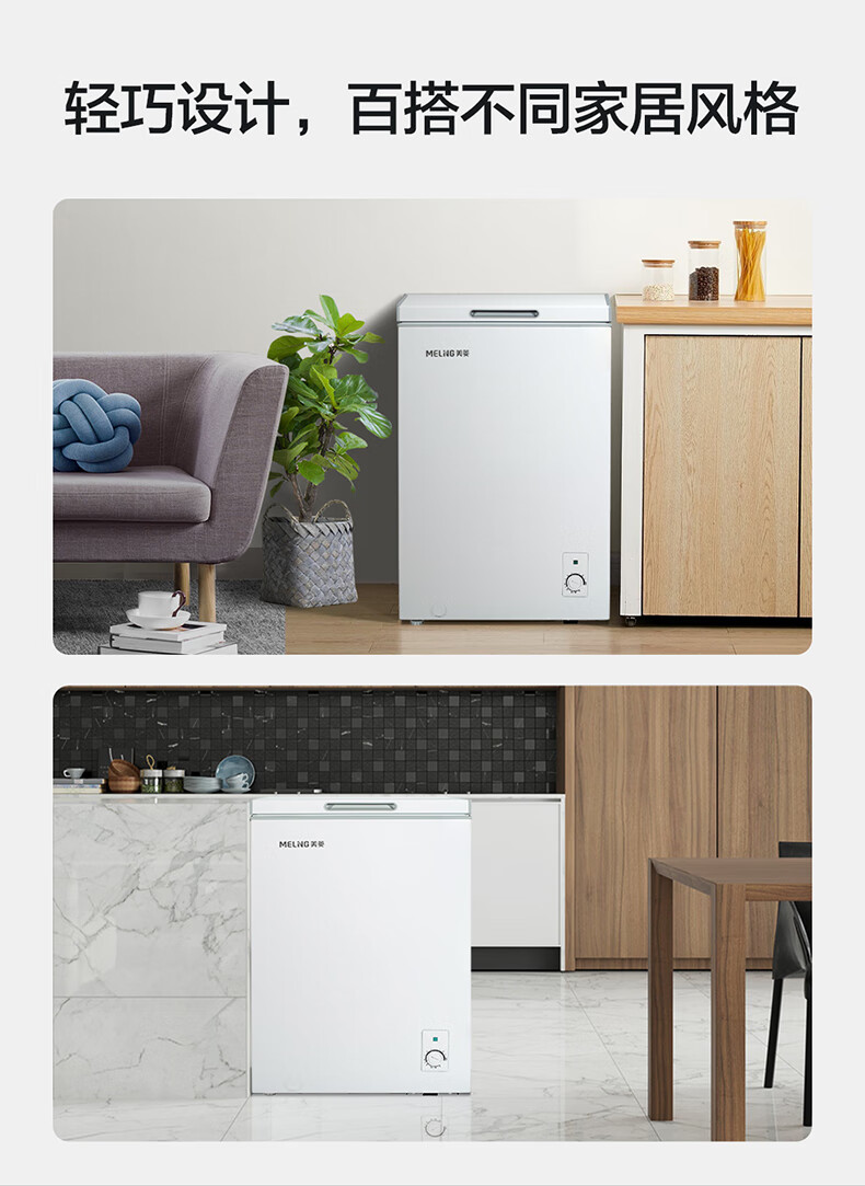 Meiling (MEILNG) 66L small freezer household small horizontal freezer energy-saving deep-freezing refrigeration and freezing dual-use mini small refrigerator stocking white 201 liter single temperature/full freezing or full refrigeration 1L
