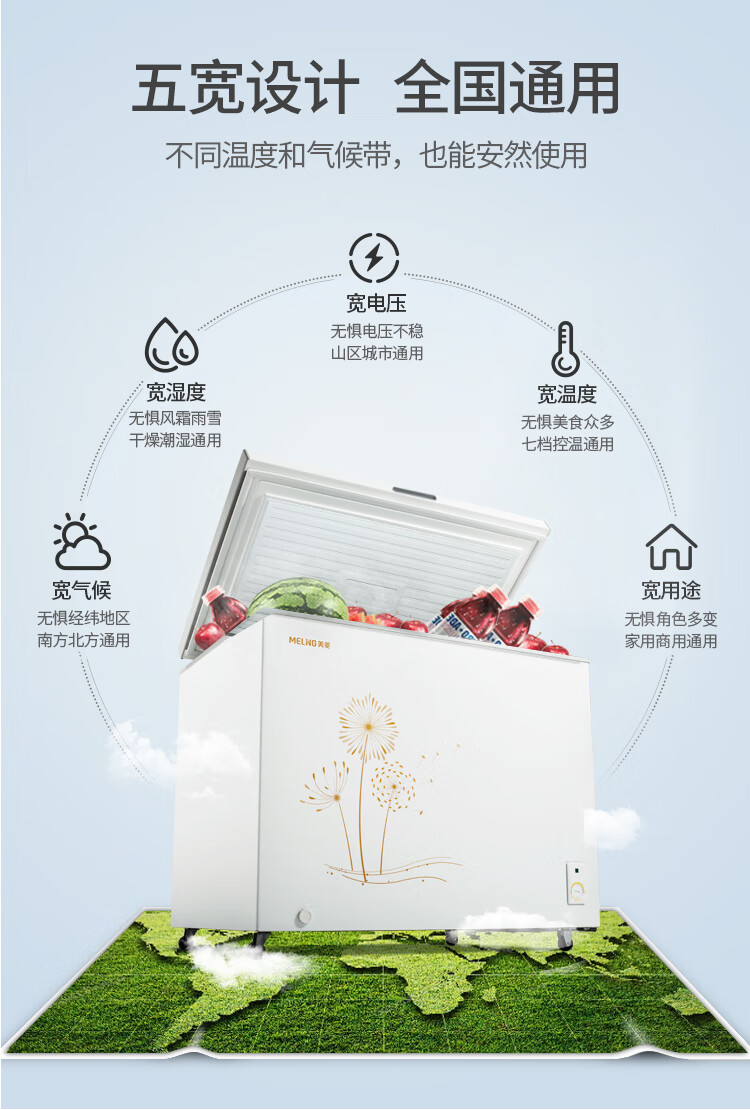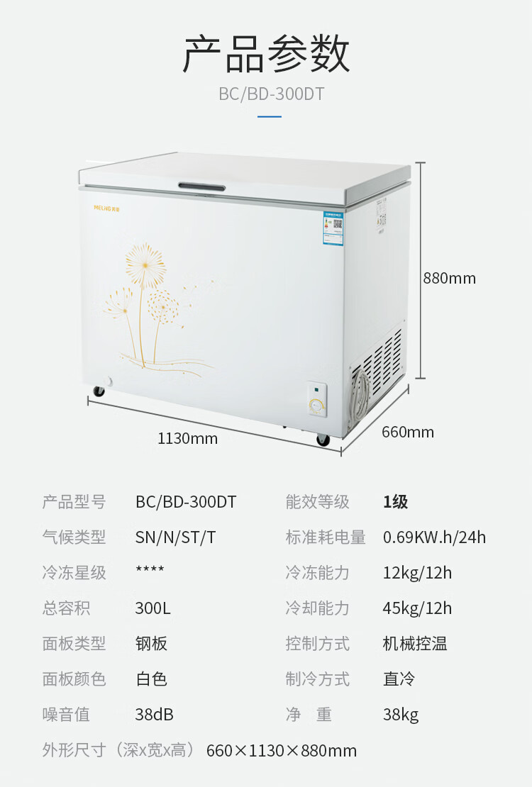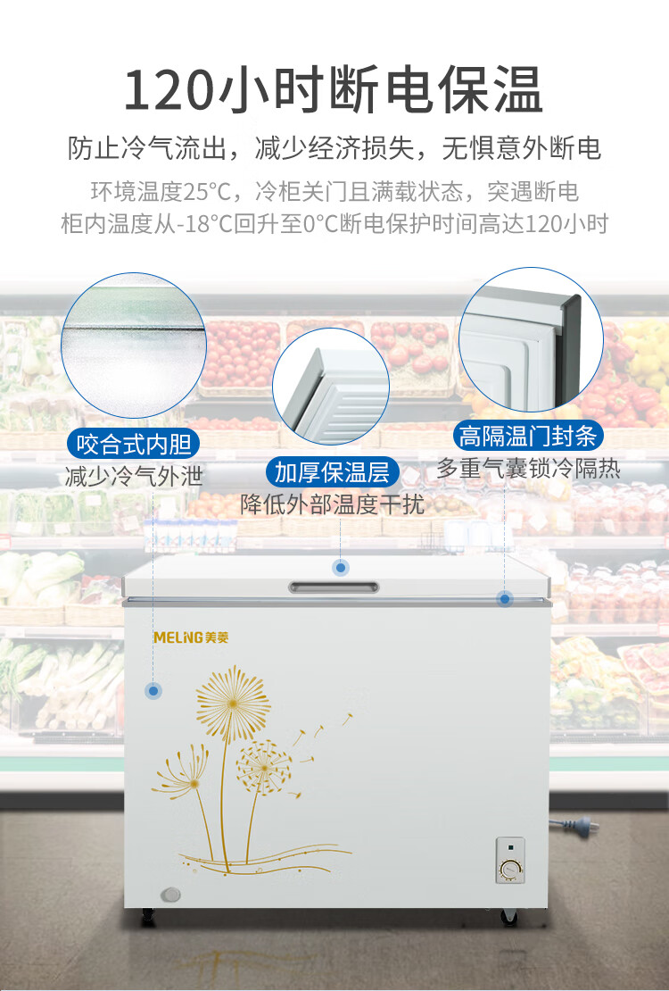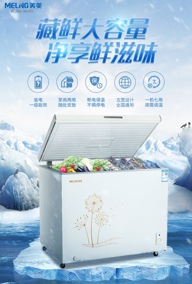 Meiling (MEILNG) large freezer 300L household commercial deep-freezer full freezer refrigeration and freezing dual-use large capacity horizontal freezer refrigerator 1L 220 liters/dual temperature top door/freezer