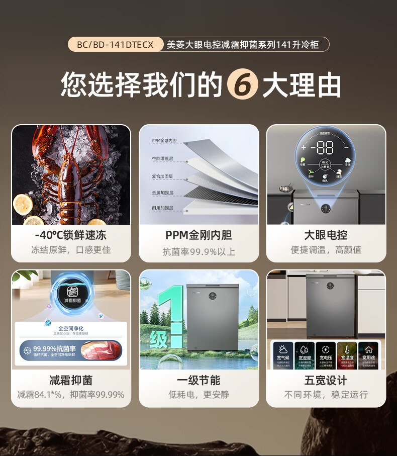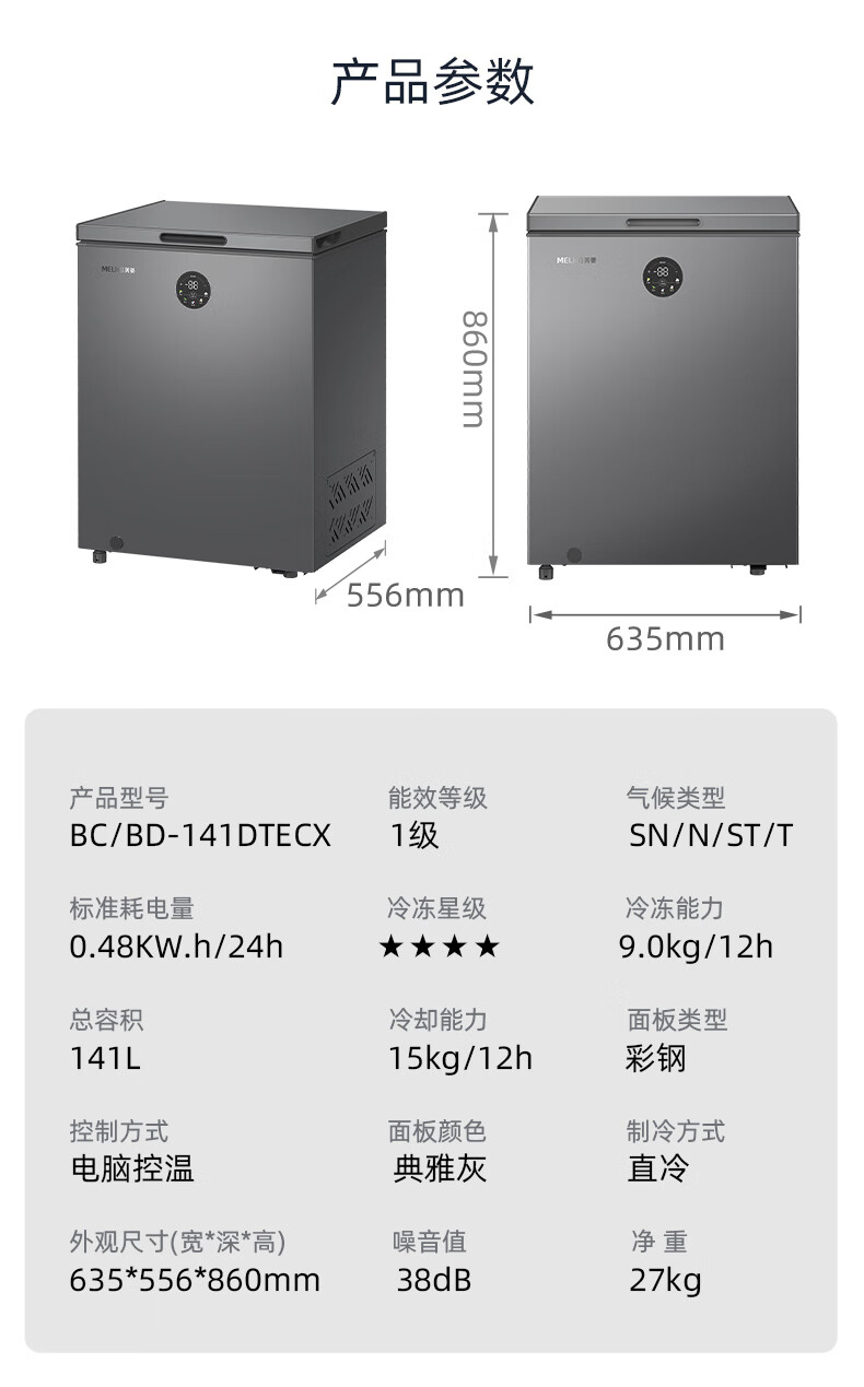 Meiling (MEILNG) BC/BD-141DTECX frost-reducing small freezer household small deep-freezing quick-frozen base commercial horizontal freezer 1L -40 electronic temperature control/201 liters/full freezing