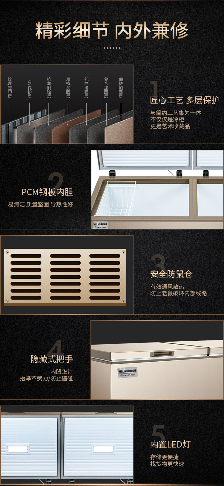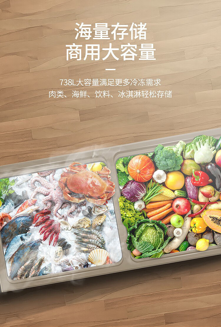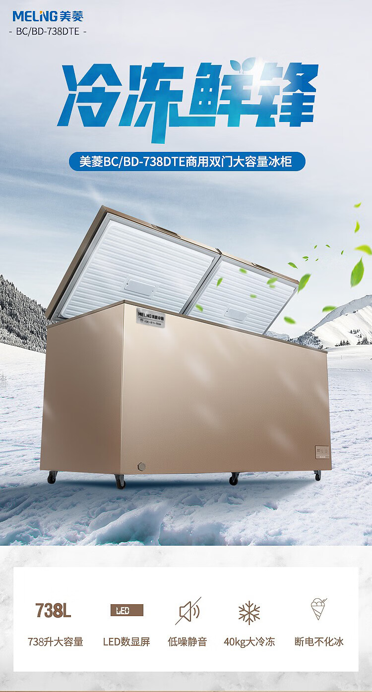 Meiling (MEILNG) - 40 degrees deep freezing quick freezing large capacity home and commercial horizontal freezer bottom strong freezing refrigeration quick freezing freezer 1L 738 liters -40 degrees ultra low temperature electronically controlled steel bladder