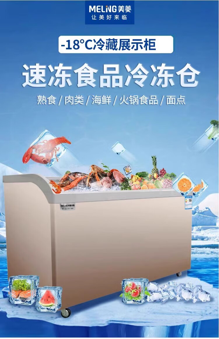 Meiling (MEILNG) commercial display cabinet refrigerated fresh-keeping cabinet refrigerated deep-freezer refrigerator refrigerated fruit scoop ice cream display cabinet 358 liters flat model 1.2 meters 1L