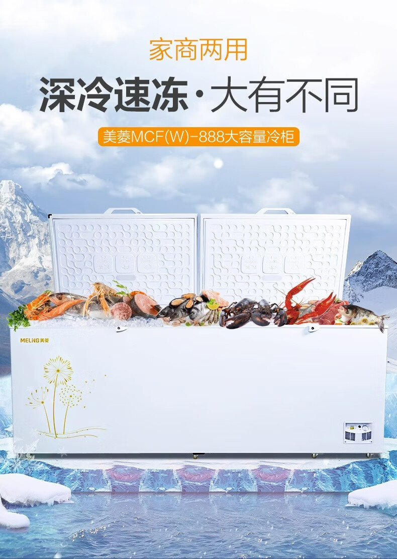 Meiling (MEILNG) first-class commercial large-capacity horizontal freezer refrigerated deep-freezing quick-frozen bottom-frozen single-temperature freezer for shopping malls and supermarkets 1501 liters commercial first-class energy efficiency 3 meters long 1L