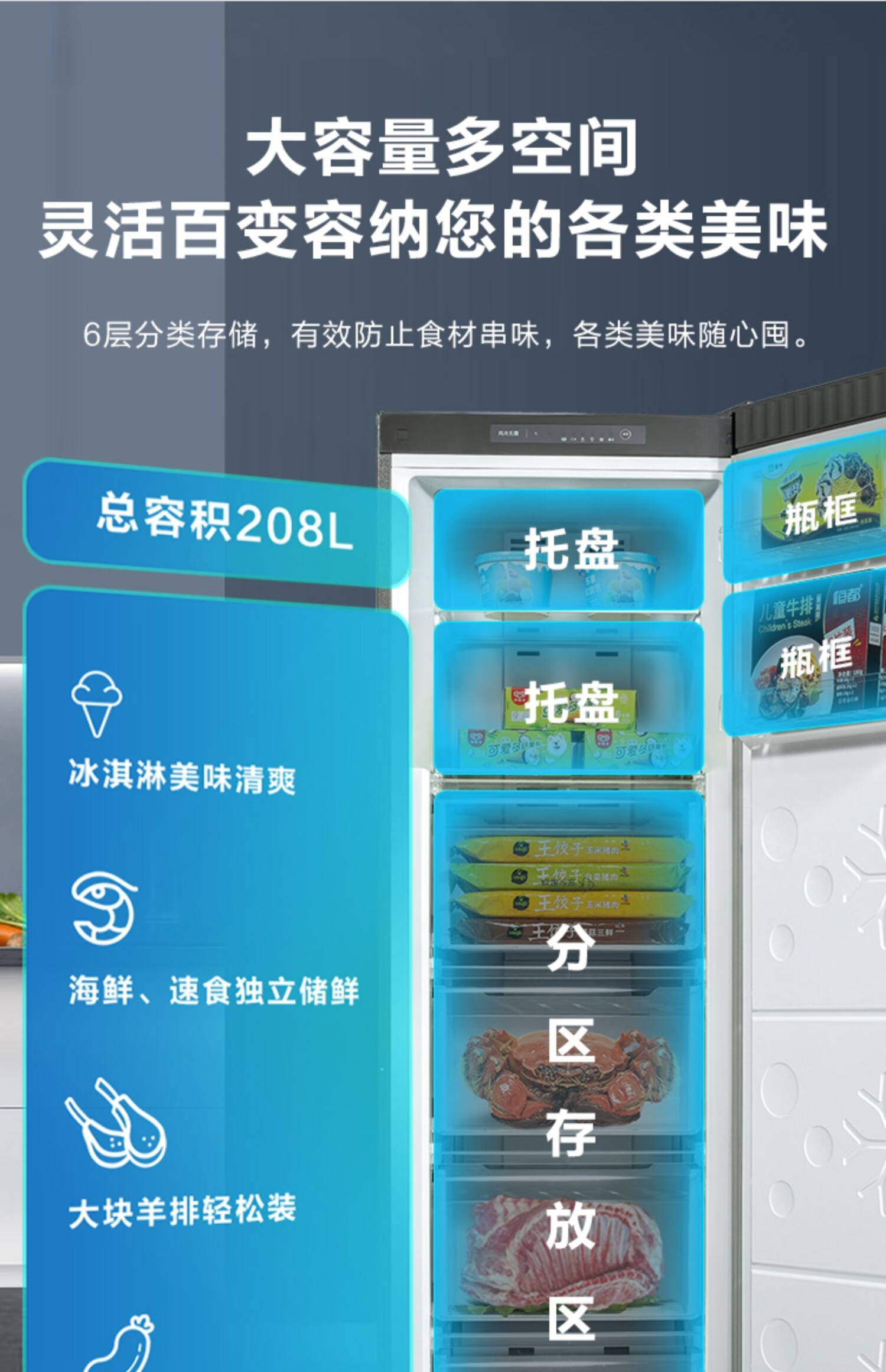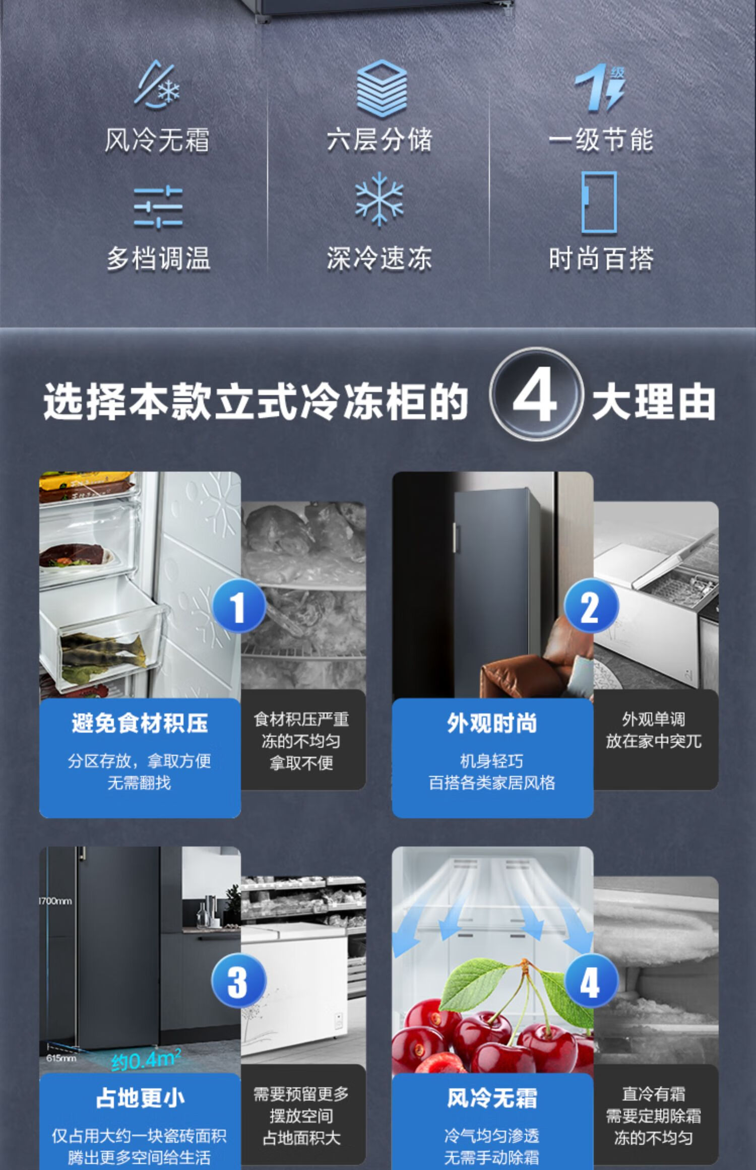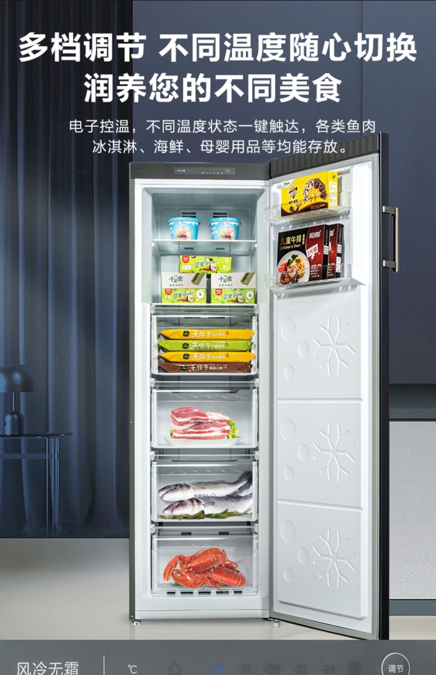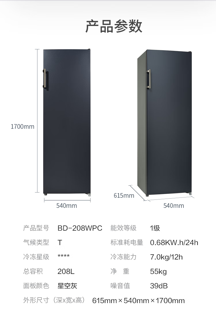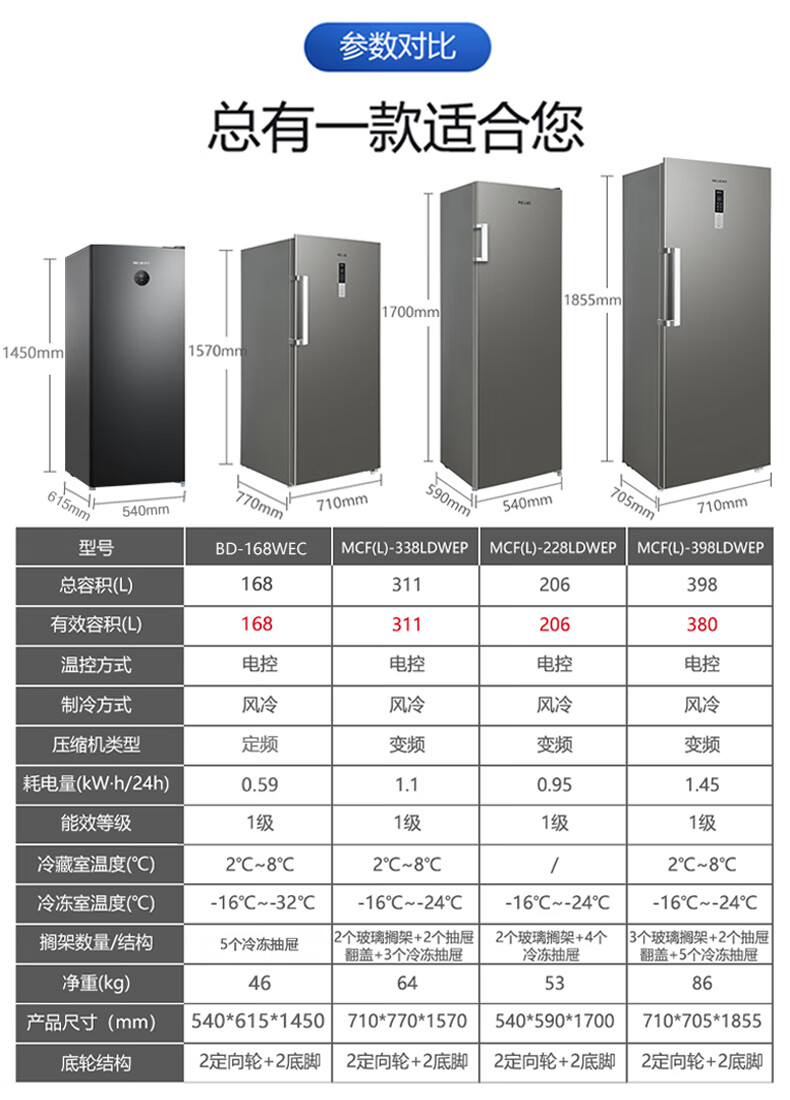 Meiling (MEILNG) vertical freezer frequency conversion frost-free household drawer-type energy-saving small deep-freezer refrigeration freezer refrigerator side door 380 liters one-stage frequency conversion freezing and freezing conversion pressure 1L