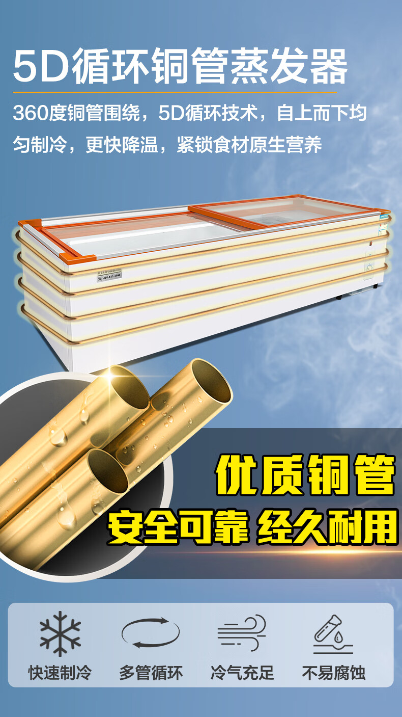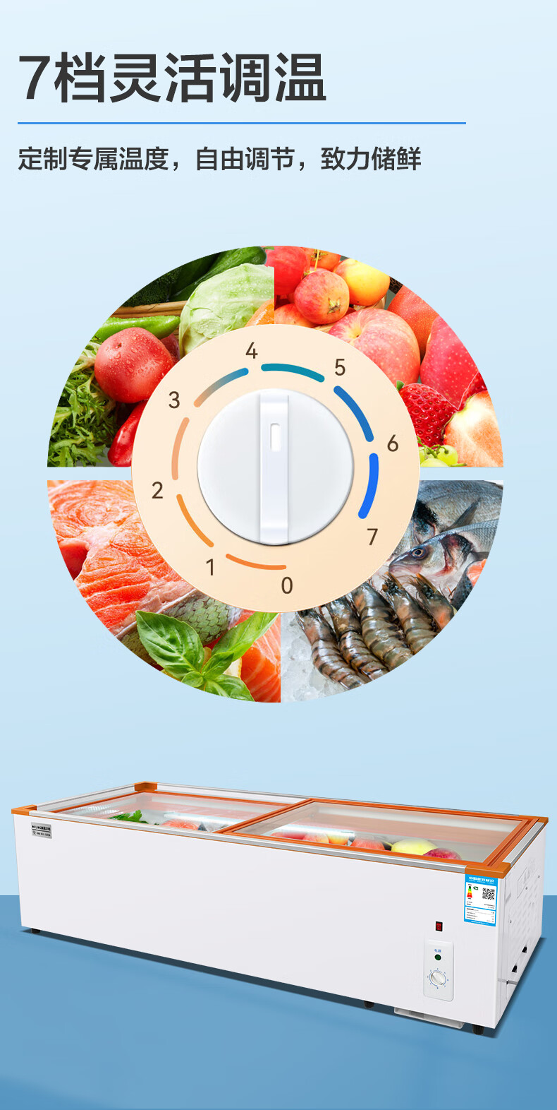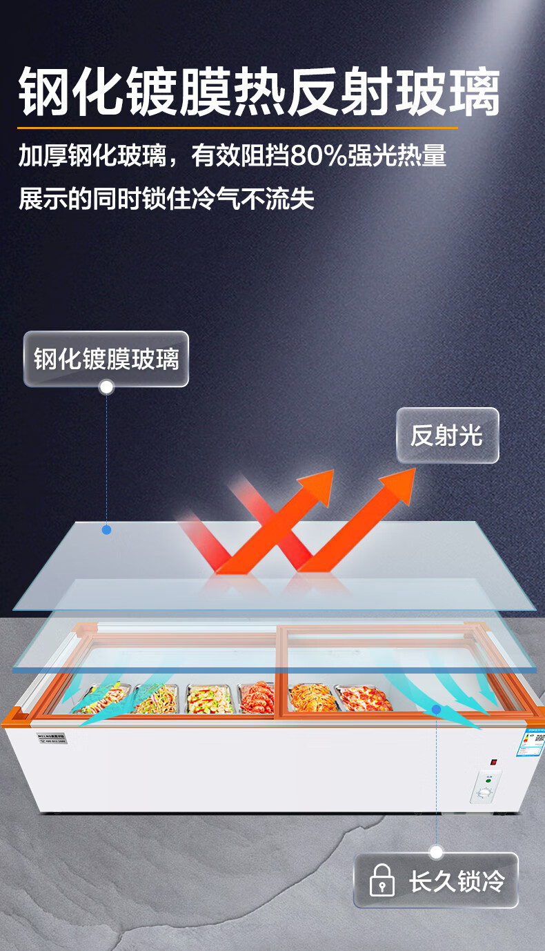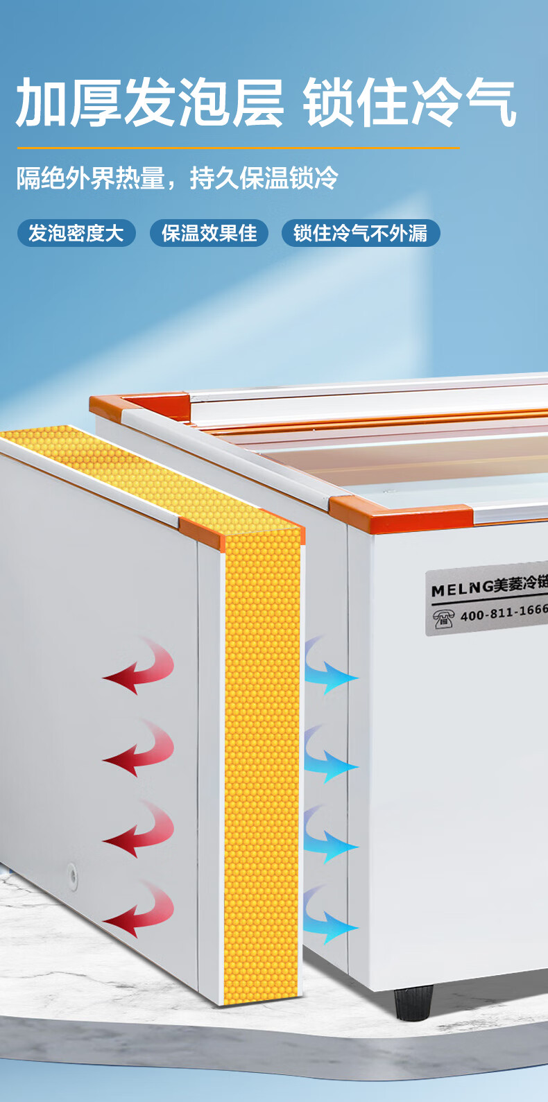 Meiling (MEILNG) commercial horizontal ice cream freezer flat glass door cryogenic display cabinet supermarket convenience store refrigerated frozen beverage cabinet 1.8 meters long fully refrigerated with lights can be micro-frozen 1L