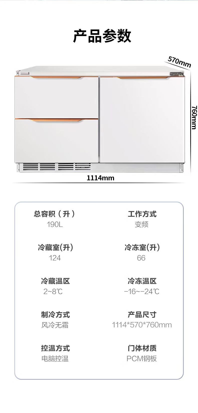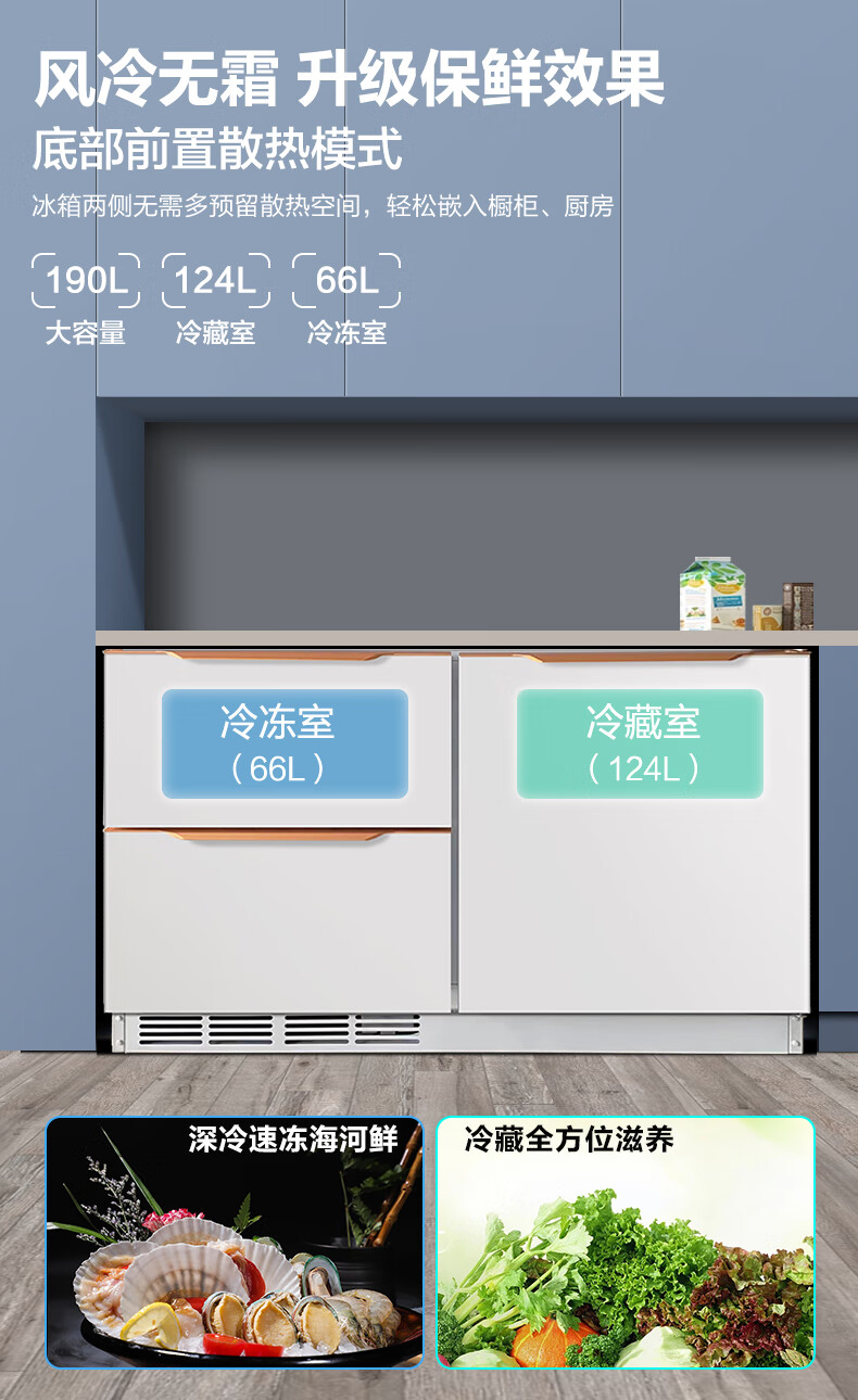 Meiling (MEILNG) air-cooled frost-free bottom heat dissipation embedded deep-cooling quick-freezing horizontal short refrigerator household large capacity variable frequency silent air-cooled fixed frequency heat dissipation on both sides black 1L