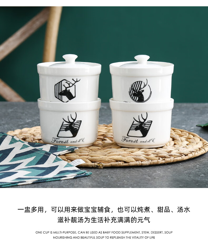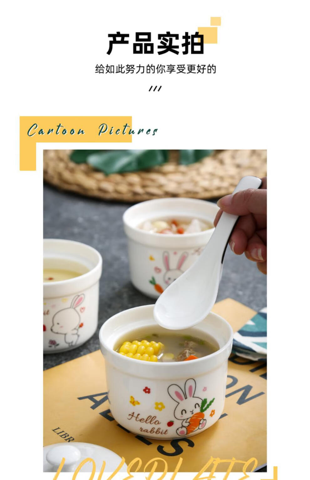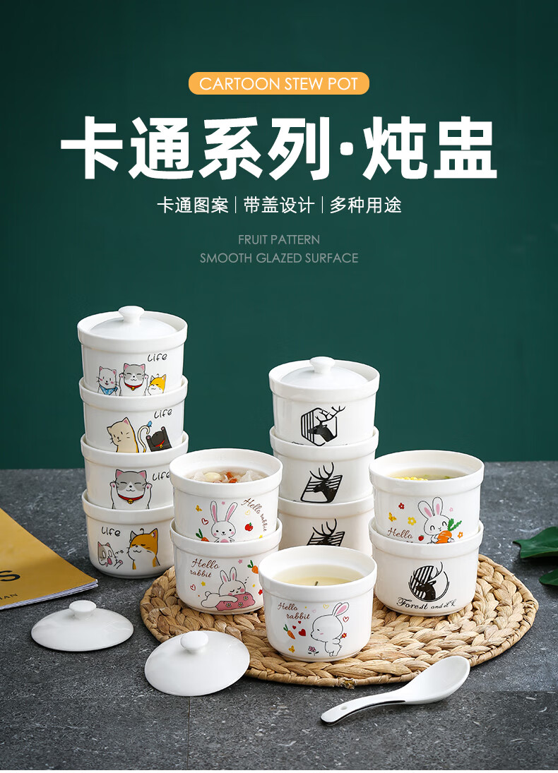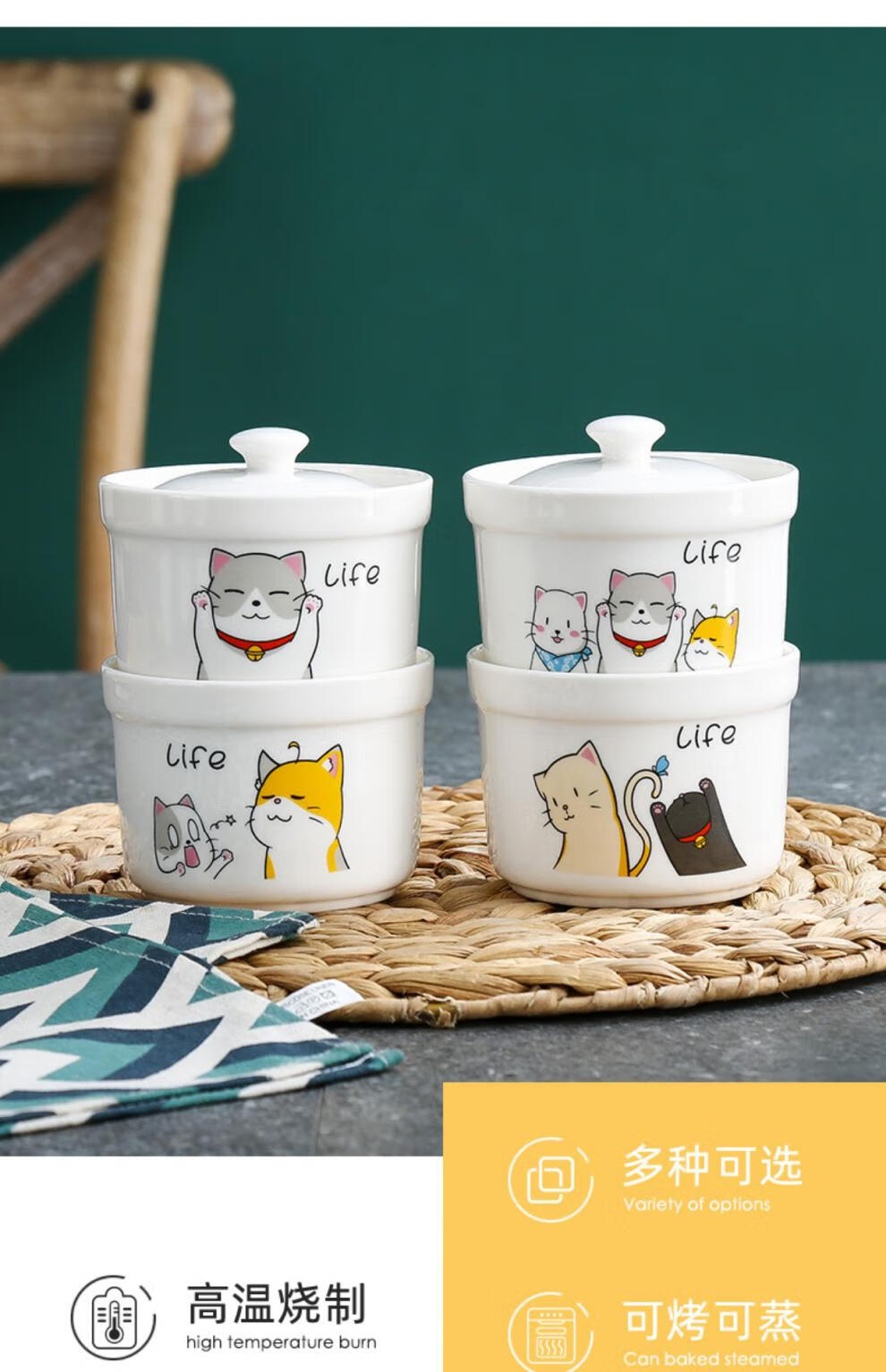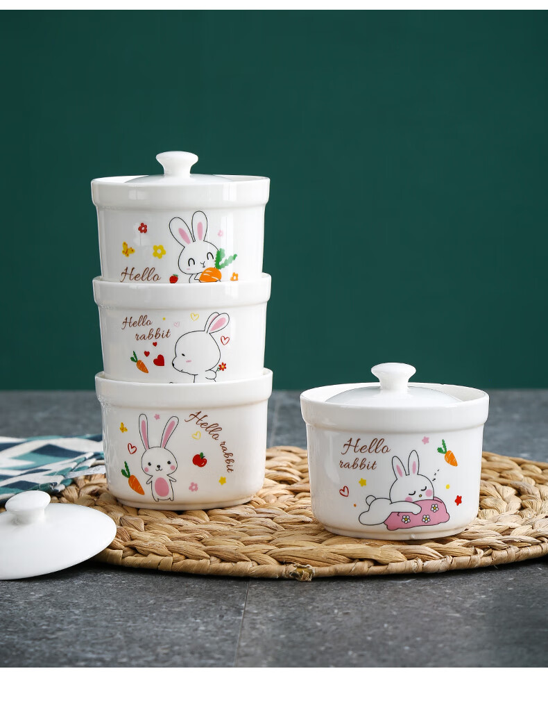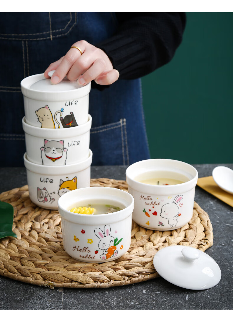 Aostar Soup Cup Set of Four Ceramic Stew Cups with Lid for Stewing Bird’s Nest Tonic and One-Server Household Liner Stew New Rabbit Series (4 Stew Cups with 4 Lids)