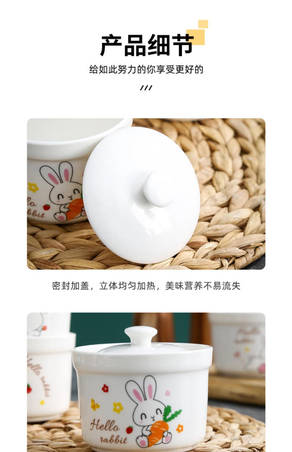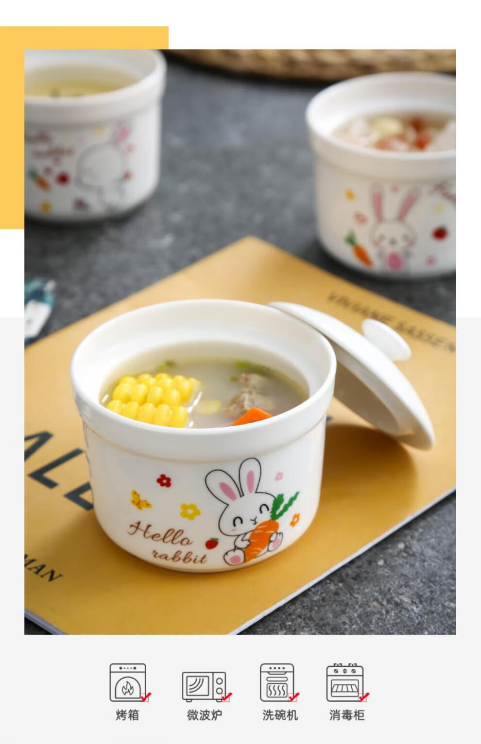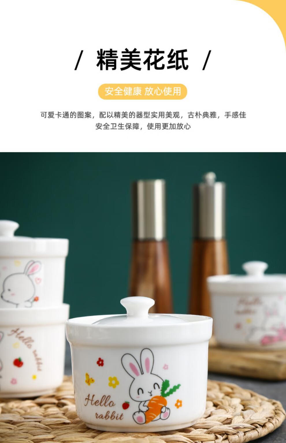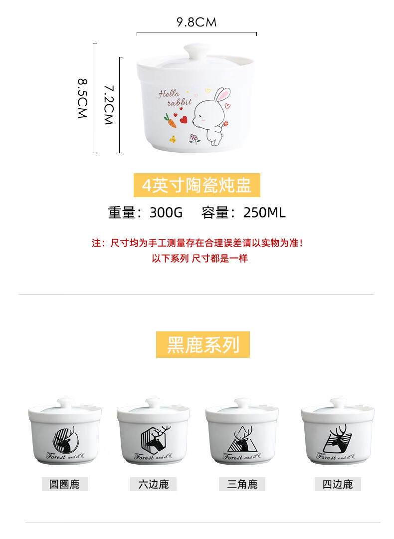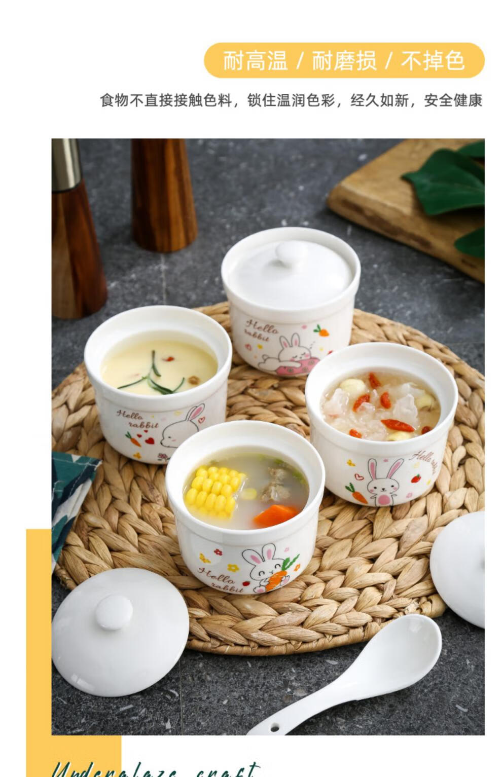 Aostar Soup Cup Set of Four Ceramic Stew Cups with Lid for Stewing Bird’s Nest Tonic and One-Server Household Liner Stew New Rabbit Series (4 Stew Cups with 4 Lids)