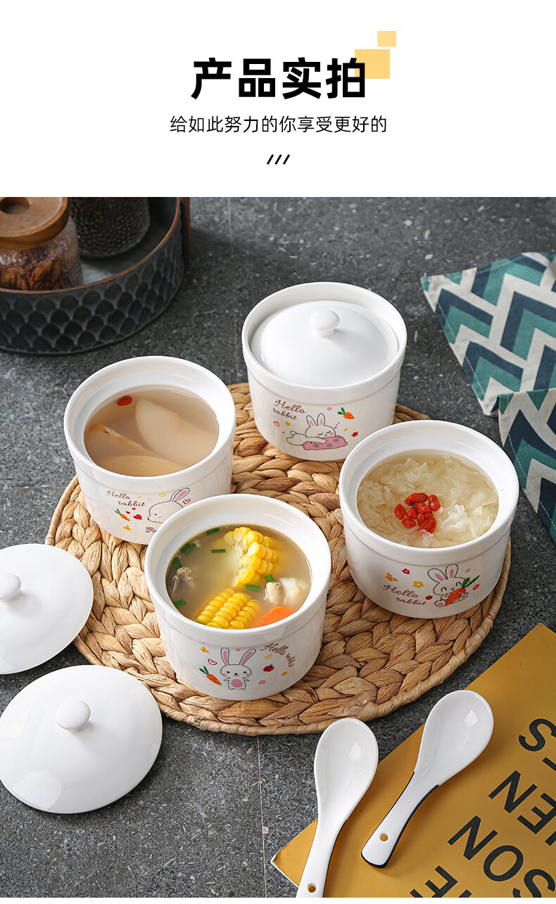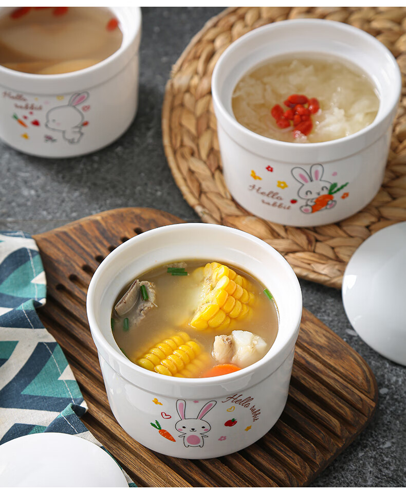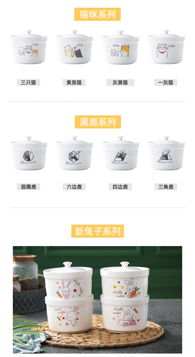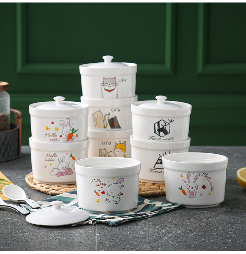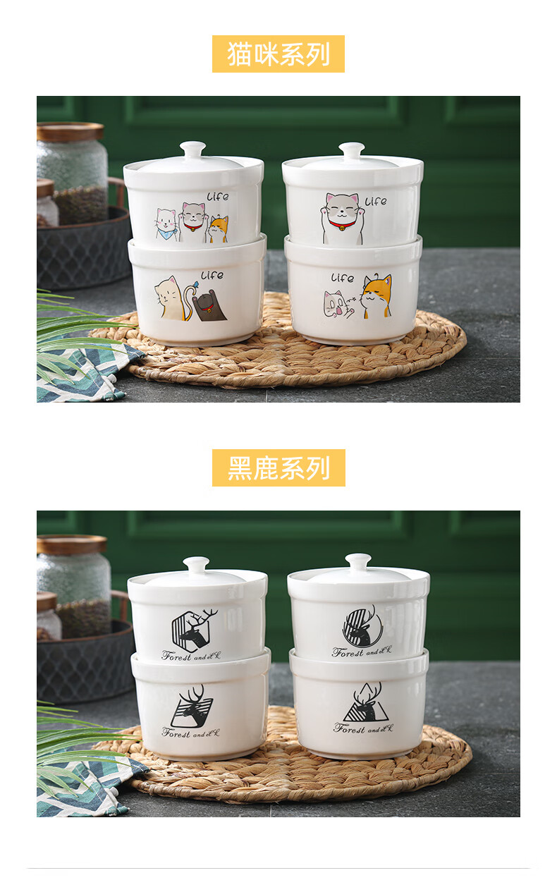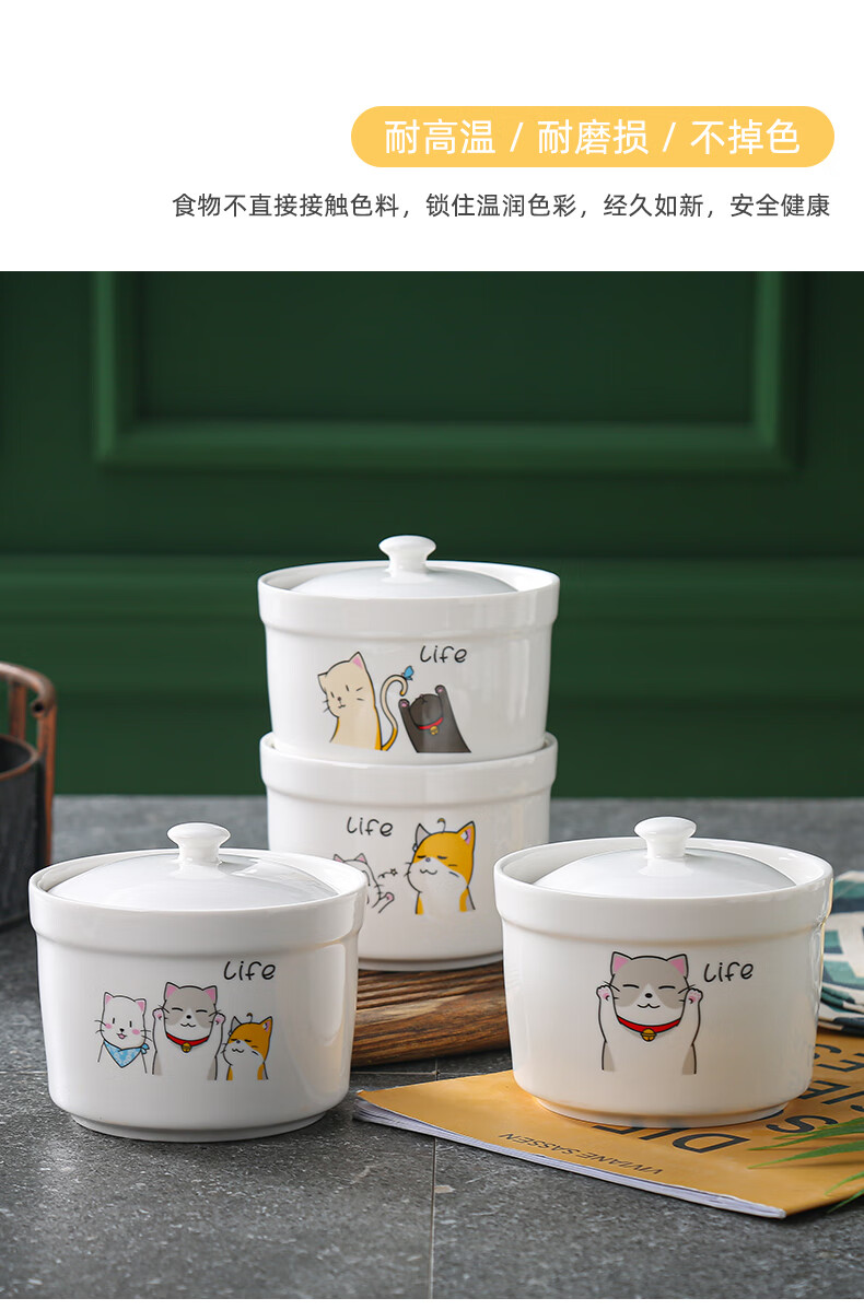 Aostar Soup Cup Set of Four 5-inch Stew Cups with Lid Ceramic Steaming Cup Soup Cup Stew Pot Waterproof Cup 550ml Bird's Nest Bowl Cat Series (4 Stew Cups 4 Lids) 5 inches