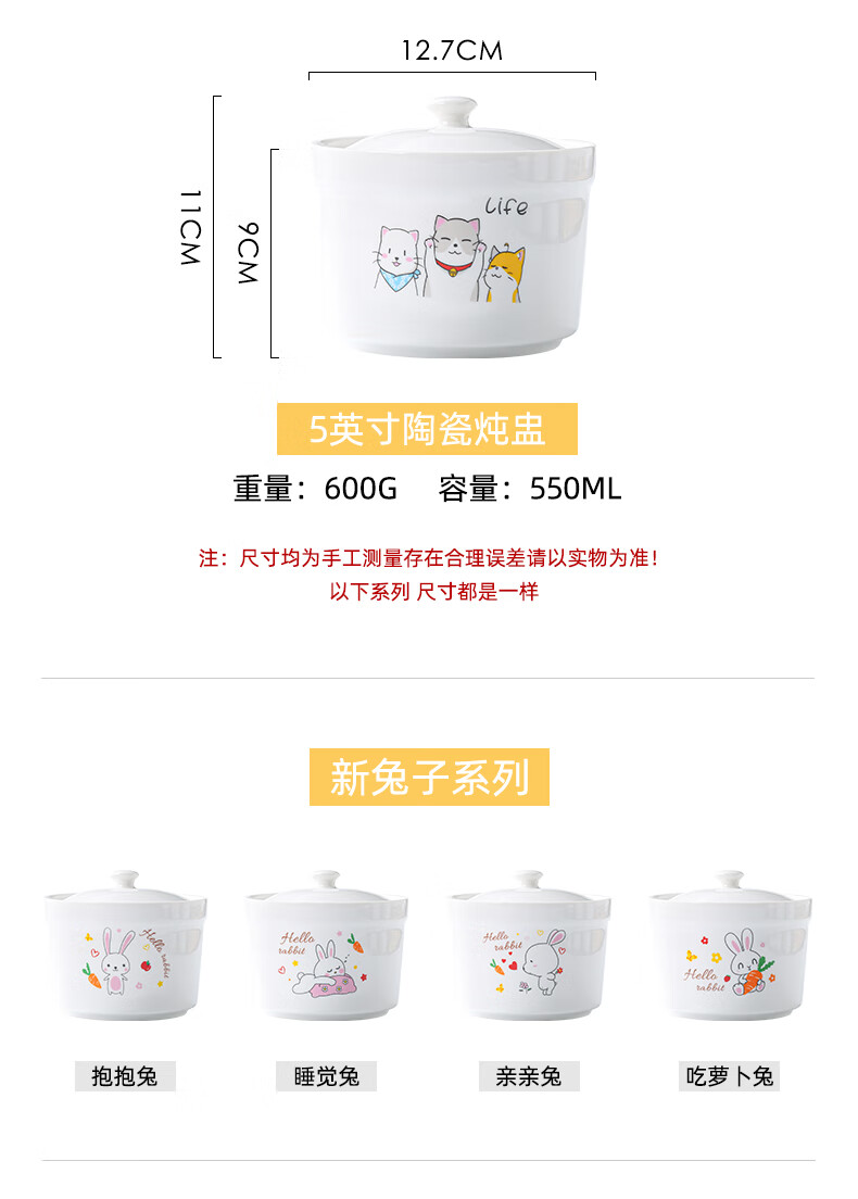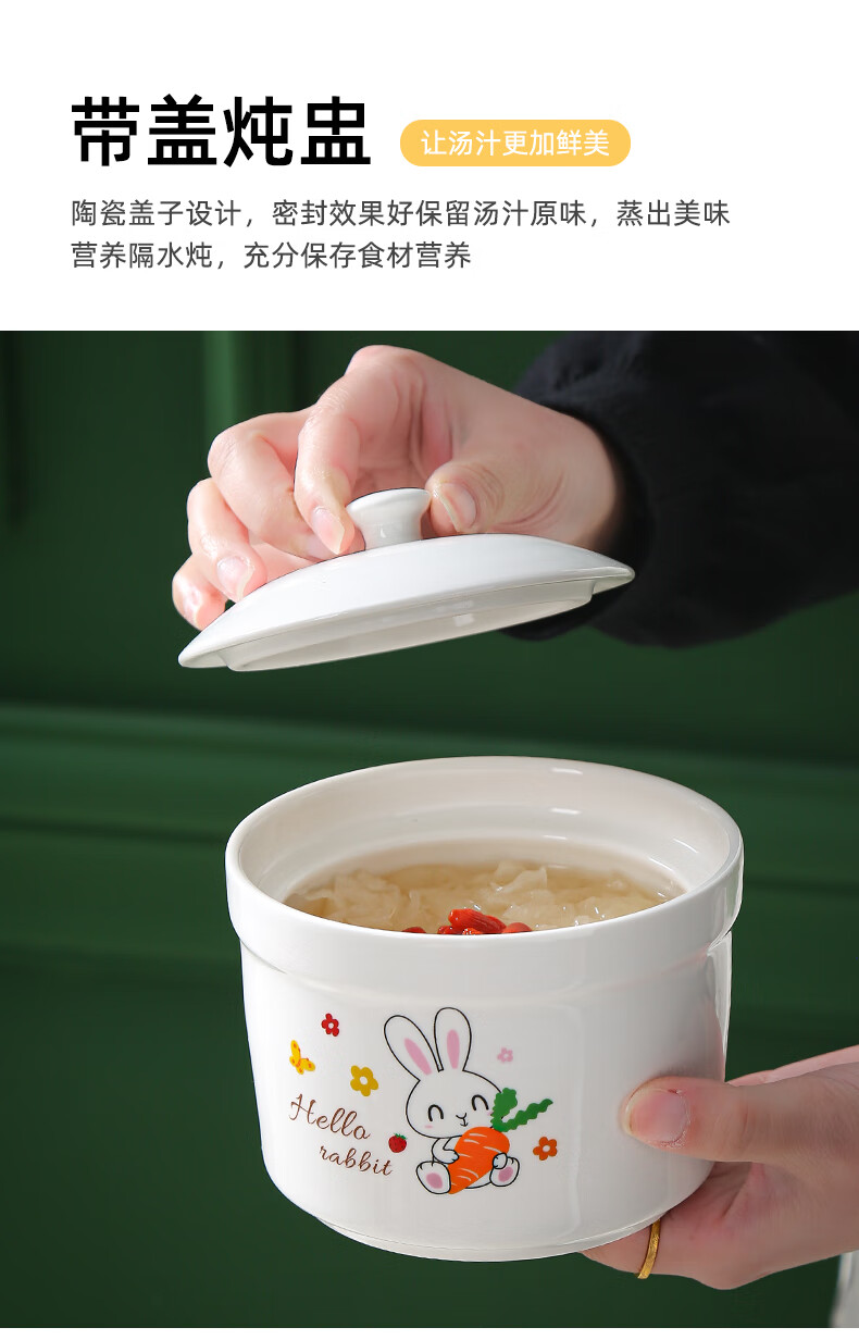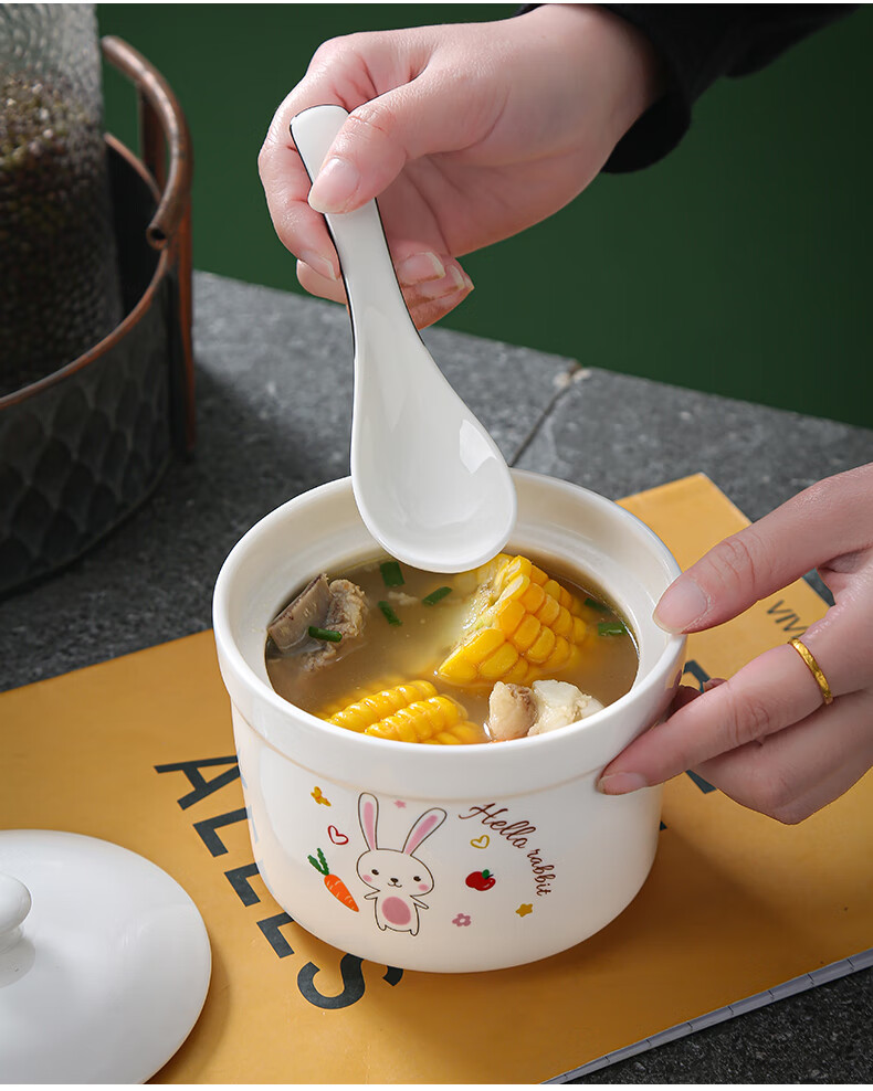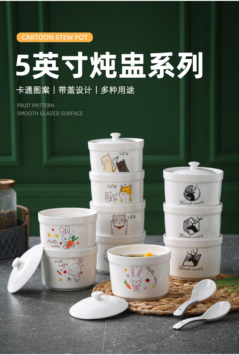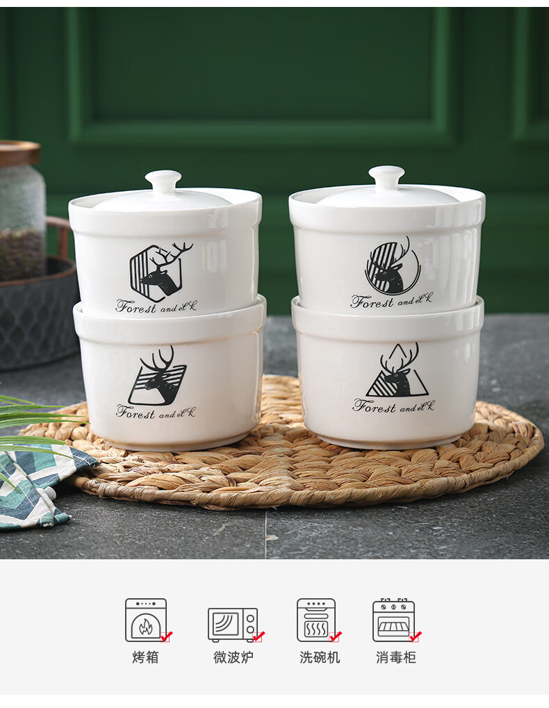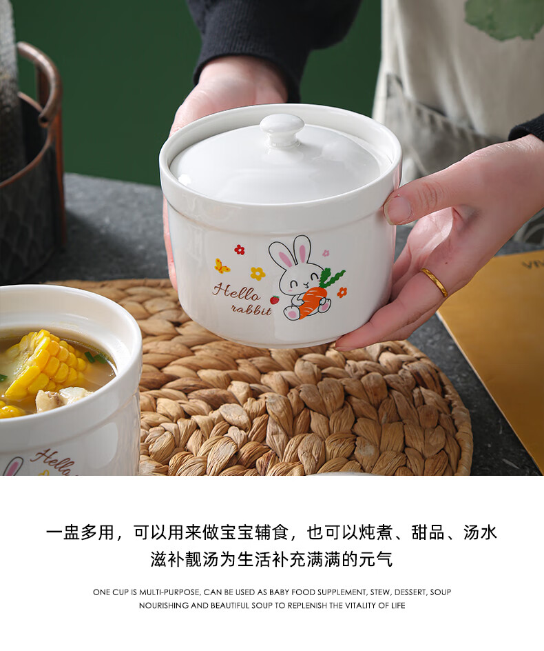 Aostar Soup Cup Set of Four 5-inch Stew Cups with Lid Ceramic Steaming Cup Soup Cup Stew Pot Waterproof Cup 550ml Bird's Nest Bowl Cat Series (4 Stew Cups 4 Lids) 5 inches