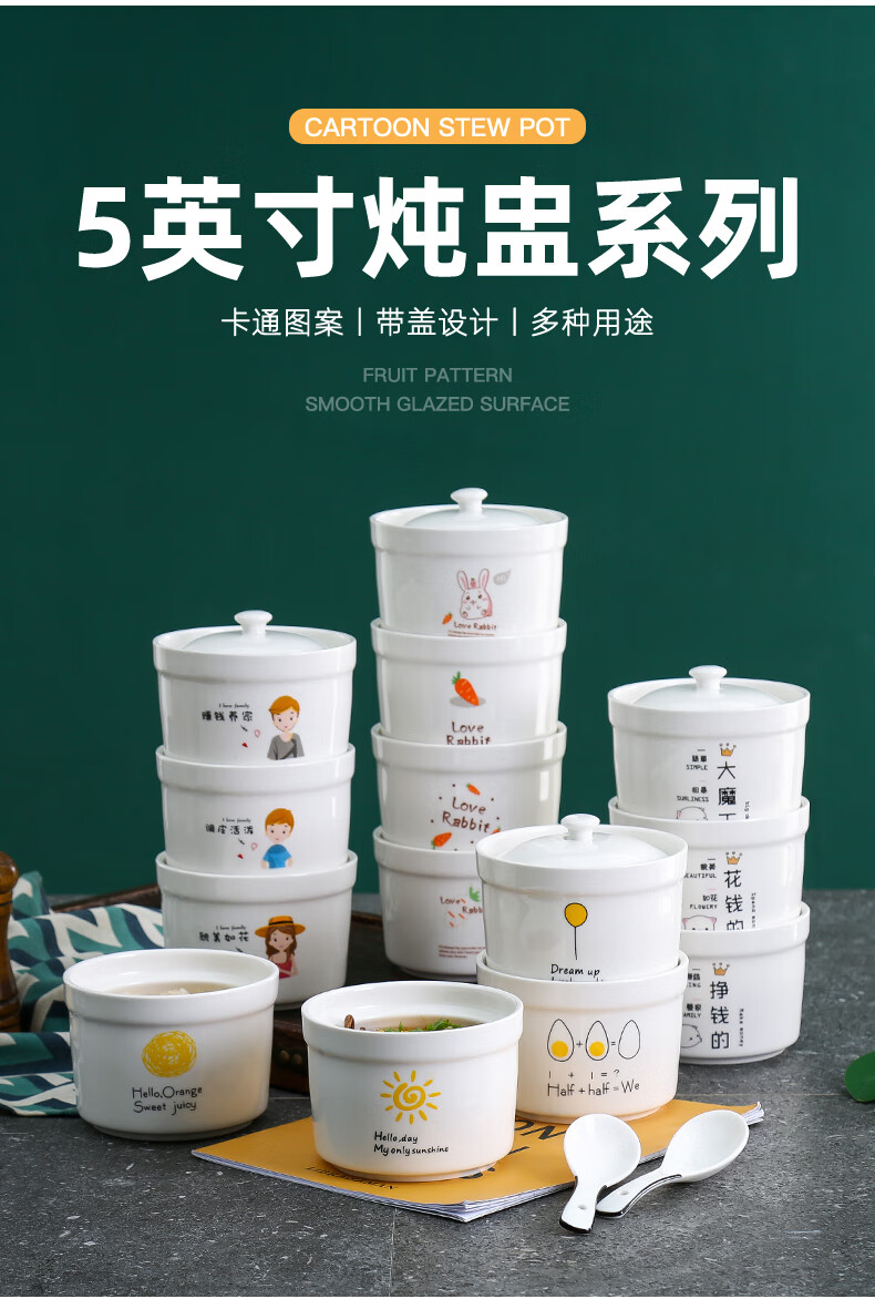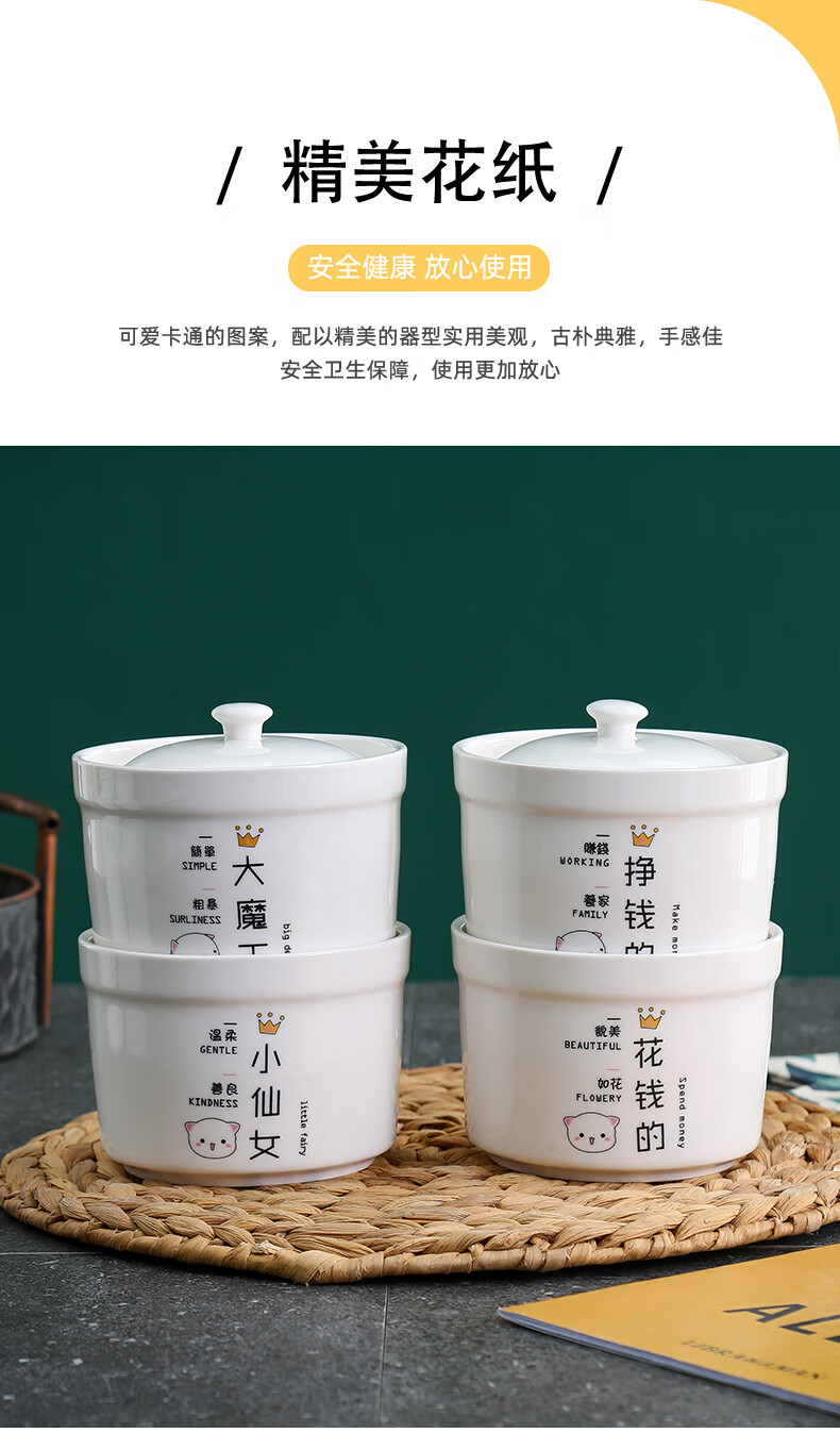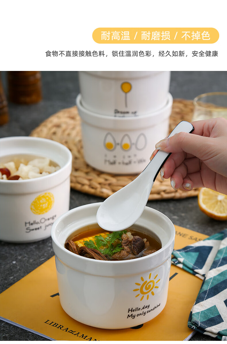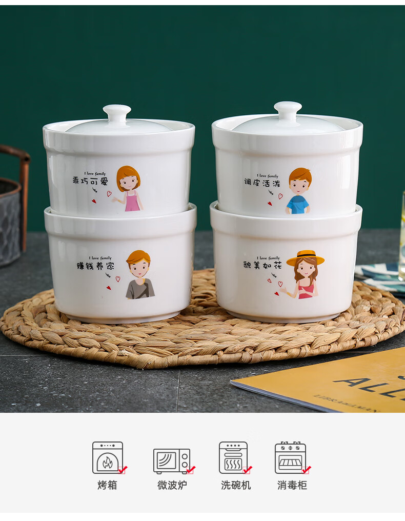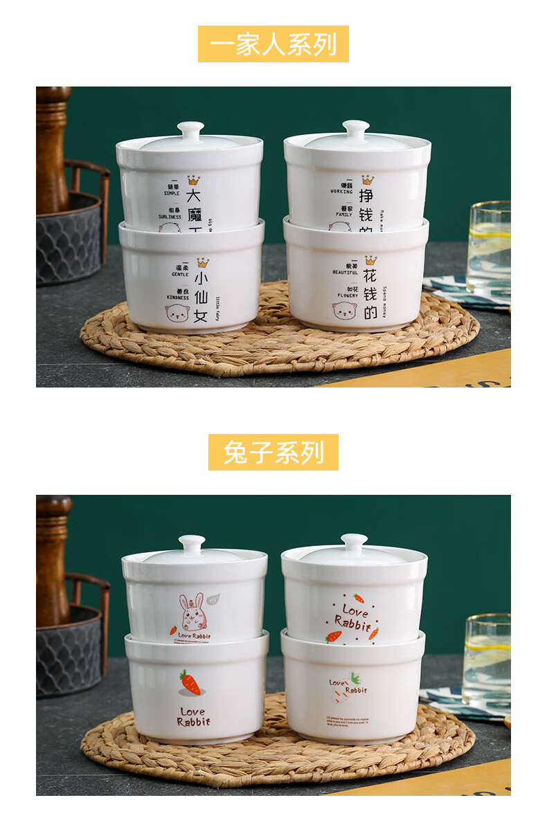 Aostar Soup Cup Set of Four 5-inch Ceramic Stew Cups with Lid Large Waterproof Stew Pot Soup Cup Dessert Stew Pot with Liner Rabbit Series (4 Stew Cups and 4 Lids) 5 inches