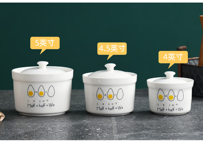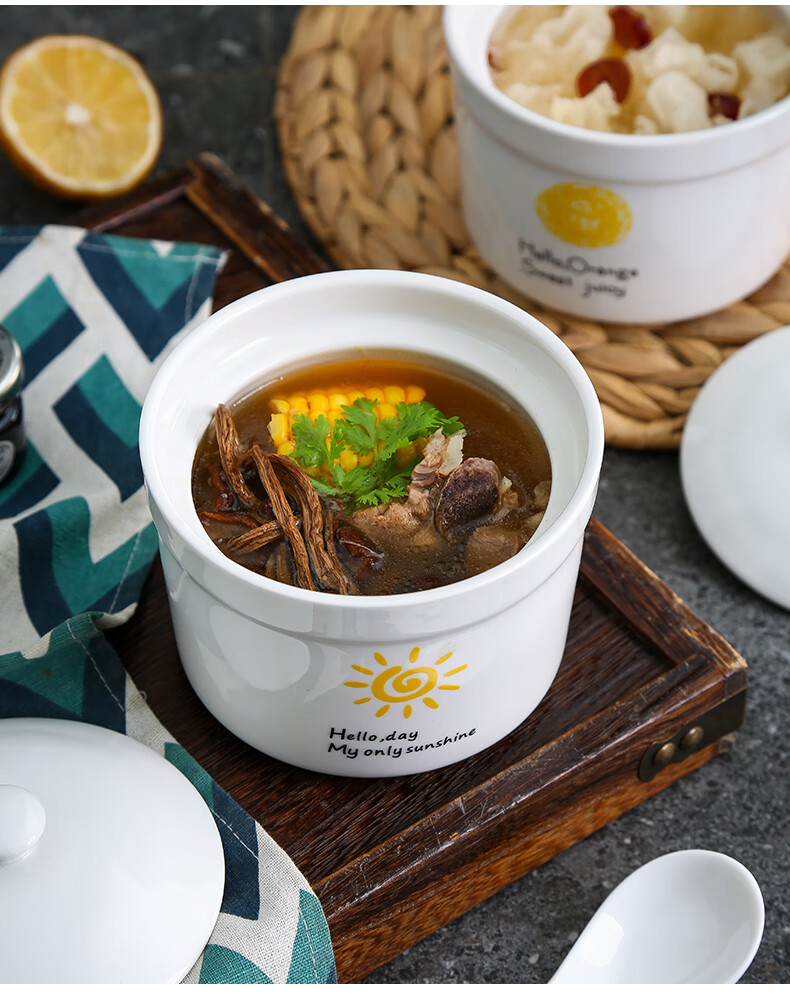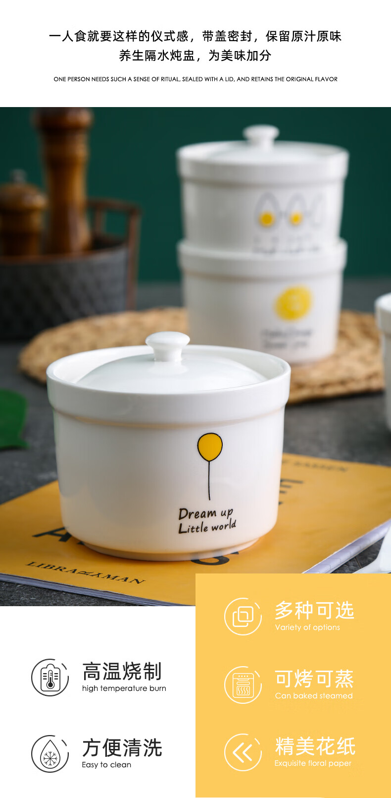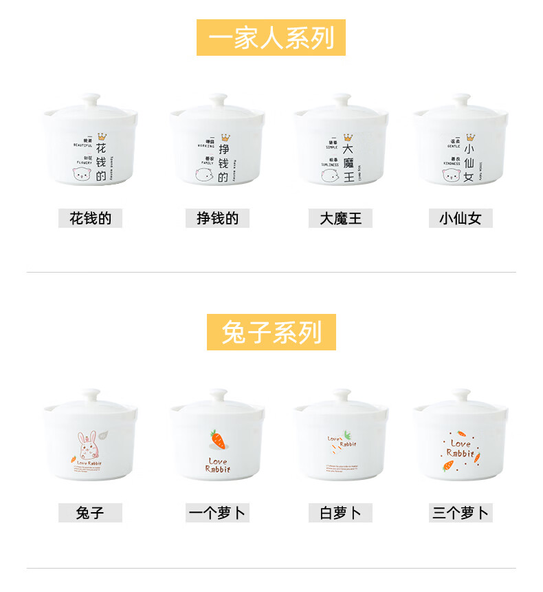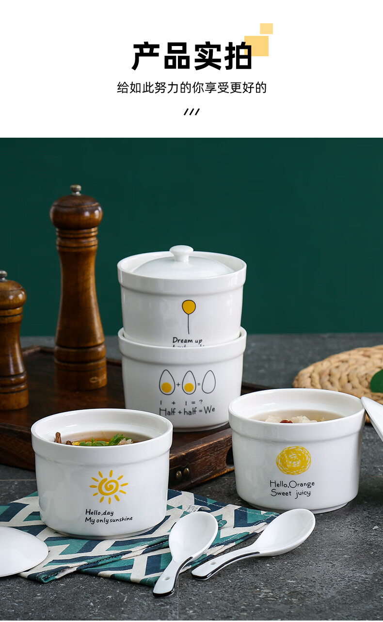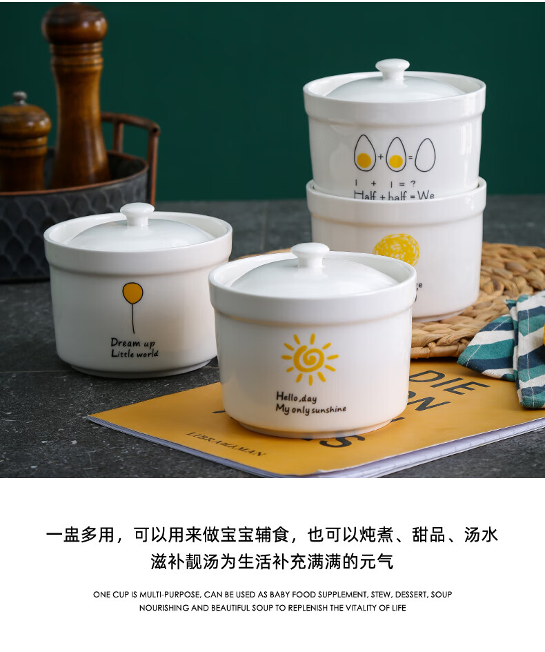 Aostar Soup Cup Set of Four 5-inch Ceramic Stew Cups with Lid Large Waterproof Stew Pot Soup Cup Dessert Stew Pot with Liner Rabbit Series (4 Stew Cups and 4 Lids) 5 inches