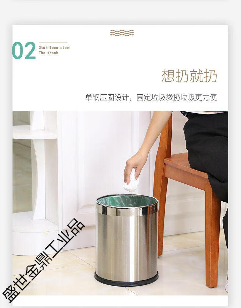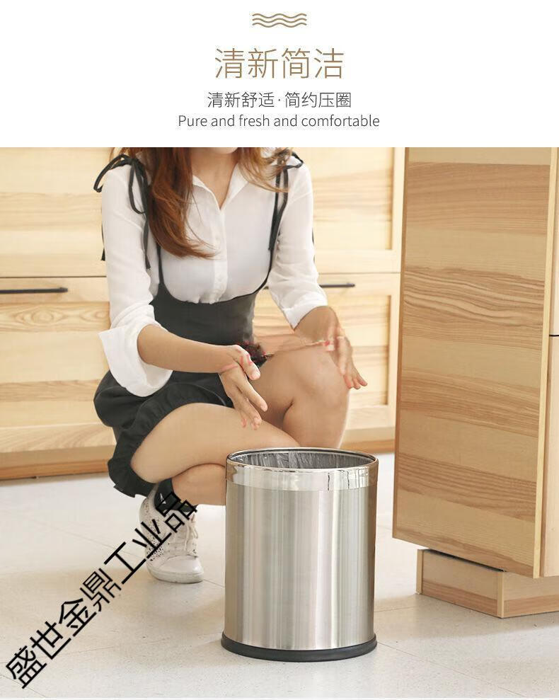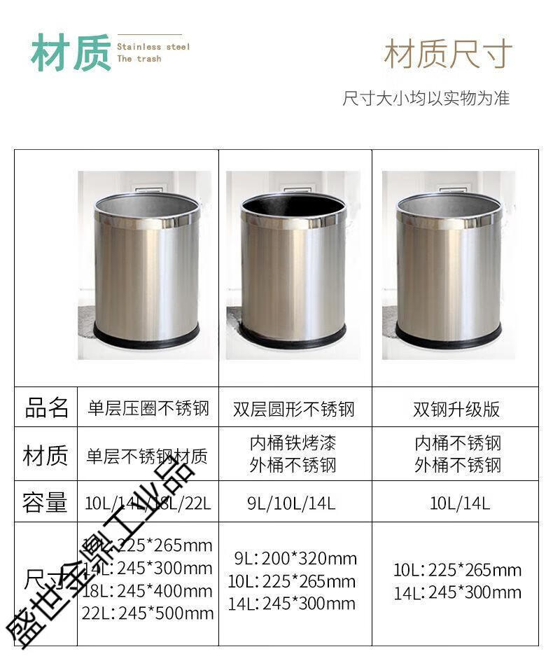 Stainless steel trash can large double layer creative office bathroom hotel living room bedroom kitchen without cover double layer iron paint