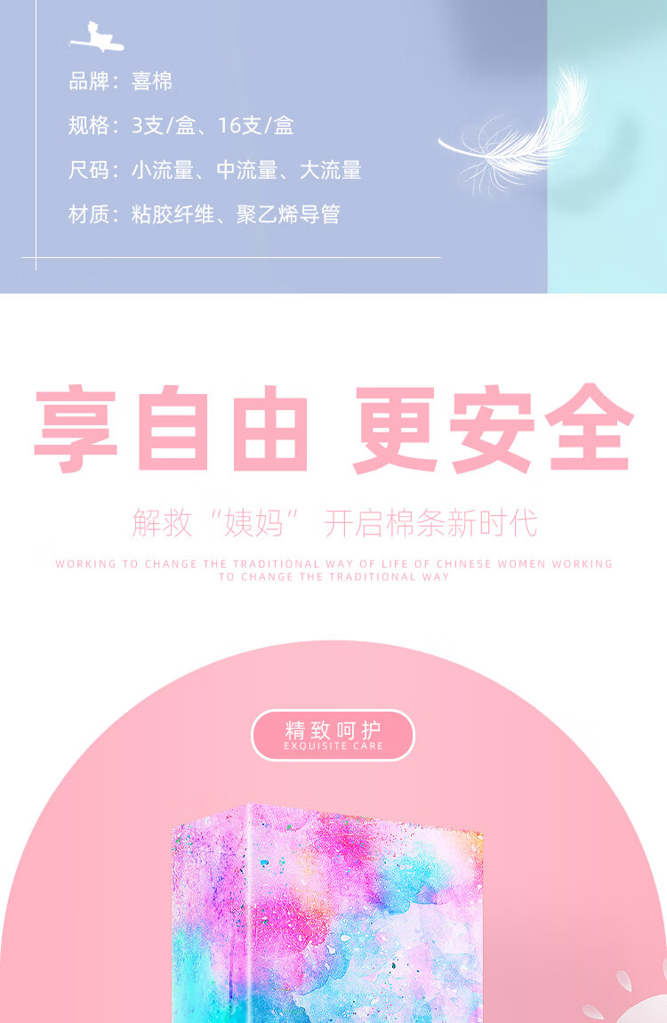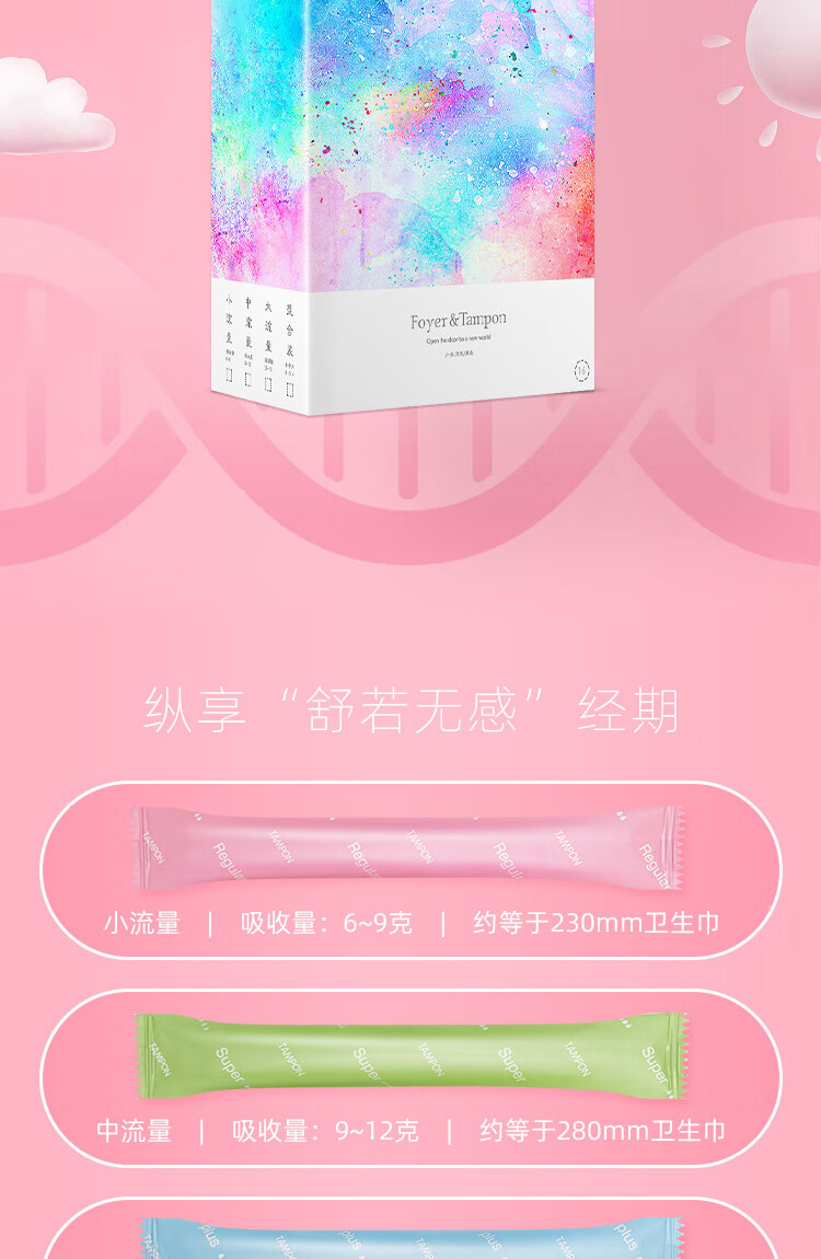 HiMian tampons, catheter-type menstrual tampons, built-in invisible aunt napkins, sanitary napkins, swimming anti-side leakage, 16 pieces, medium flow