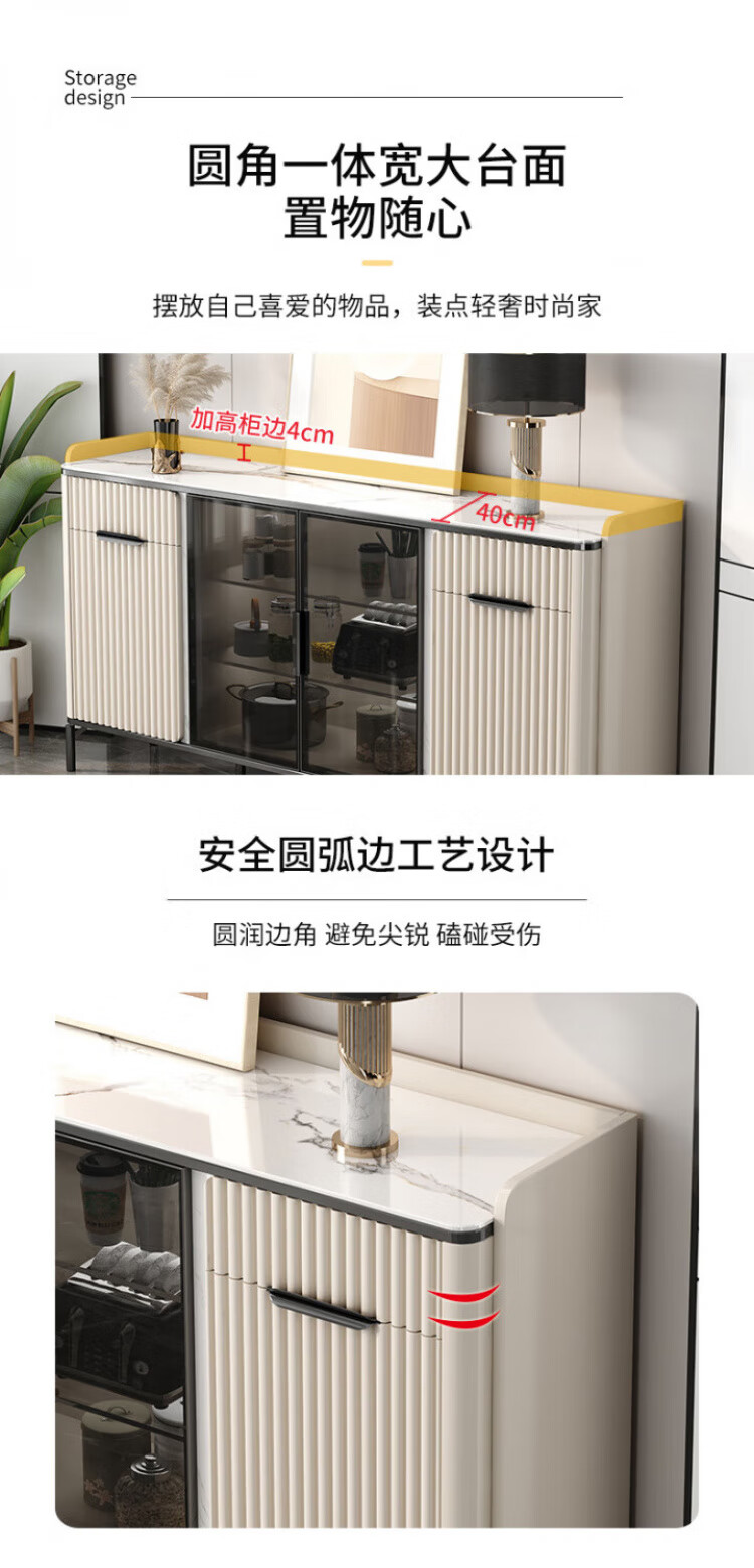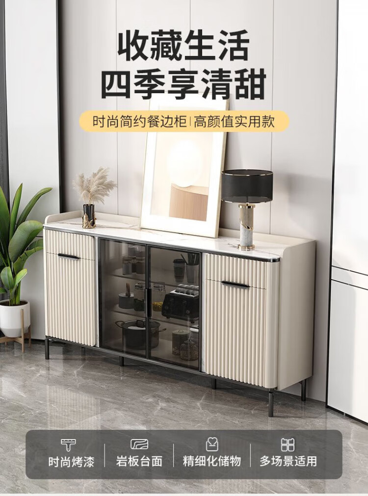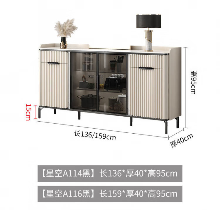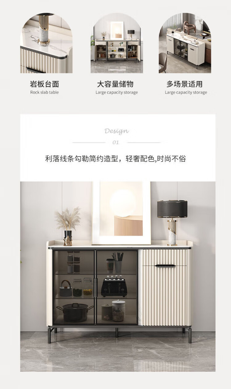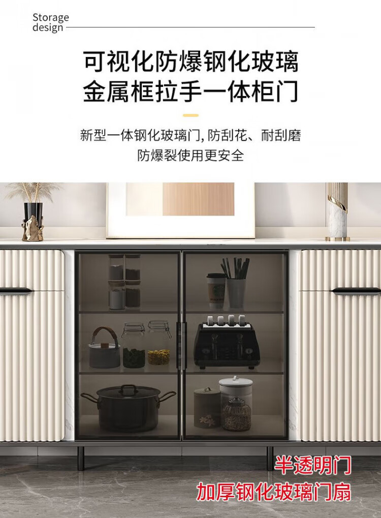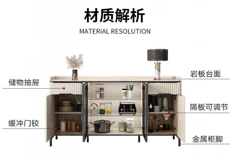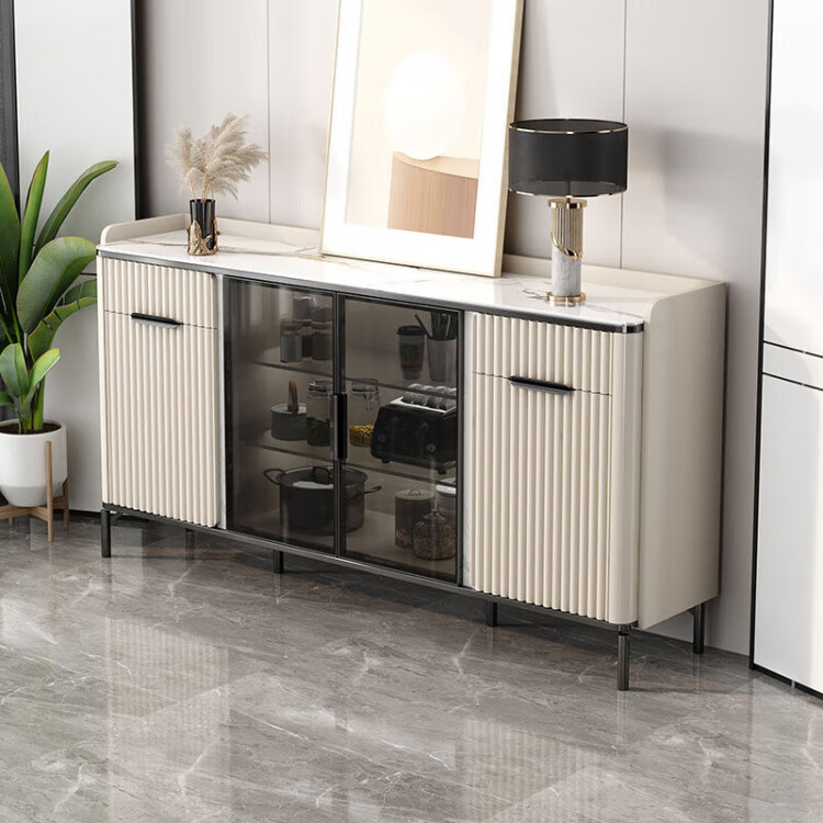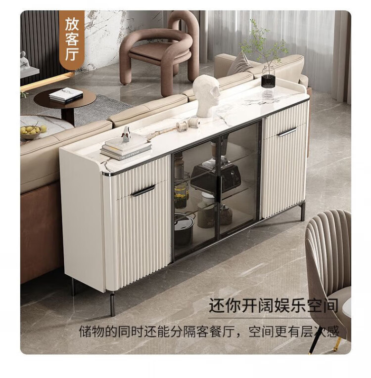 Lafman's new light luxury sideboard wall-mounted integrated wine cabinet and tea cabinet multi-functional living room wine cabinet kitchen storage storage cabinet black metal + rock plate + 0.84 meter long sideboard installation and delivery included